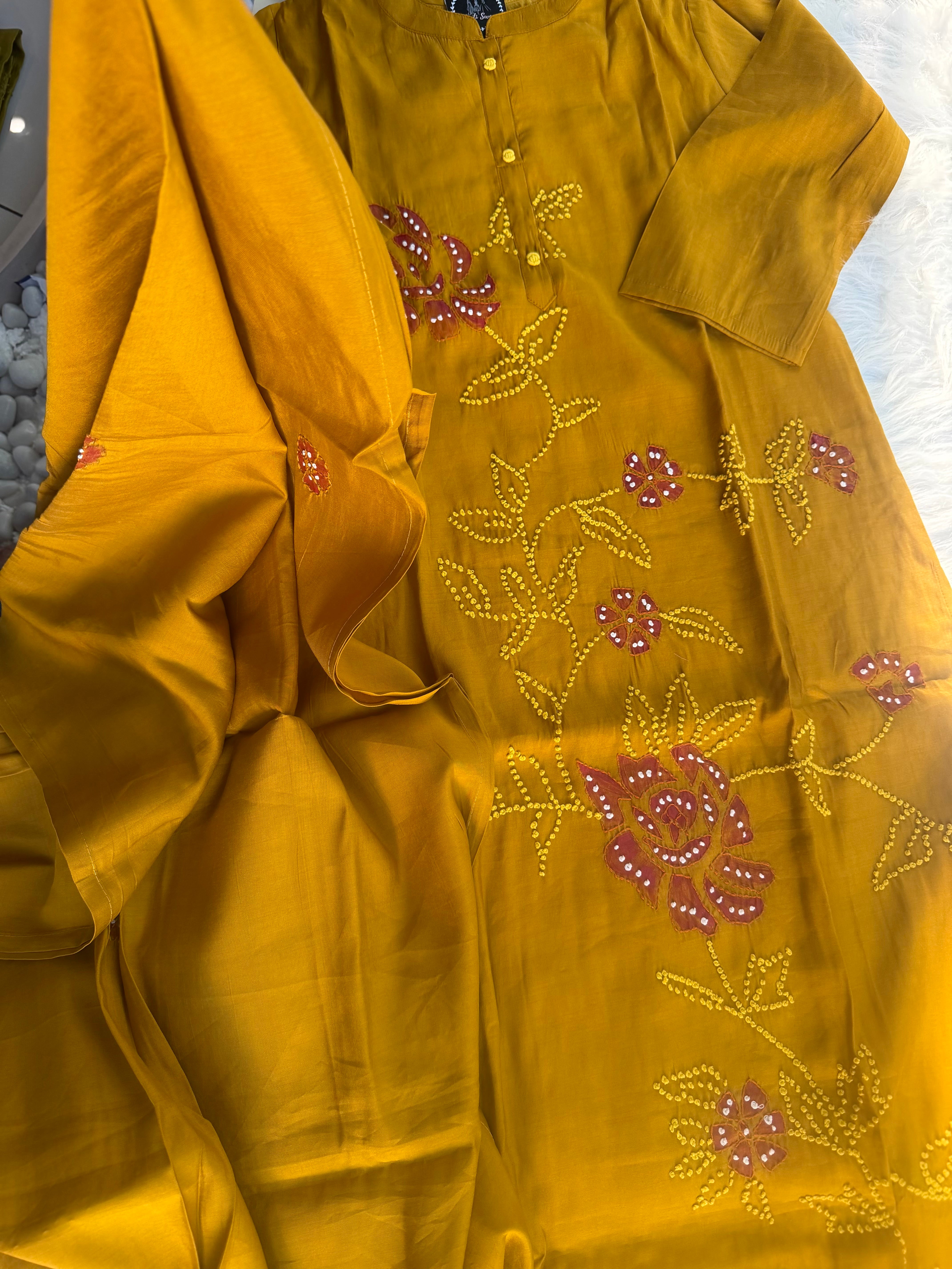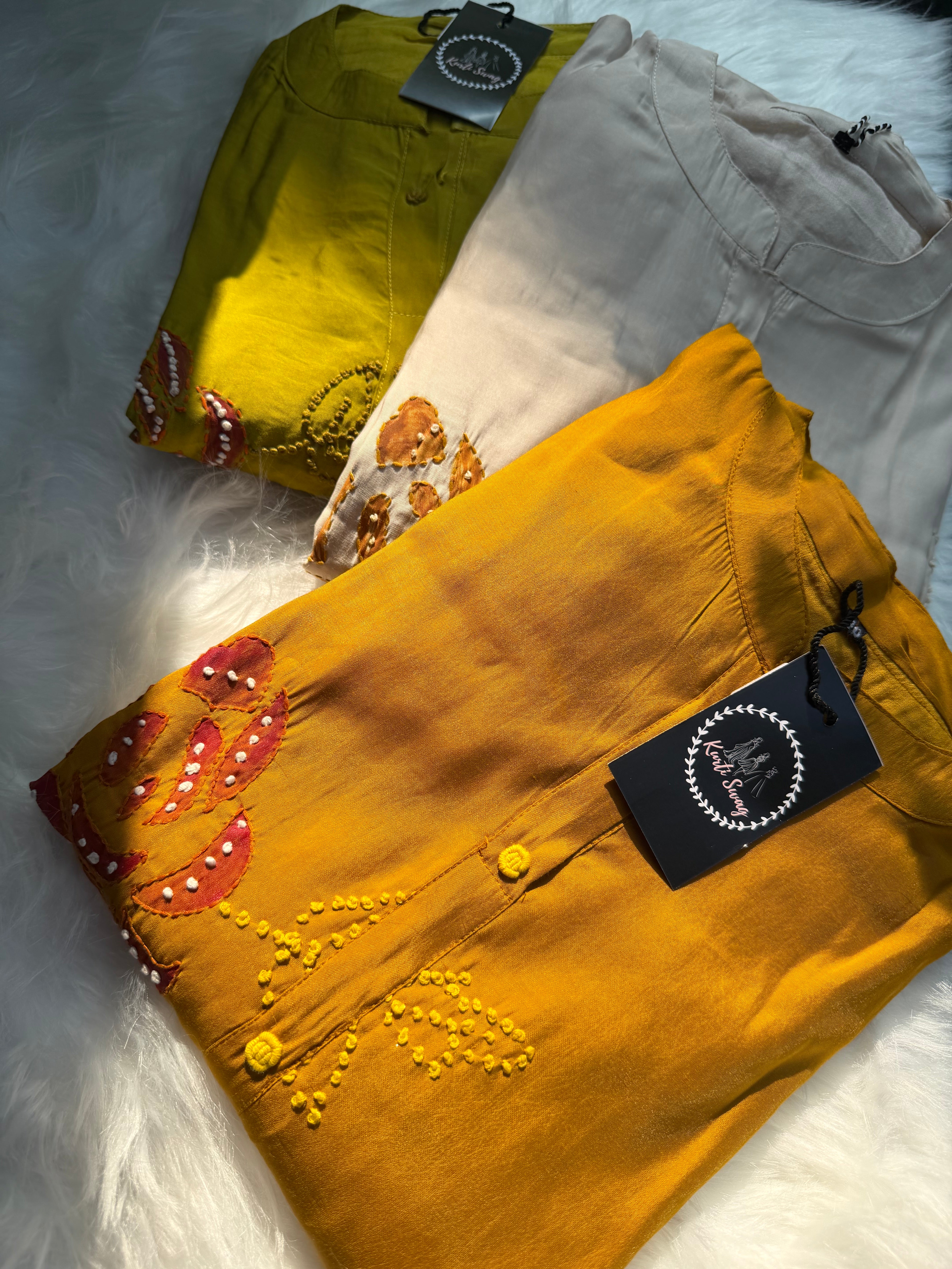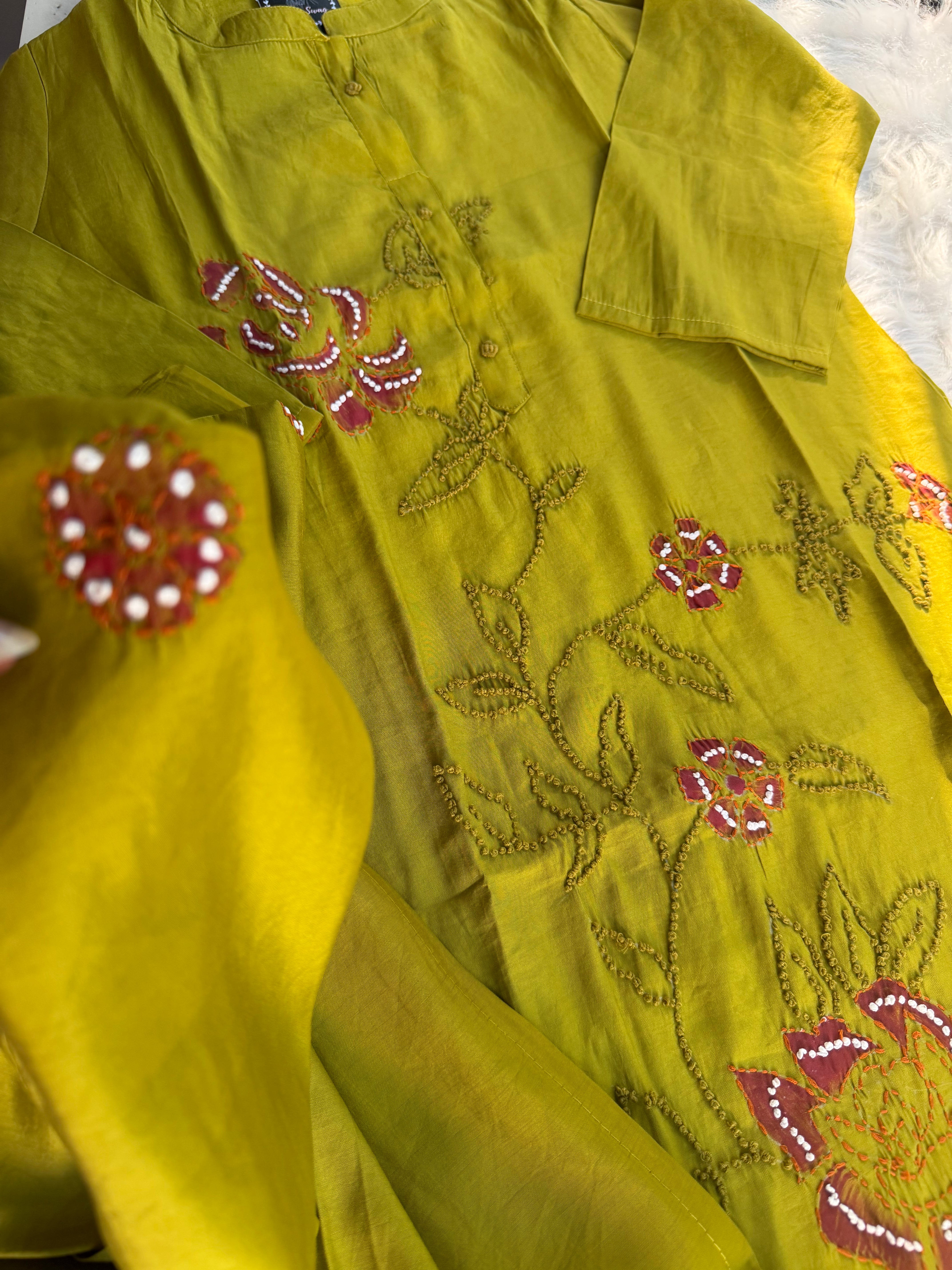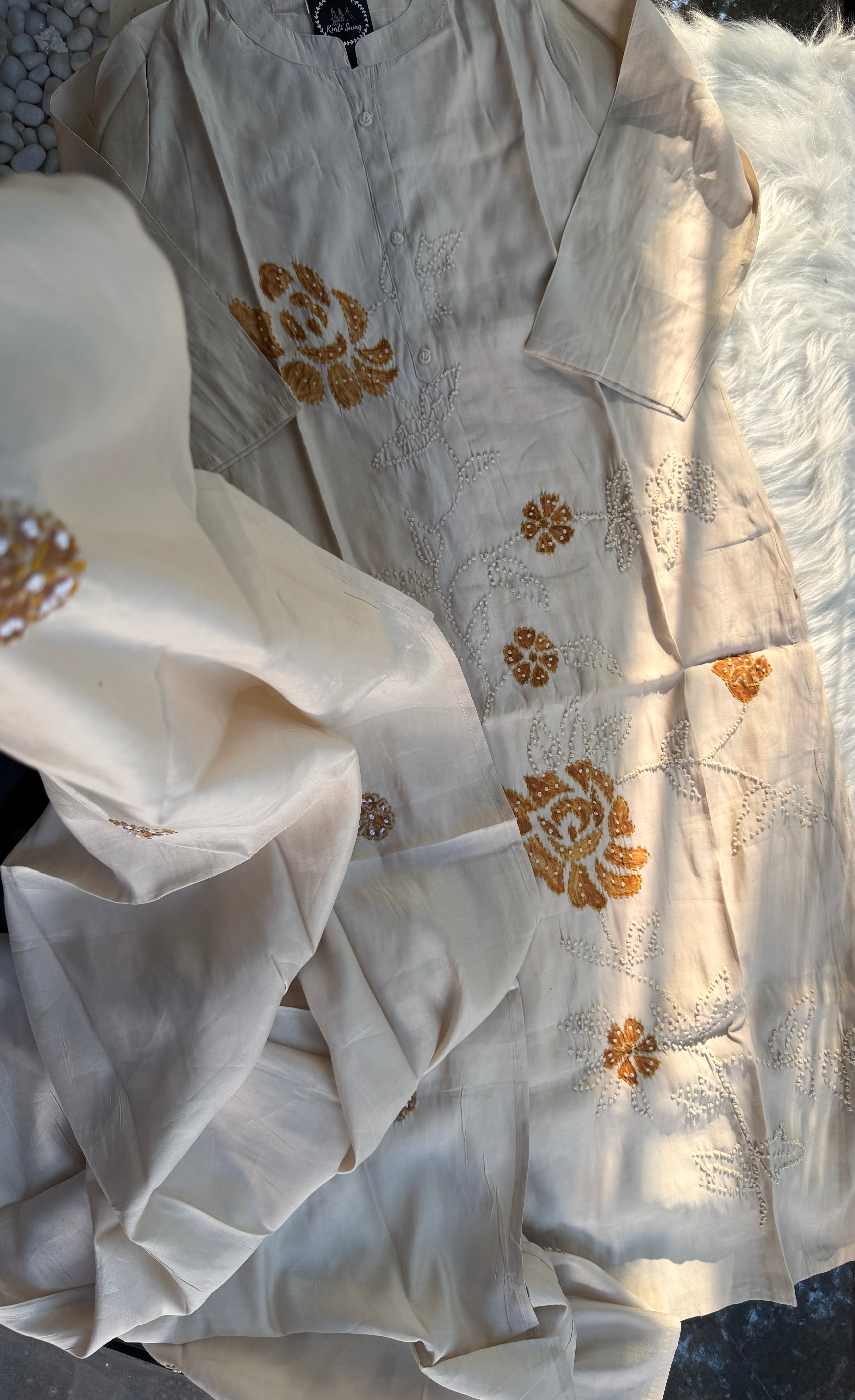 ✅ Roman Silk Kurti With Handpaint, a french Knot Hand Embroidery