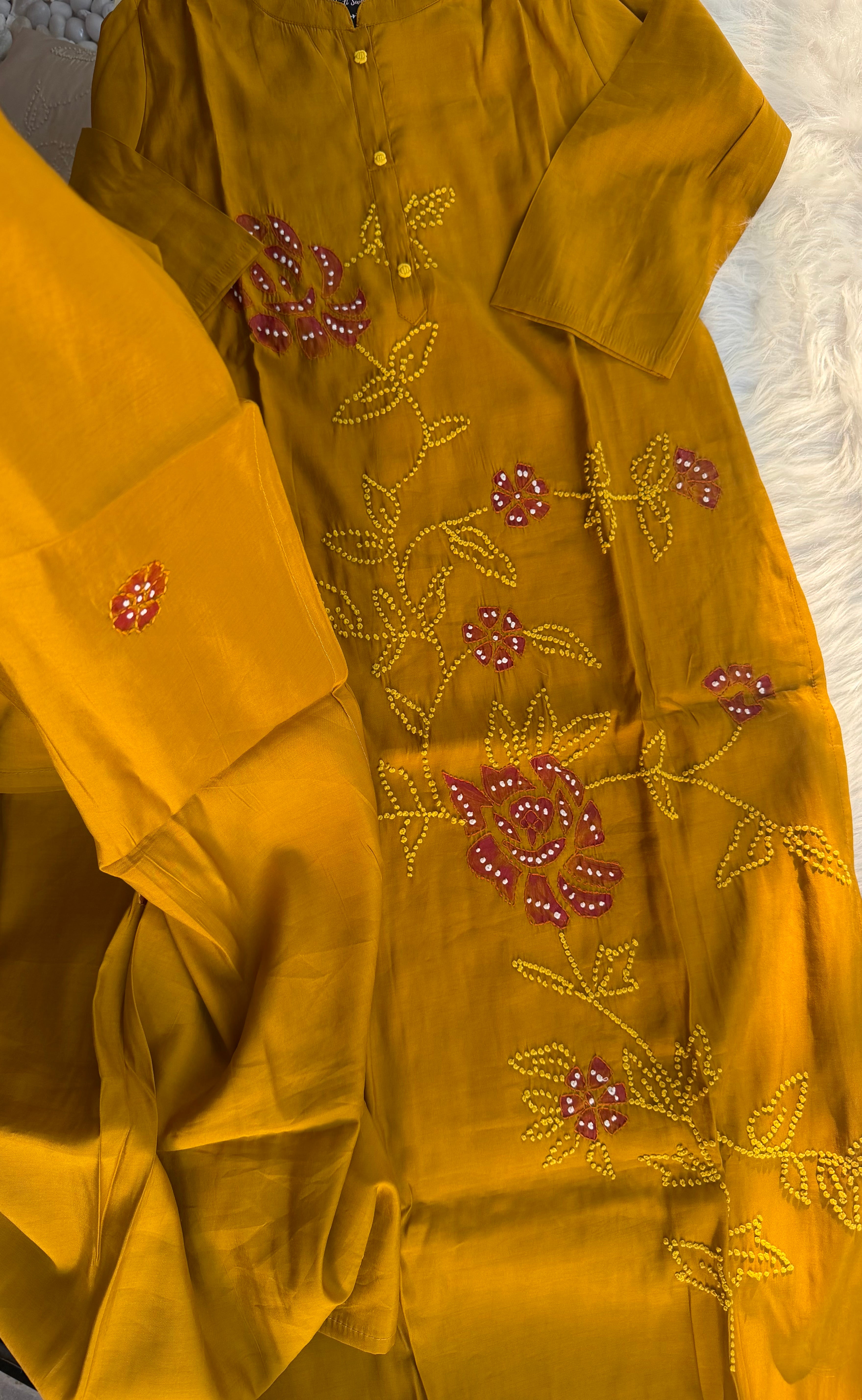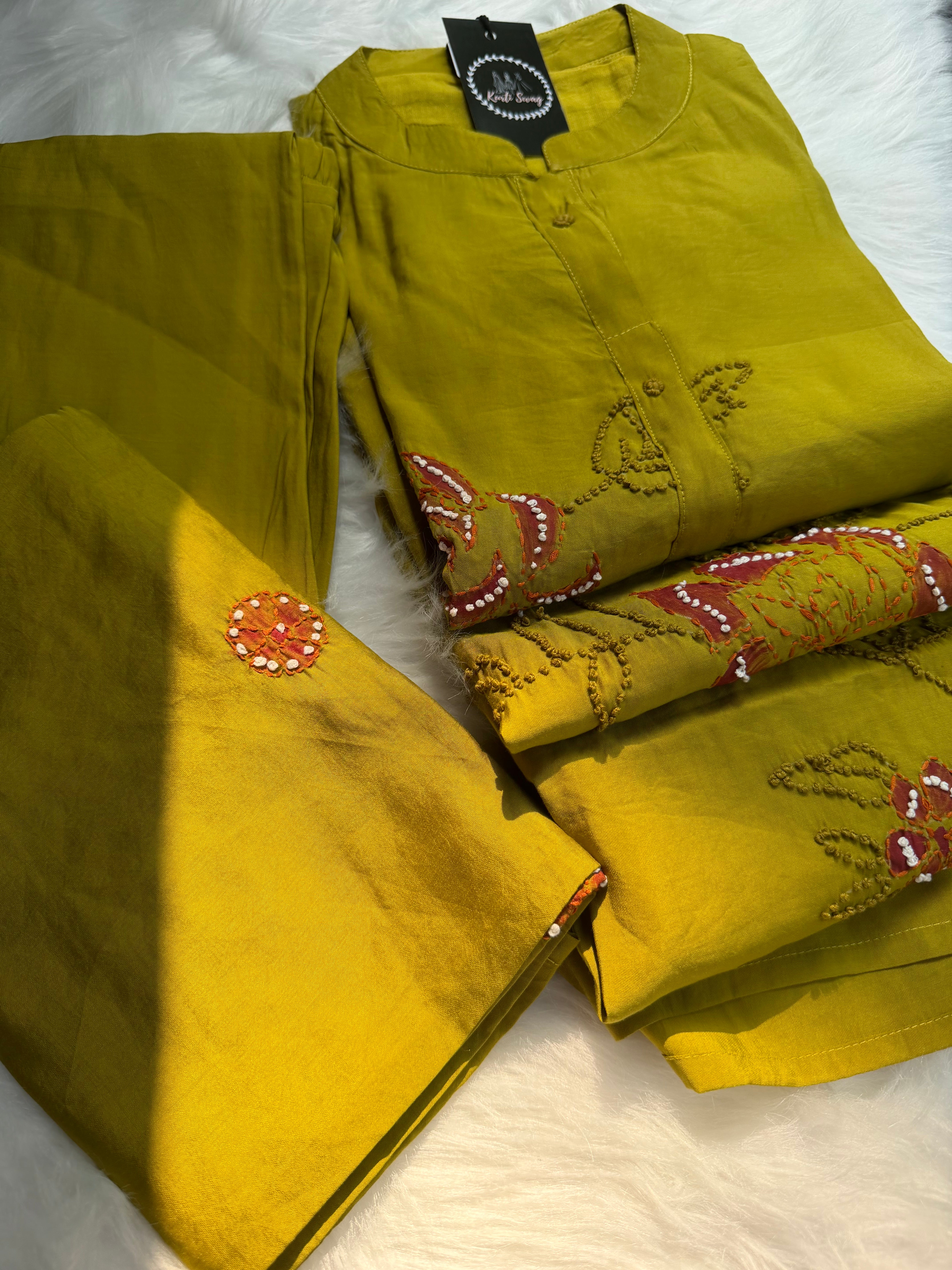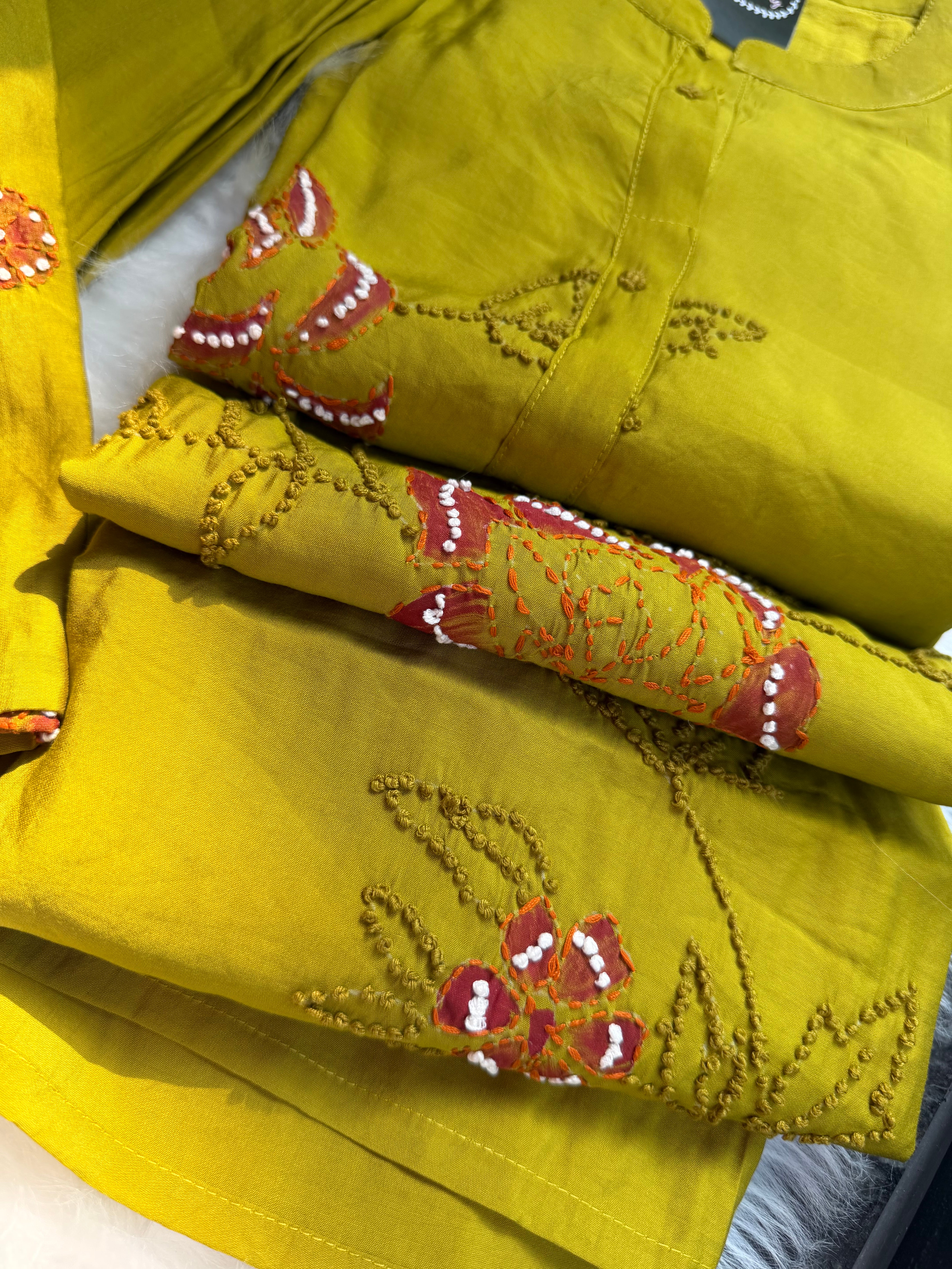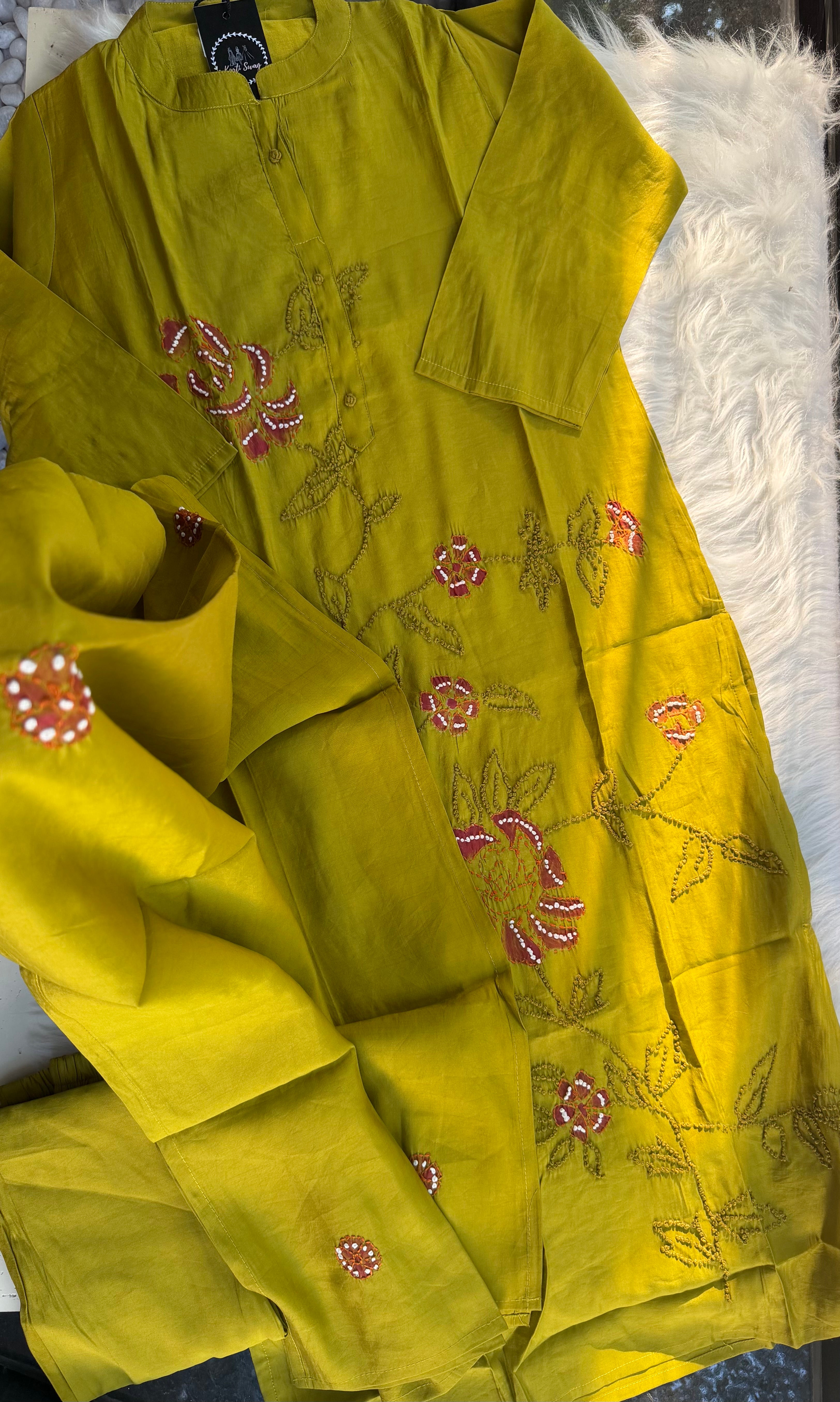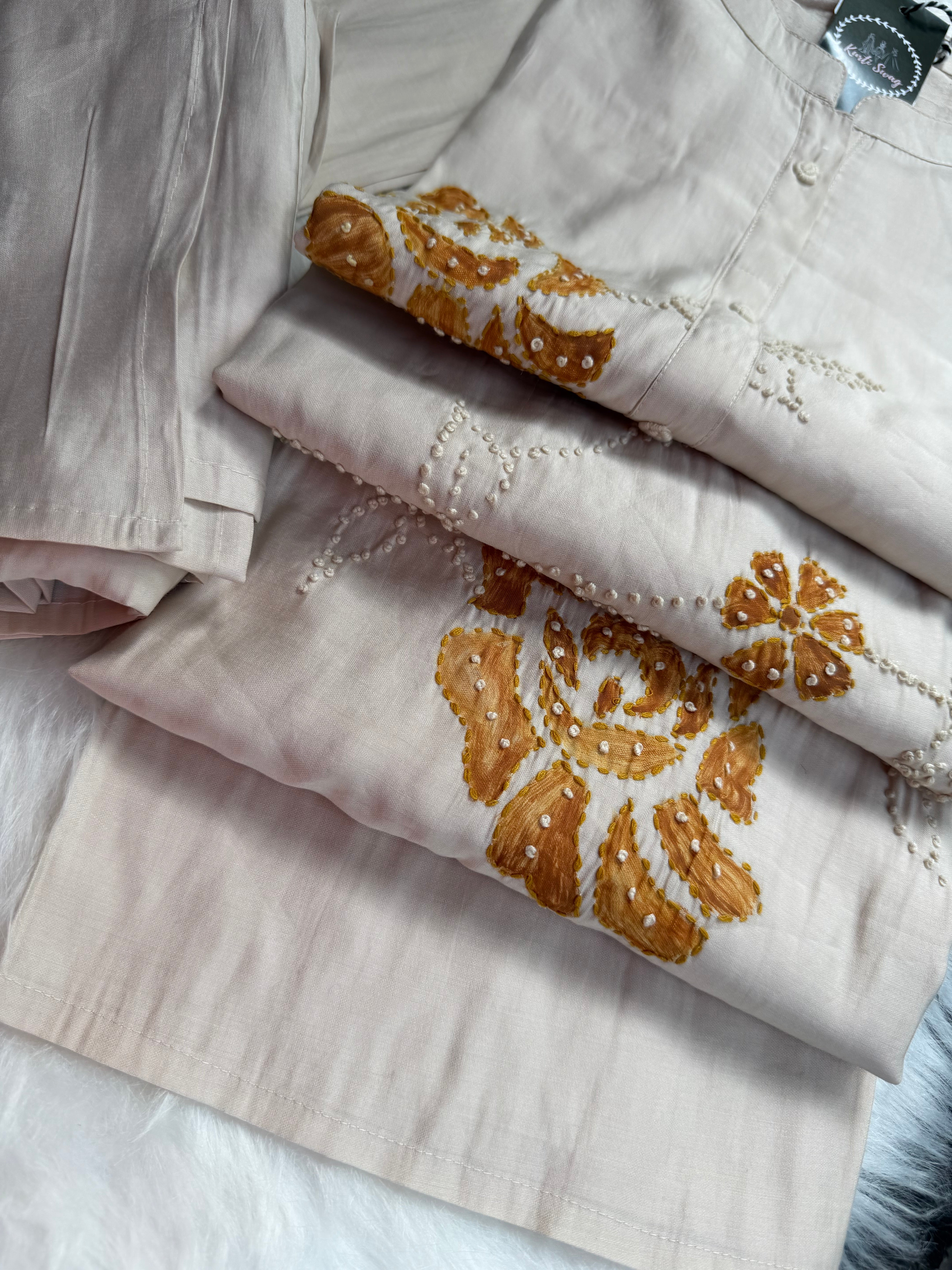 ✅ Roman Silk Kurti With Handpaint, a french Knot Hand Embroidery
