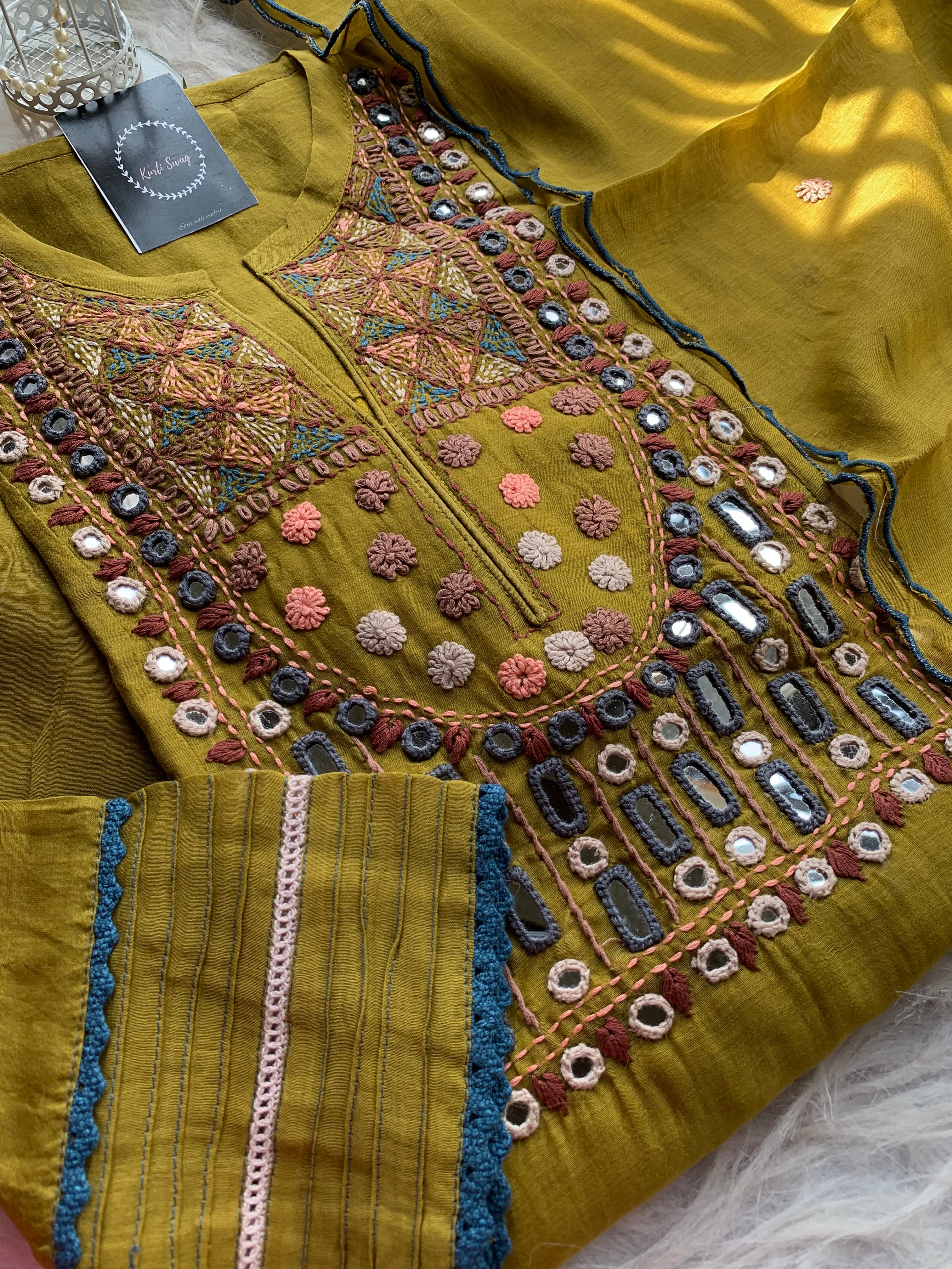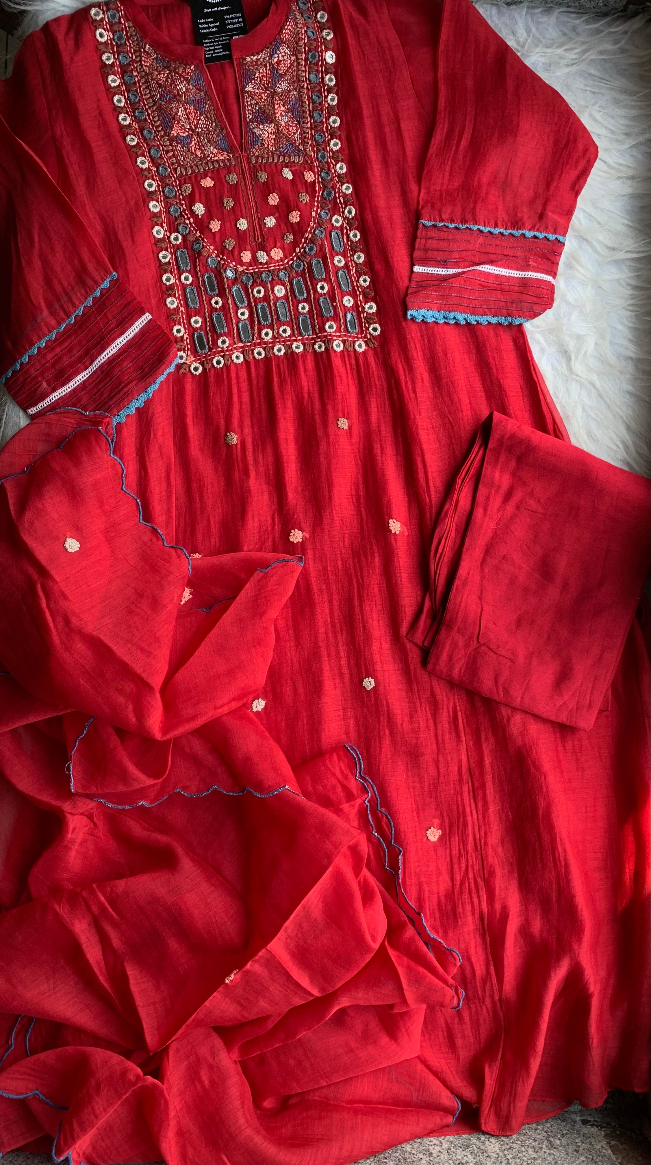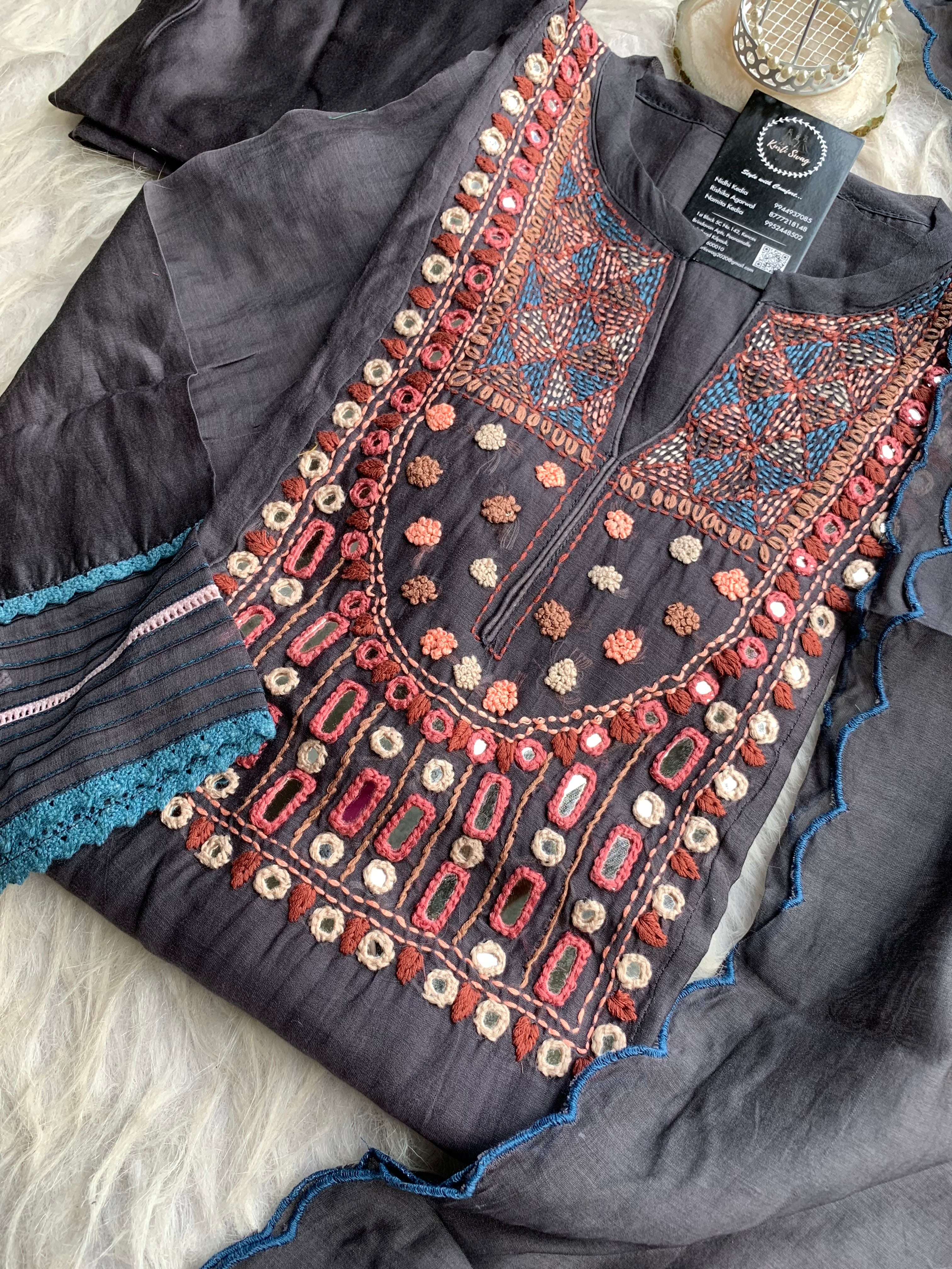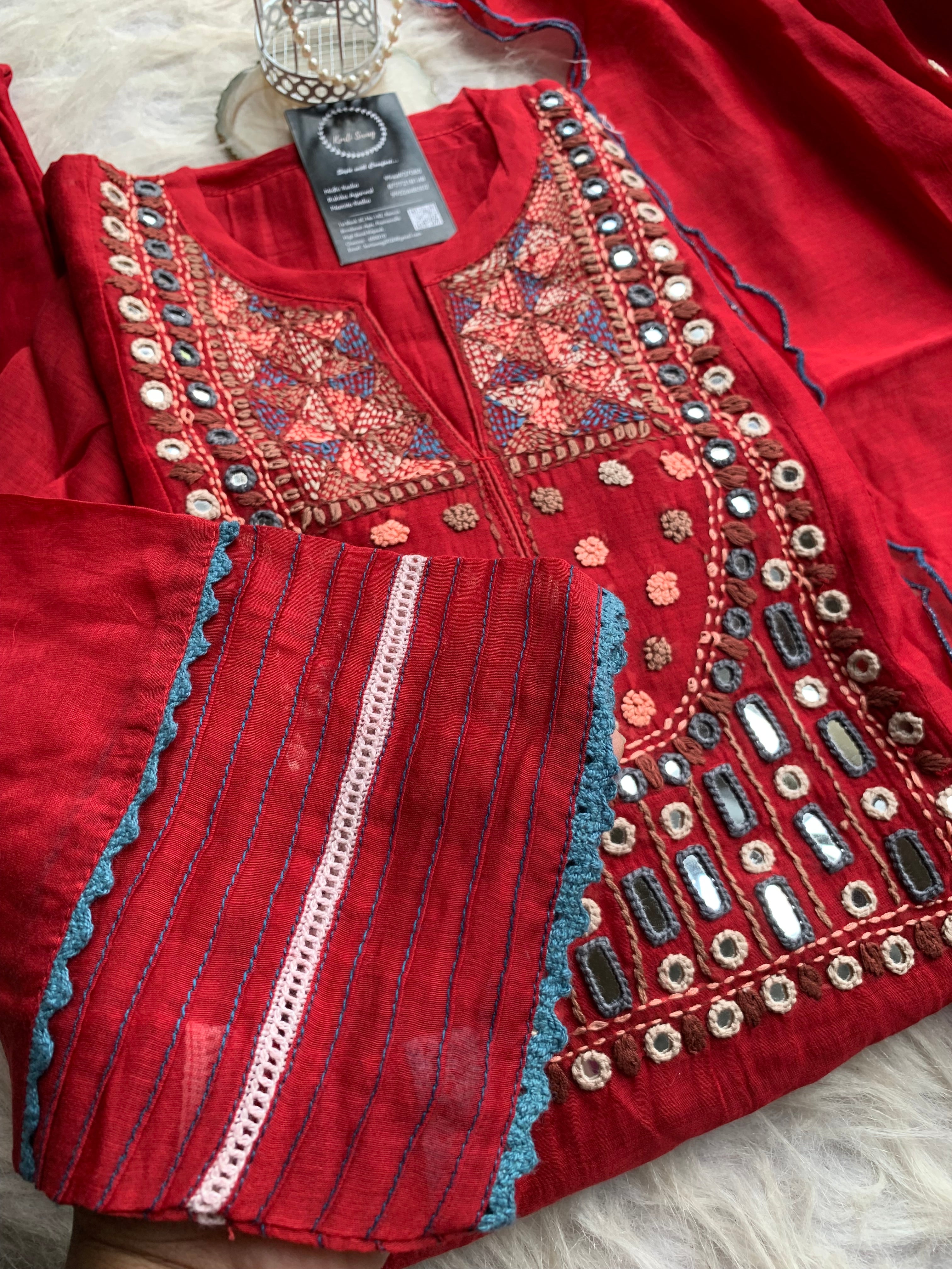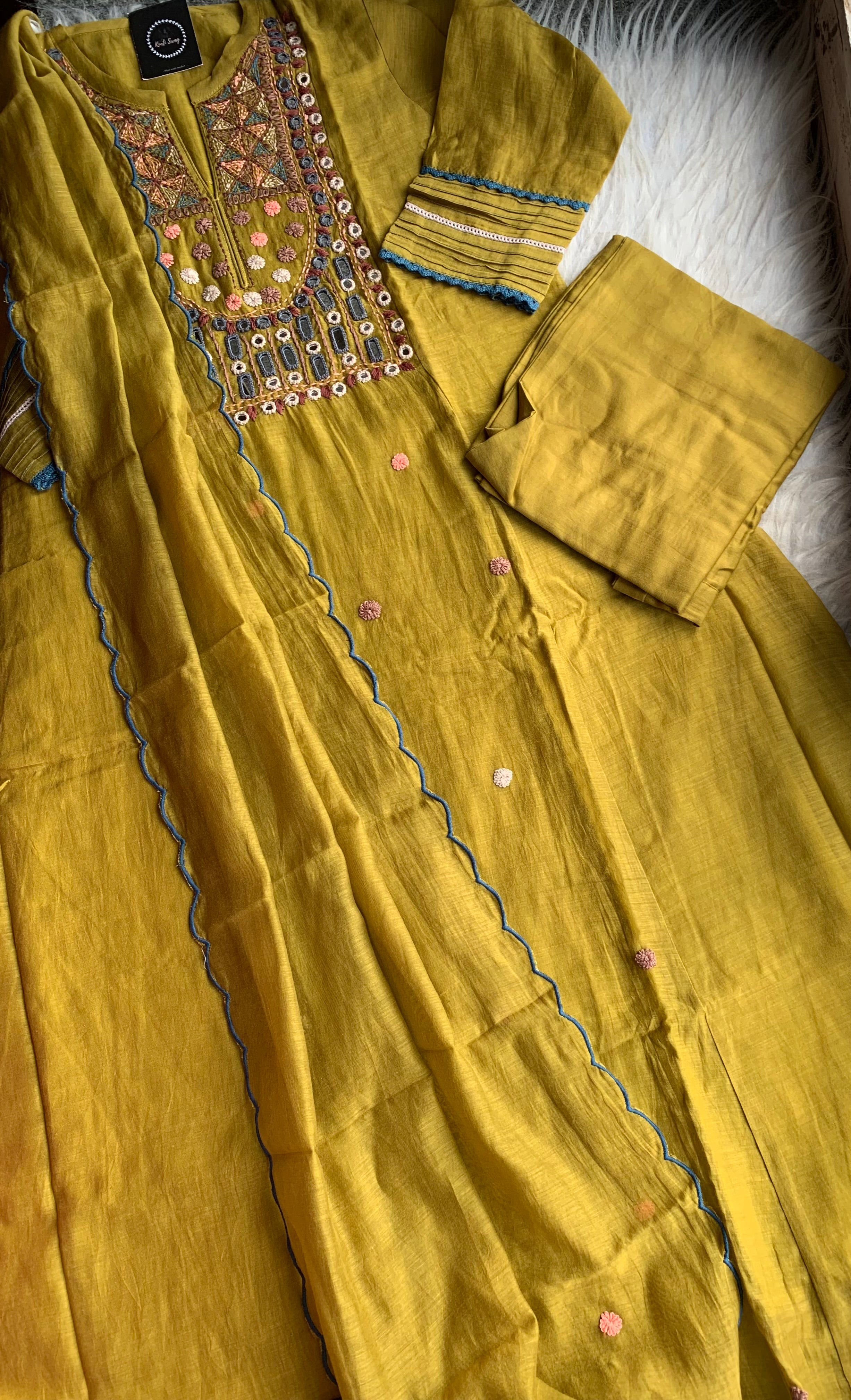 ✅ Premium Mul Chanderi Dress With thread Embroidery Handwork On The Yoke