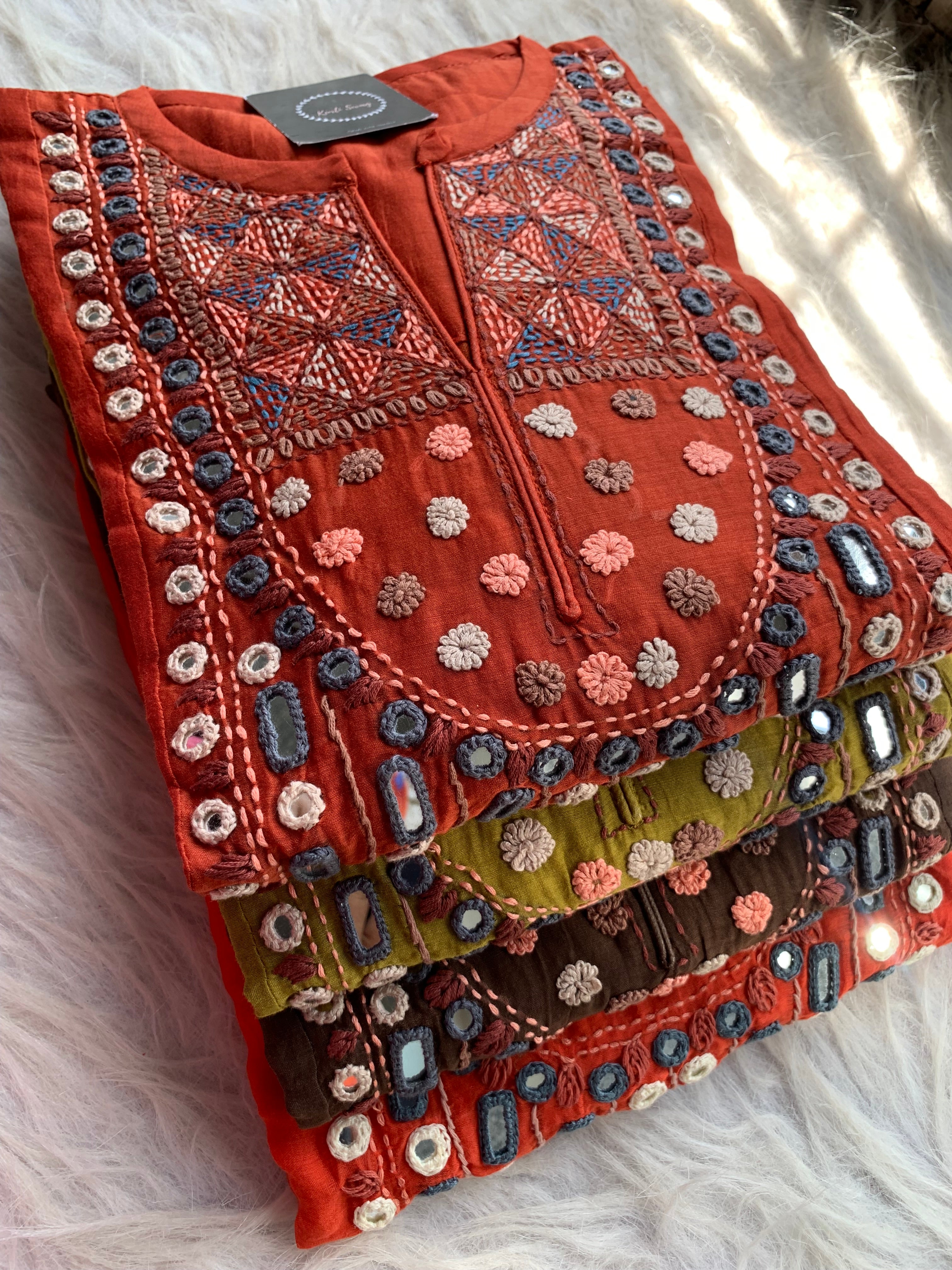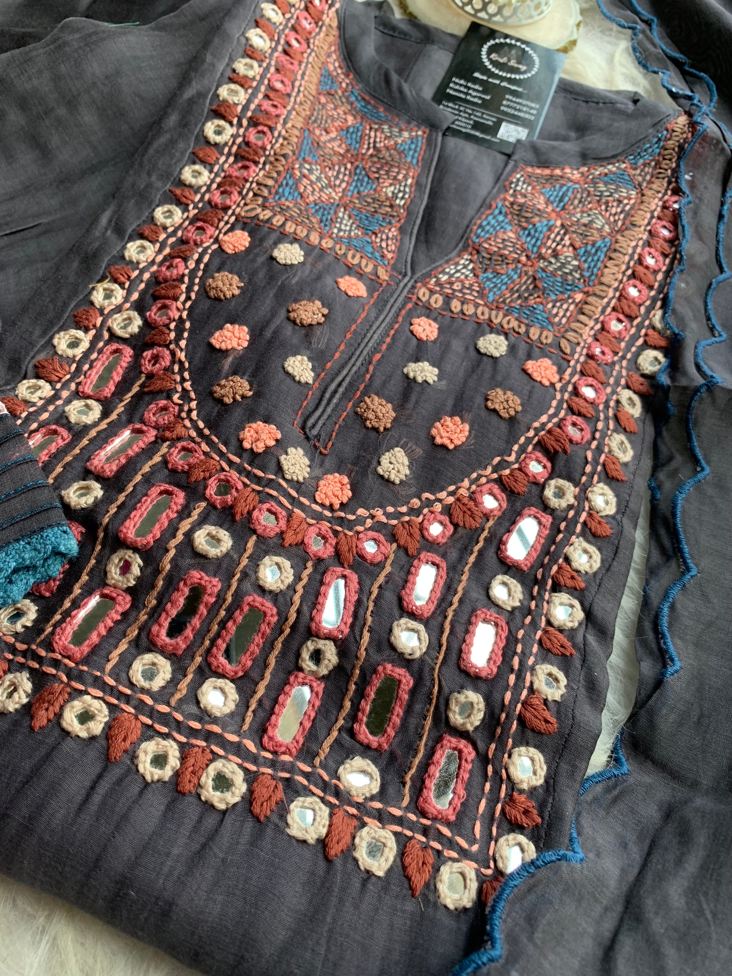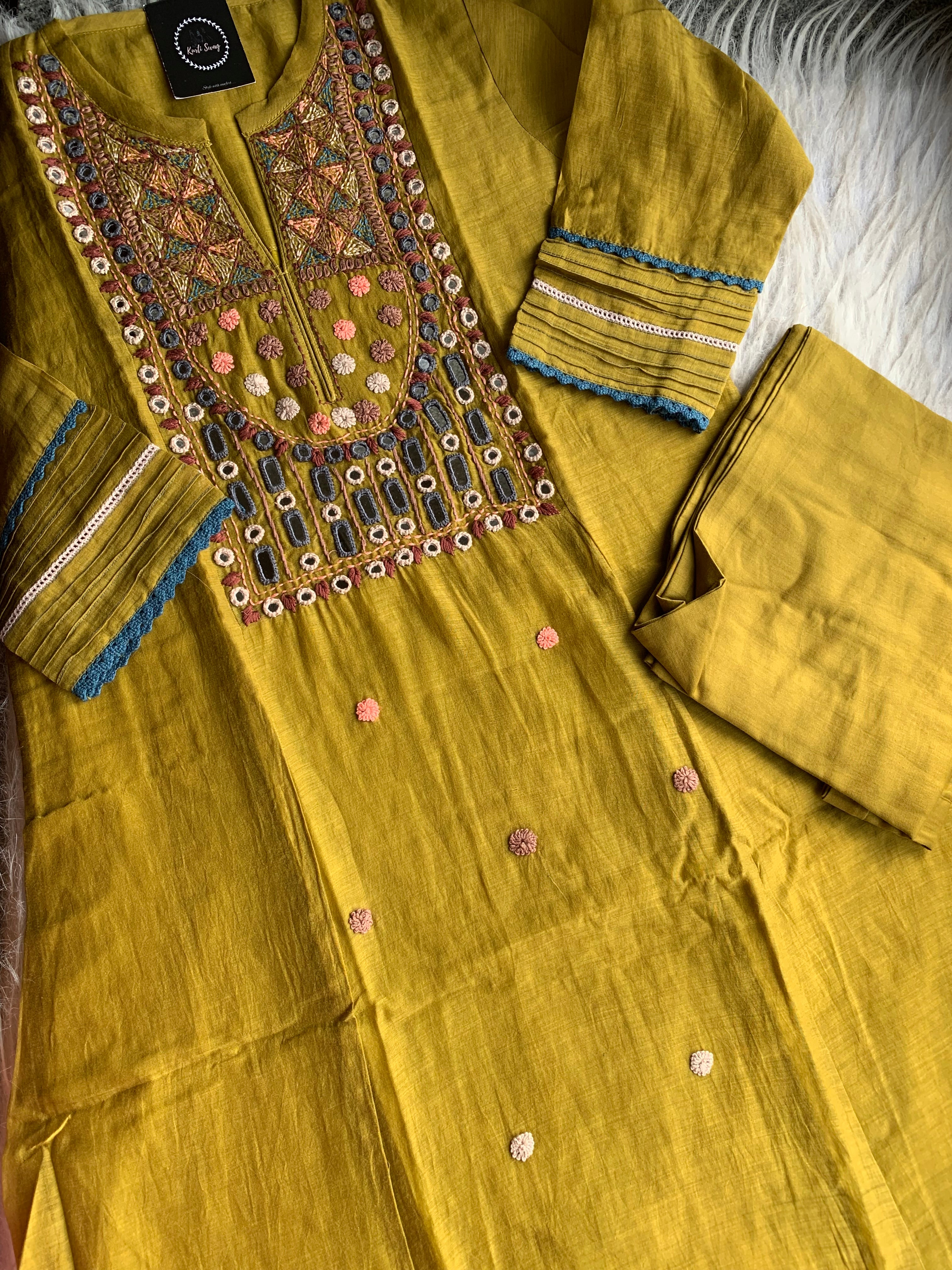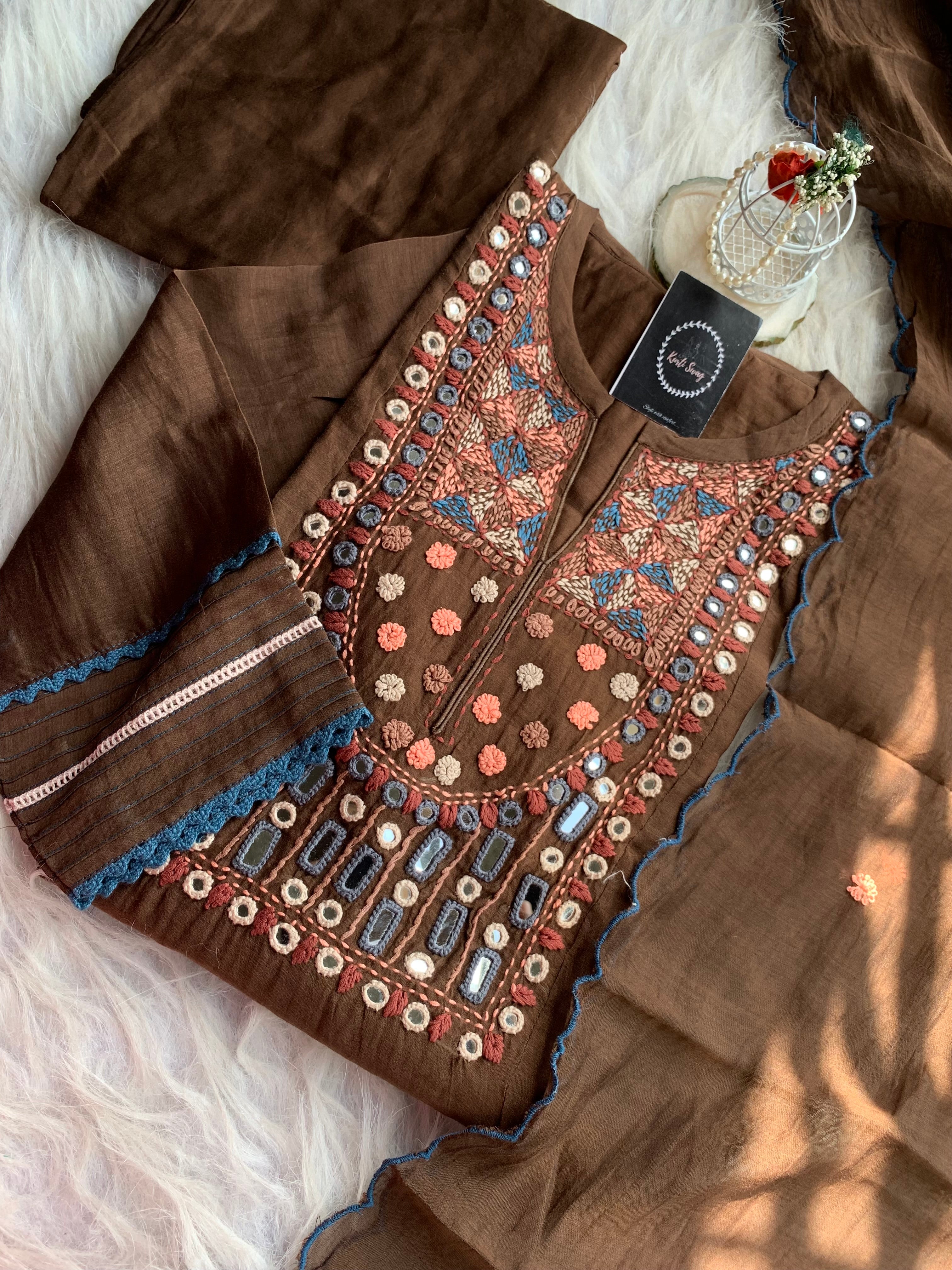 ✅ Premium Mul Chanderi Dress With thread Embroidery Handwork On The Yoke