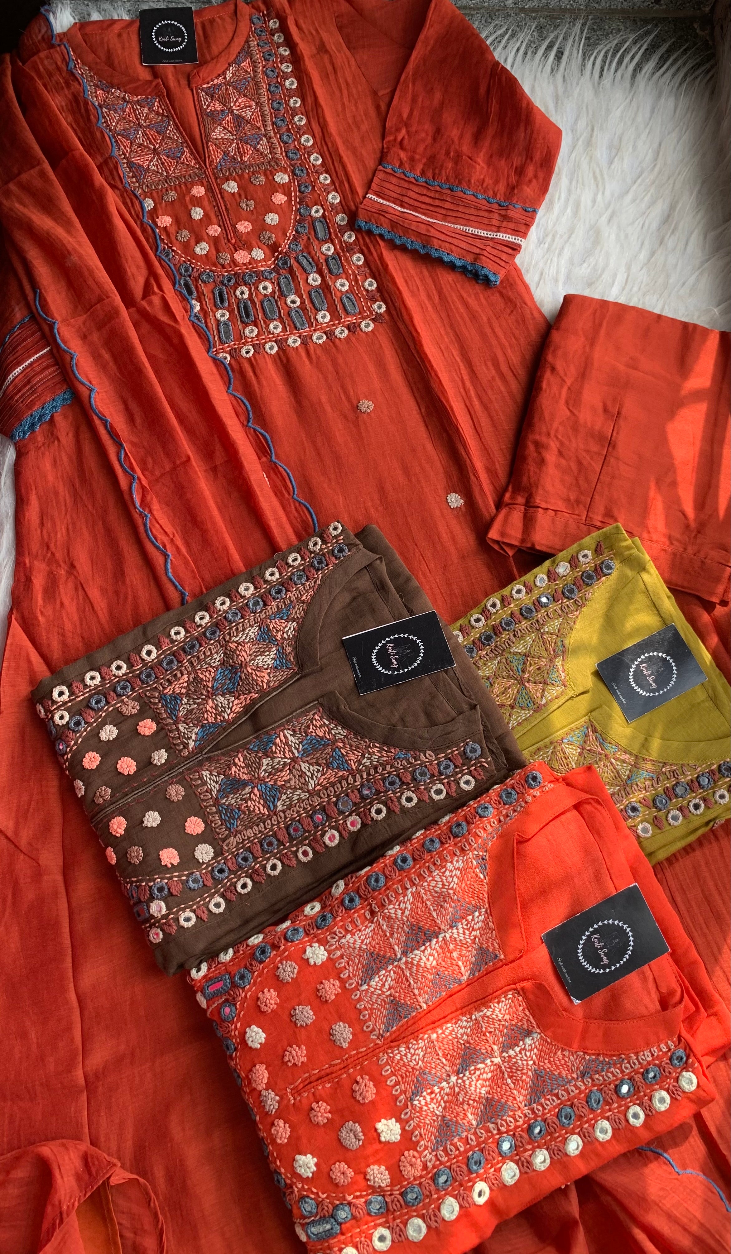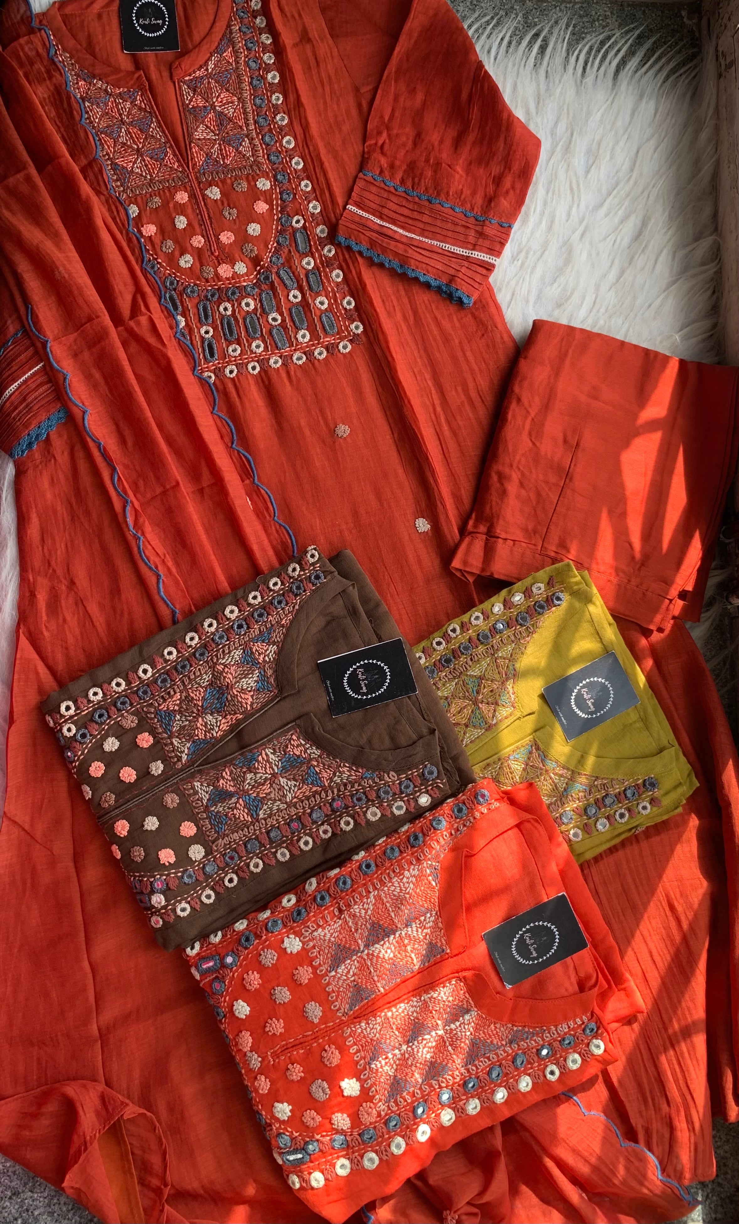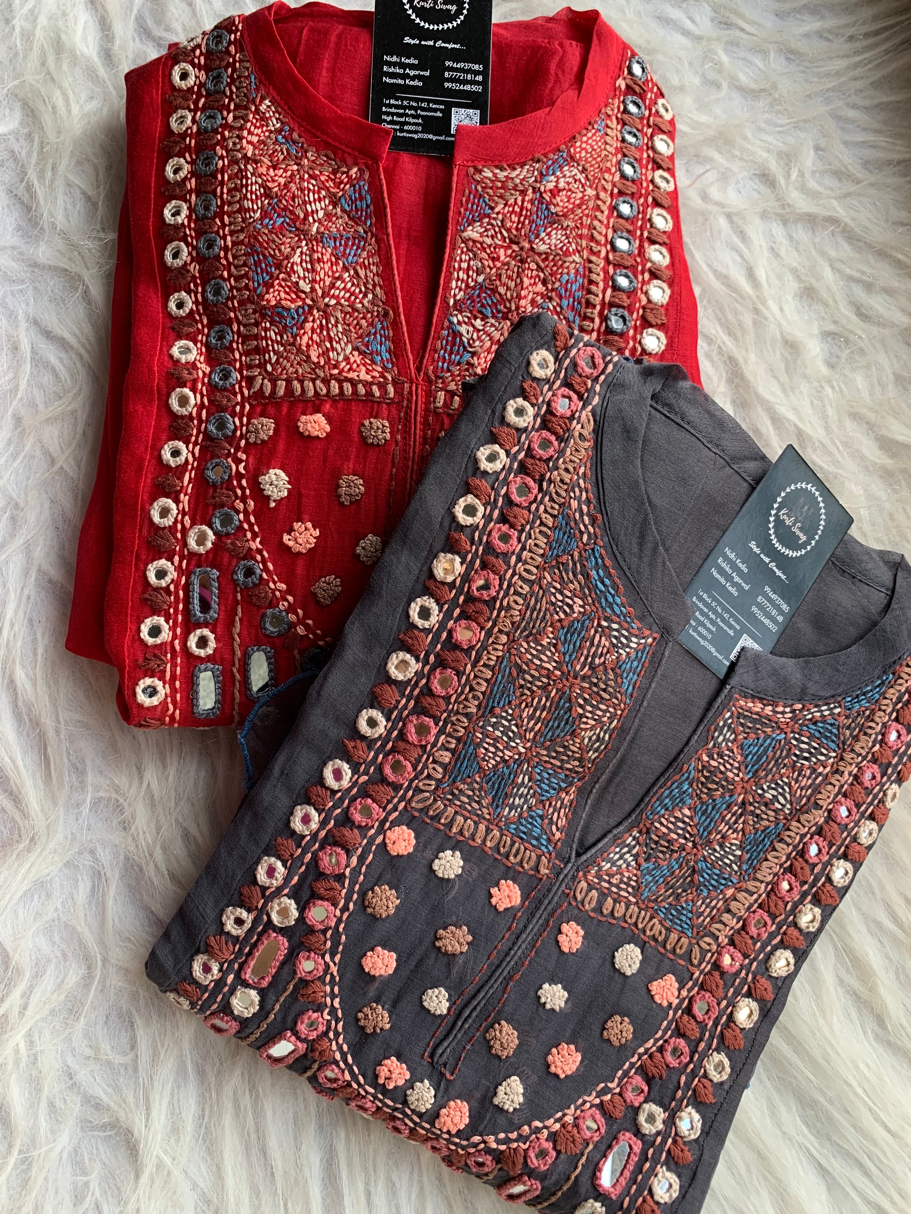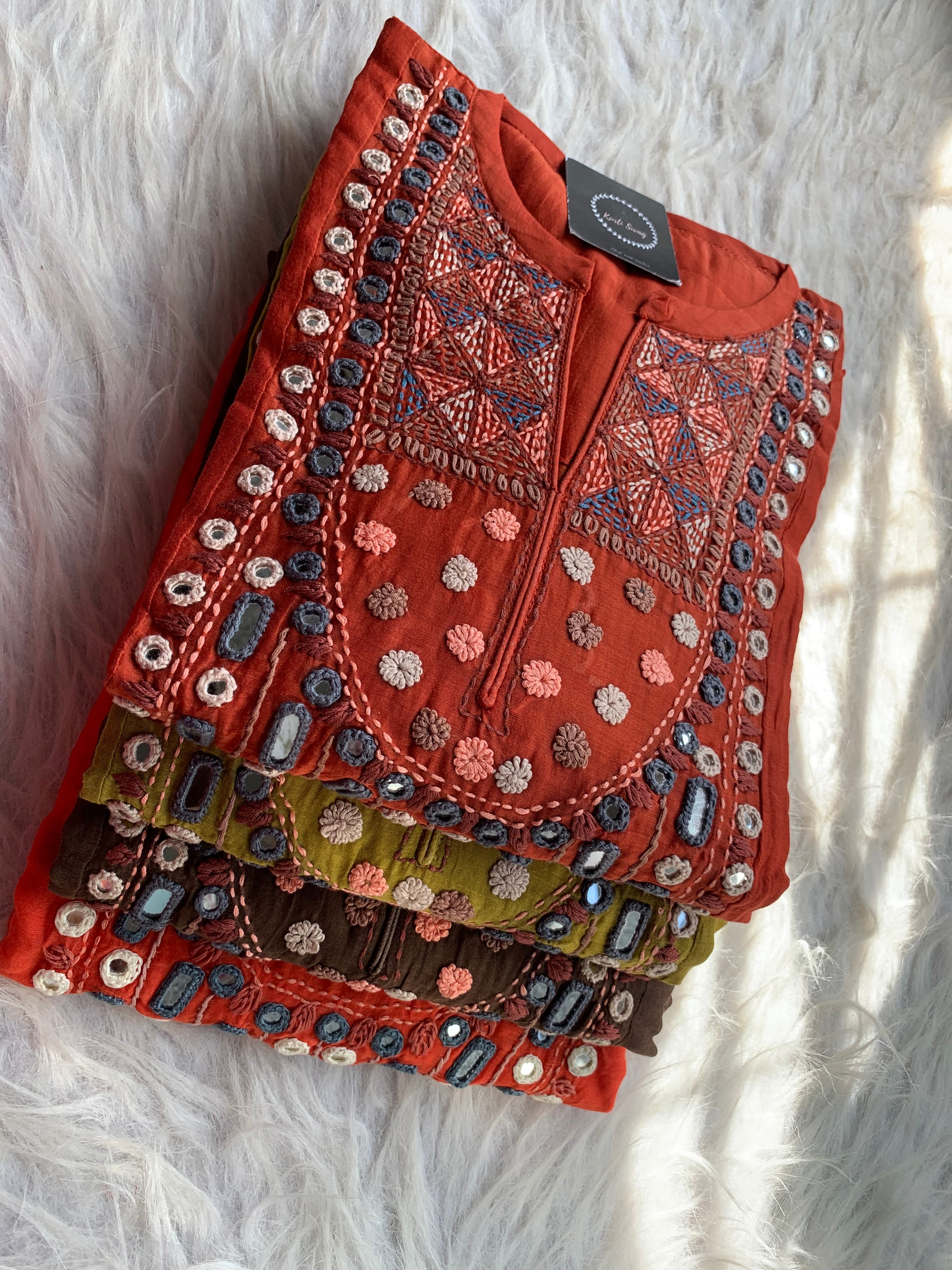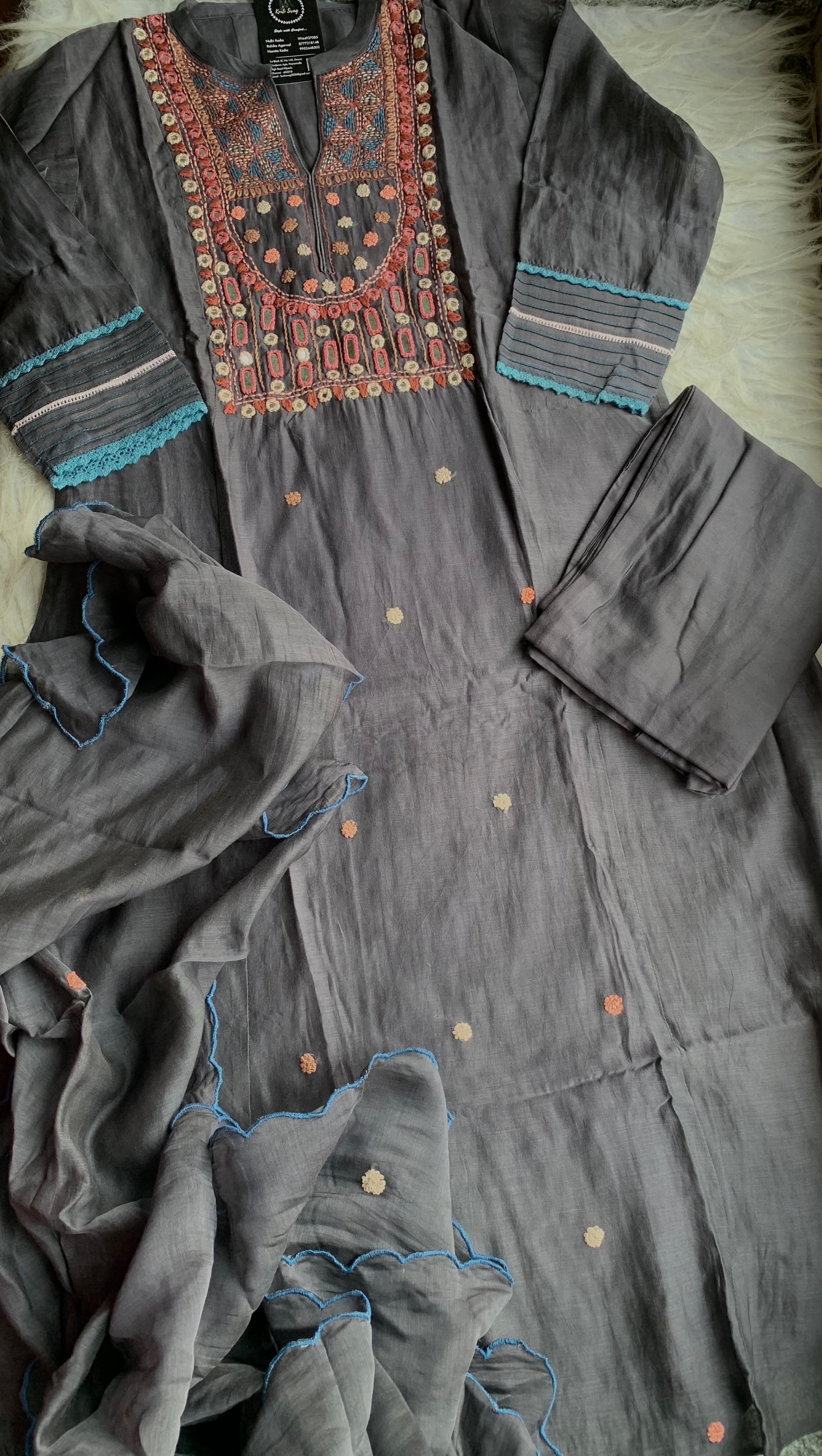 ✅ Premium Mul Chanderi Dress With thread Embroidery Handwork On The Yoke