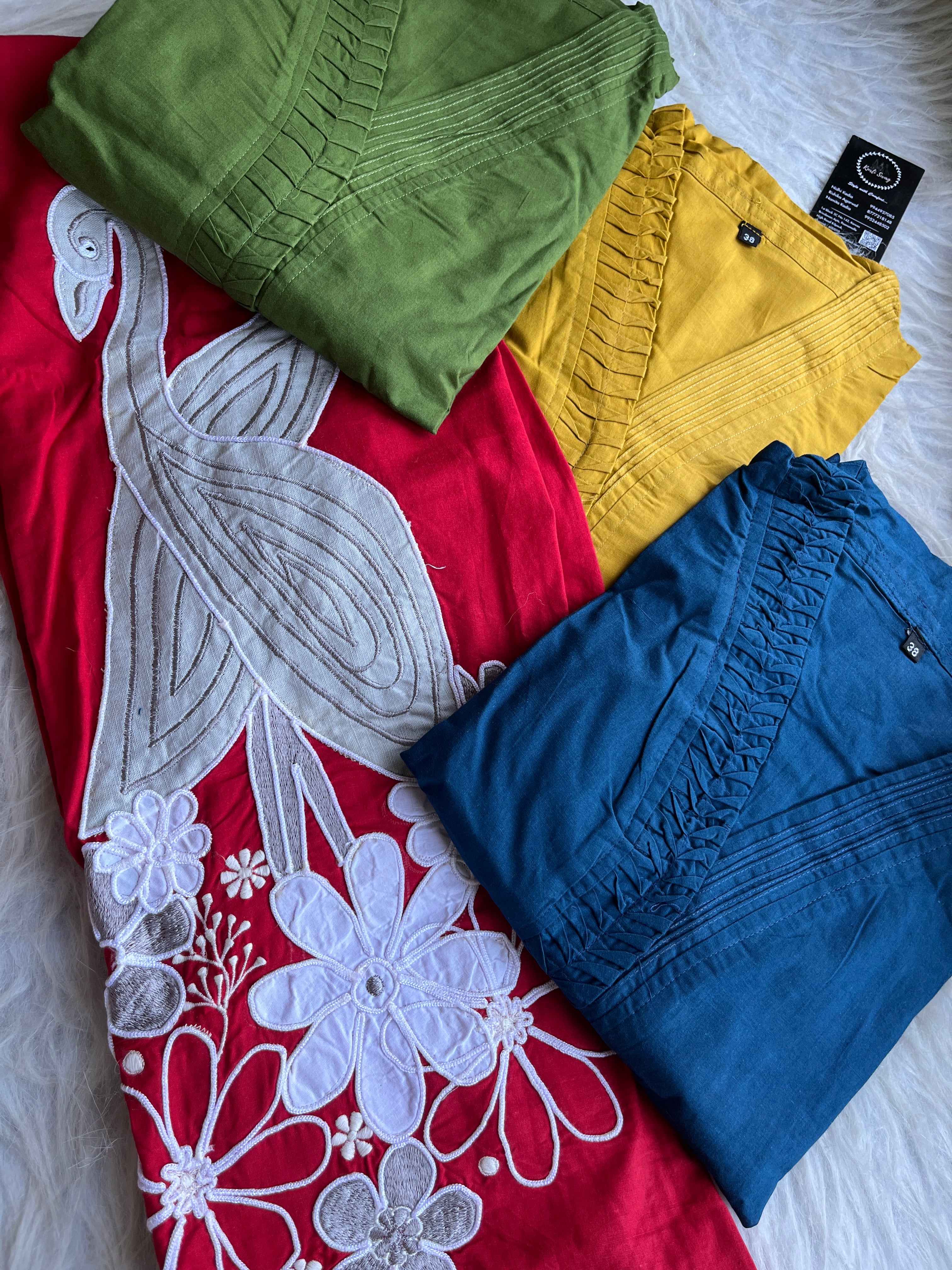 greenBlue n lime greenMauveLight blue with bandhaniPink with bandhaniYellowDark greenPinkBlueRedButter yellowDark pinkBlackLavenderSea greenBlack 2Black floralGrey with redOlive green+ 16 more