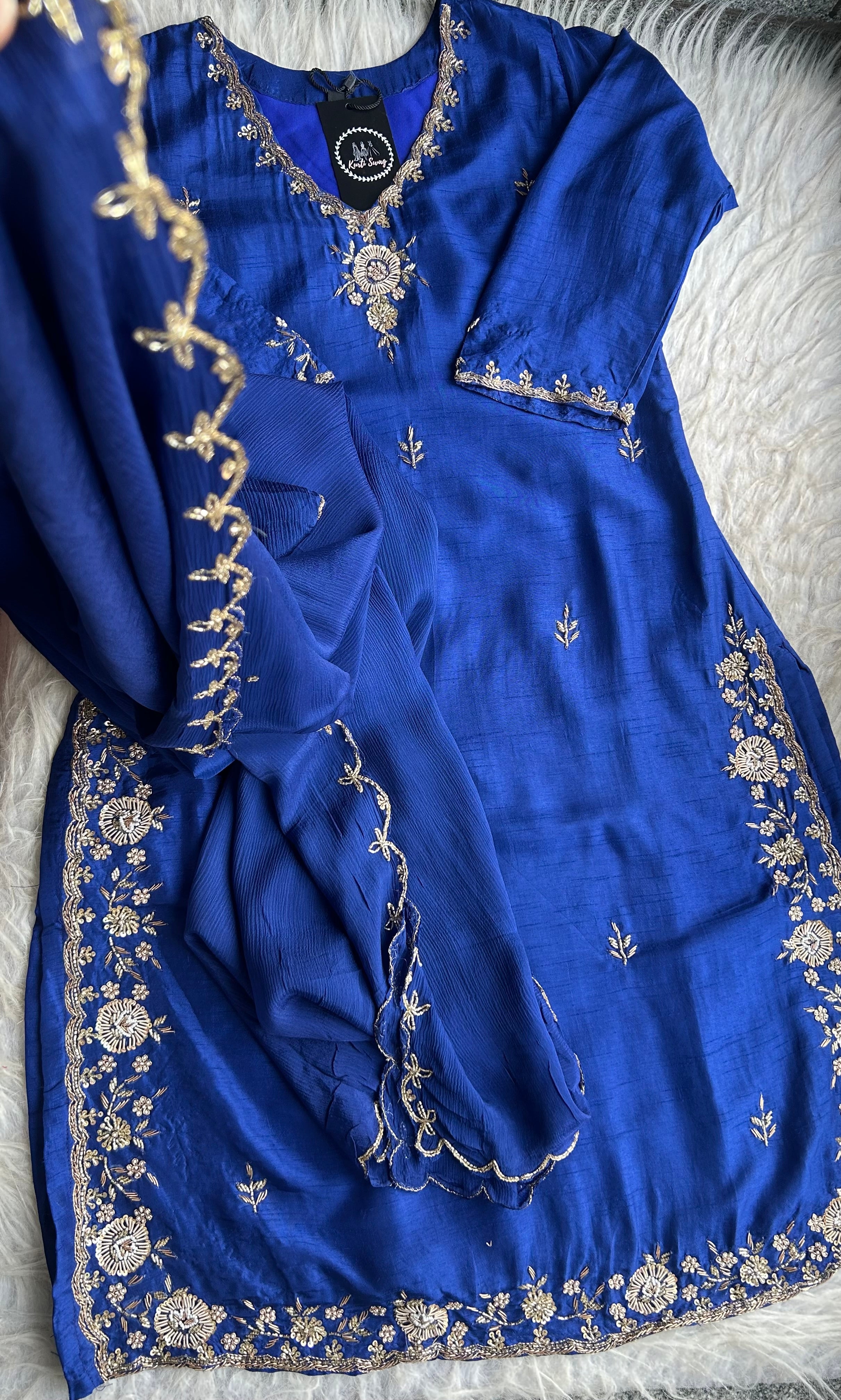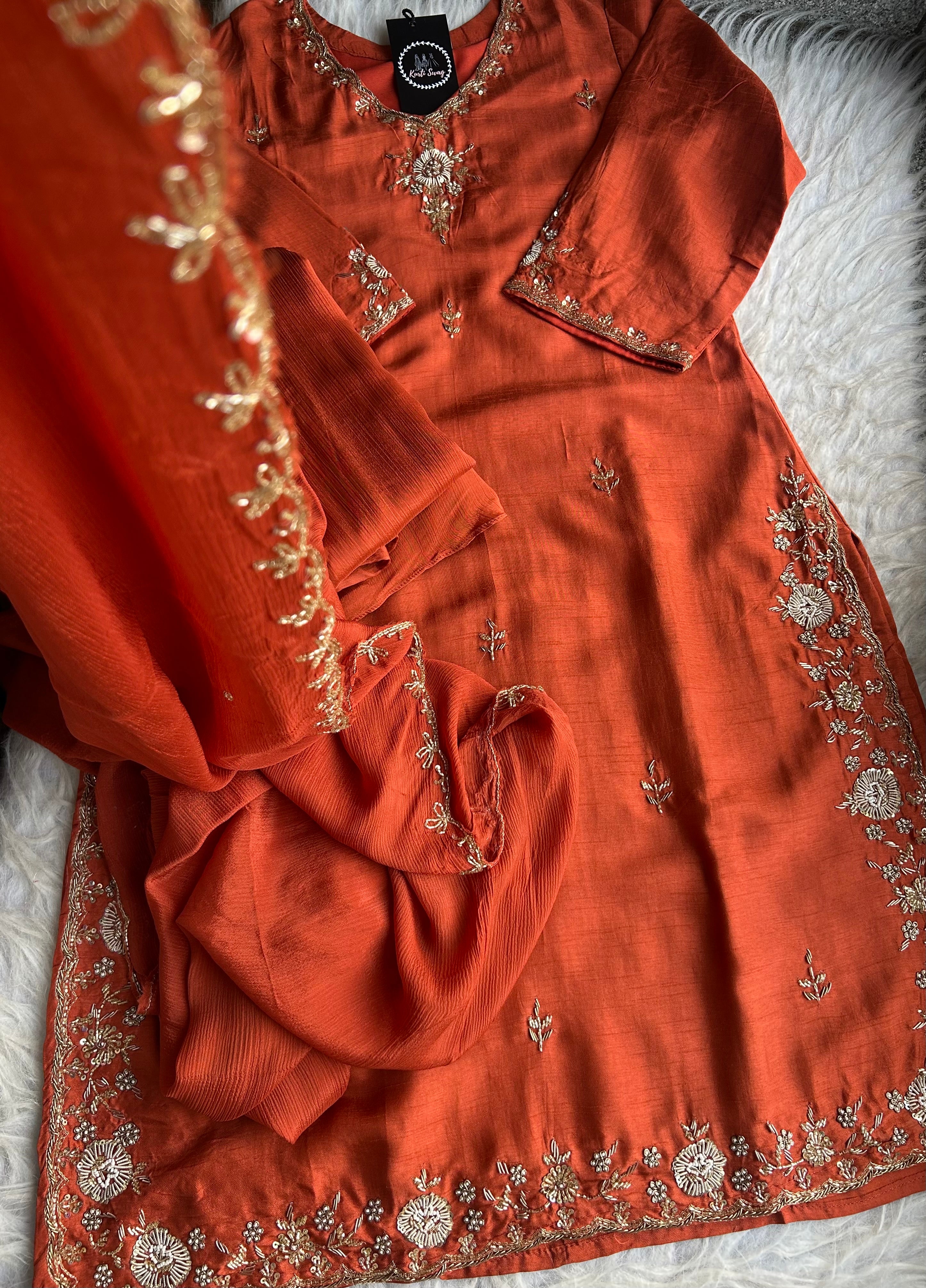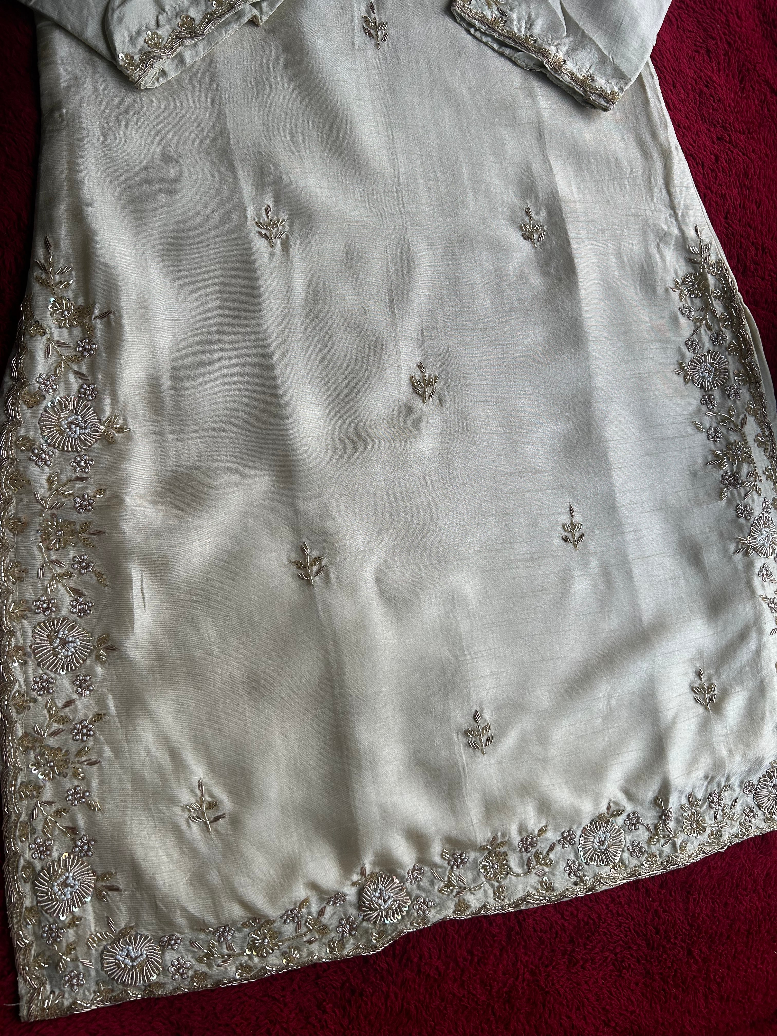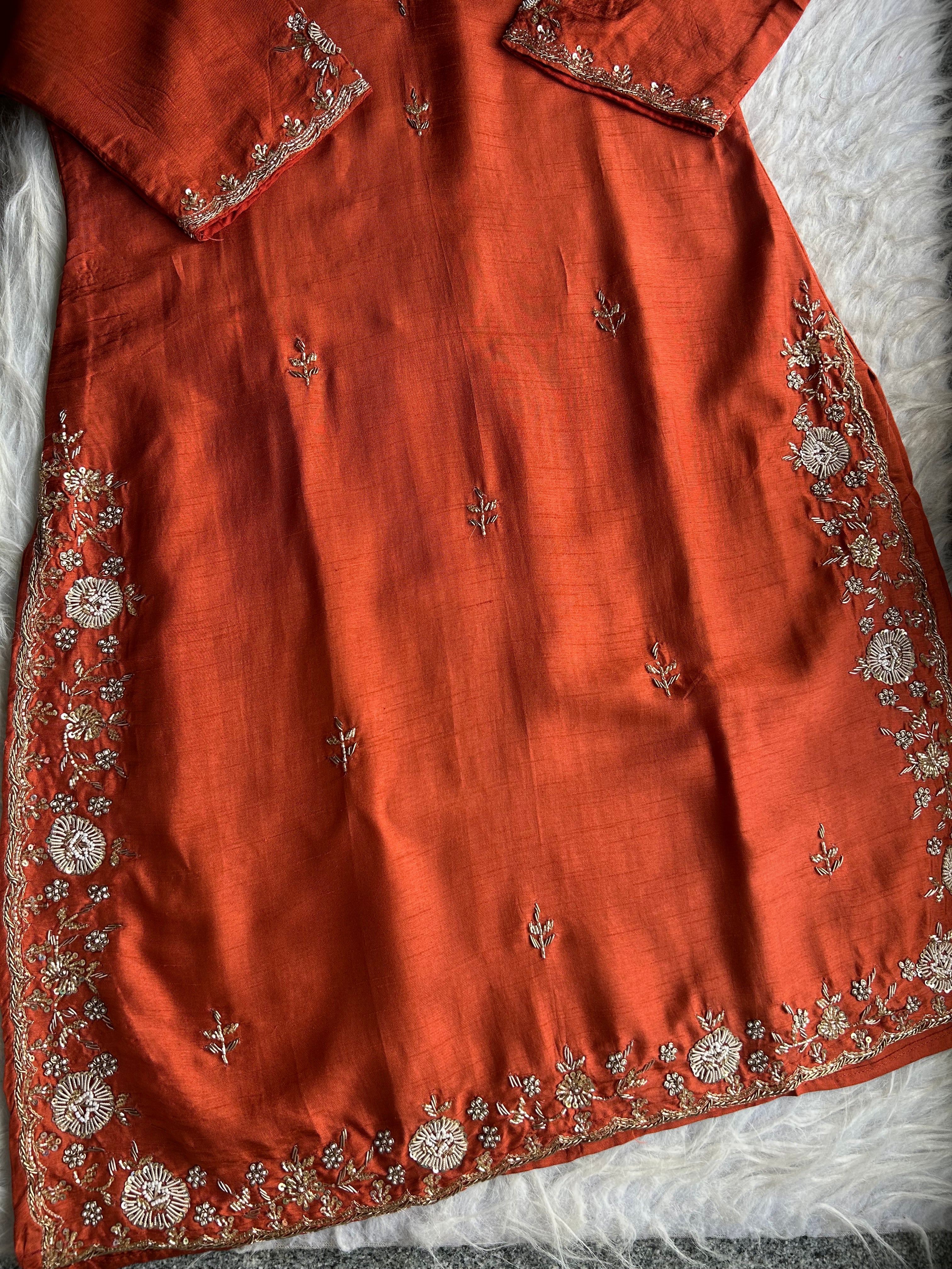 ✅ Premium Dola Silk Kurti With Zardosi & Dabka Handwork on the Neckline And On The Sides Of The Kurta