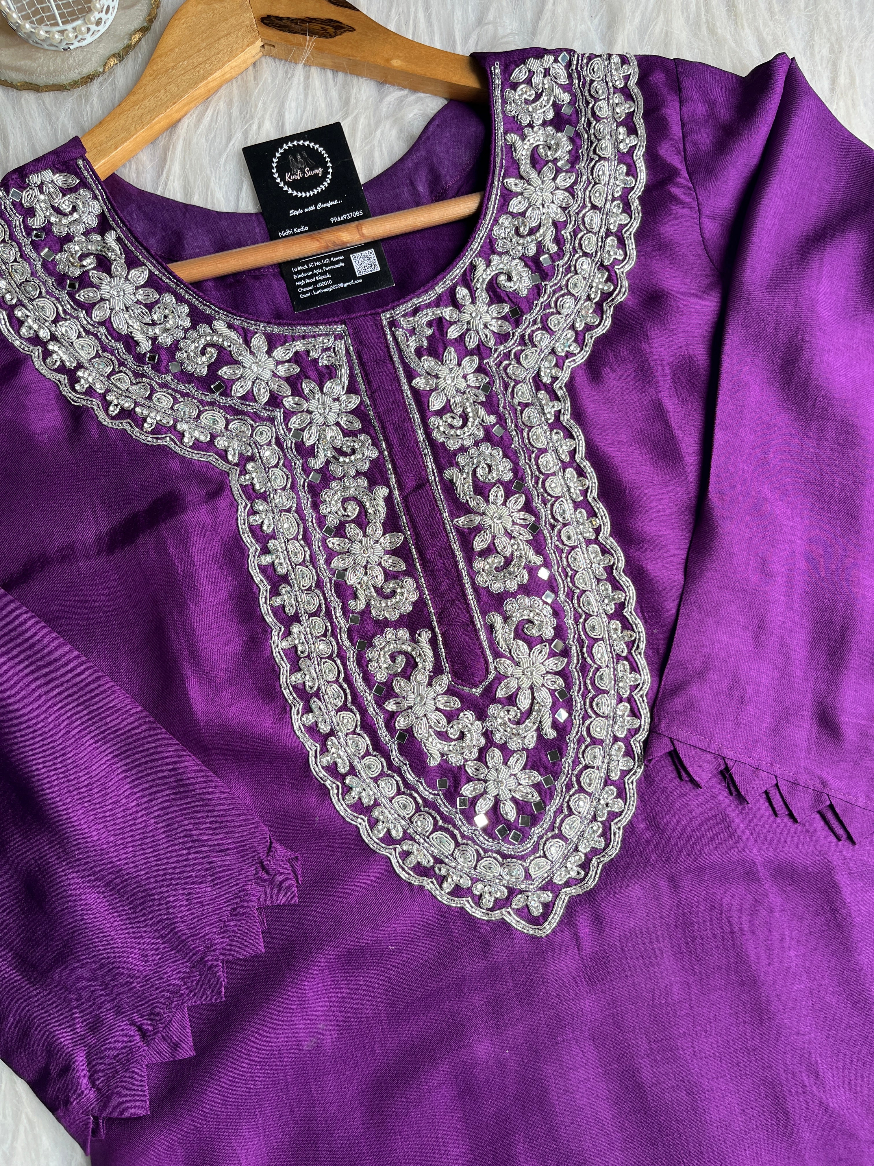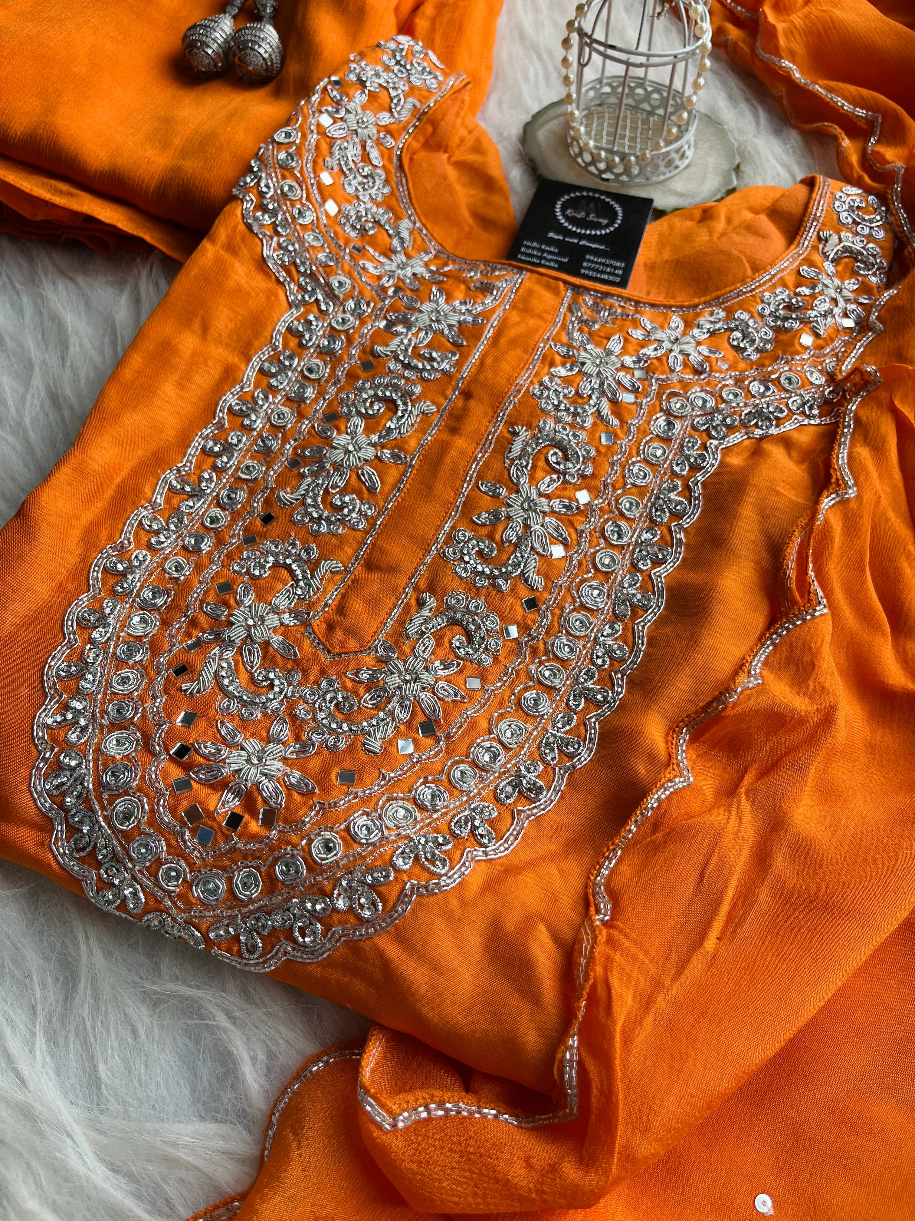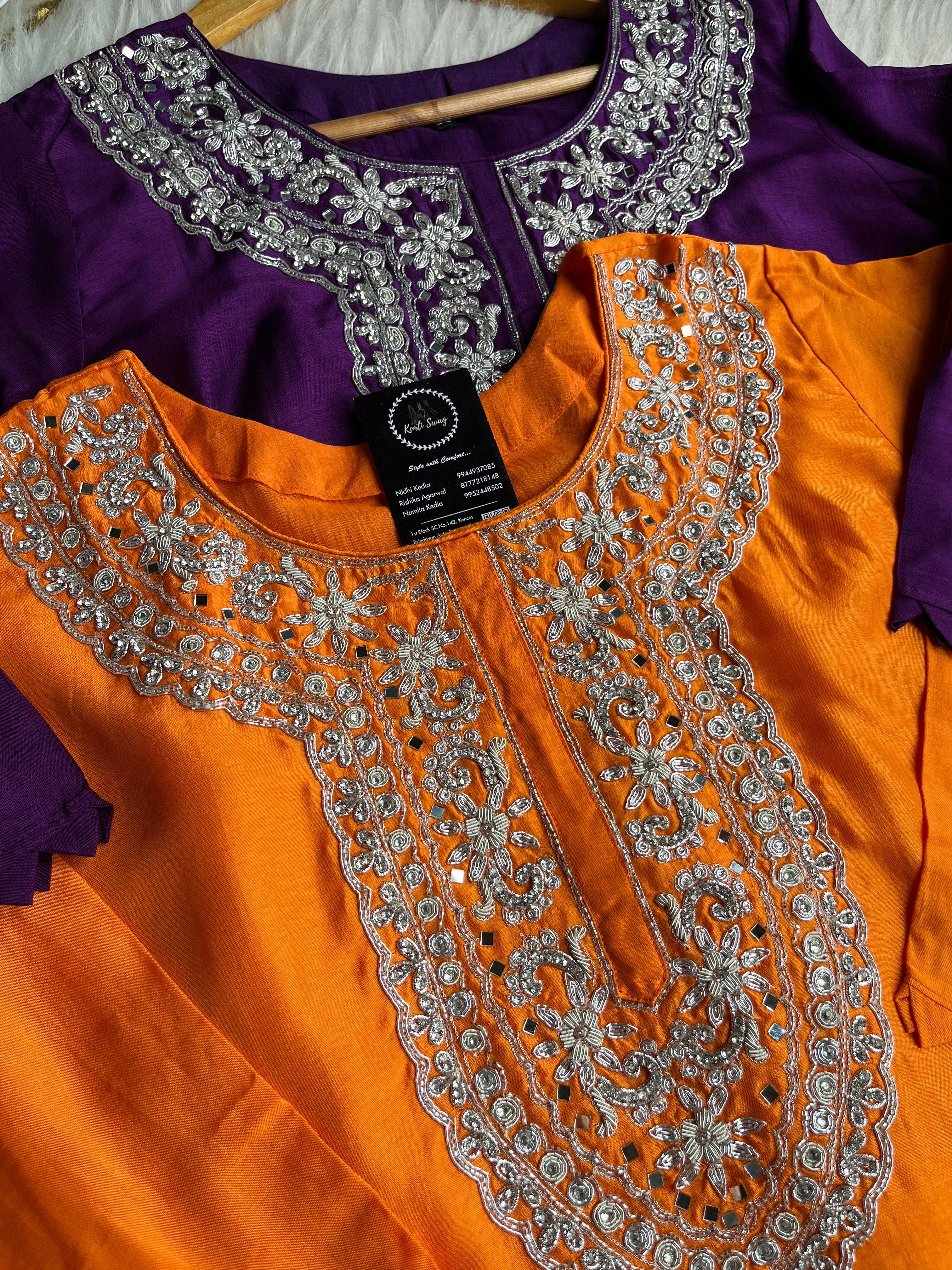 ✅ Premium Dola Silk Kurta with Lining and Zardosi hand work on the Neckline Of The Kurta
