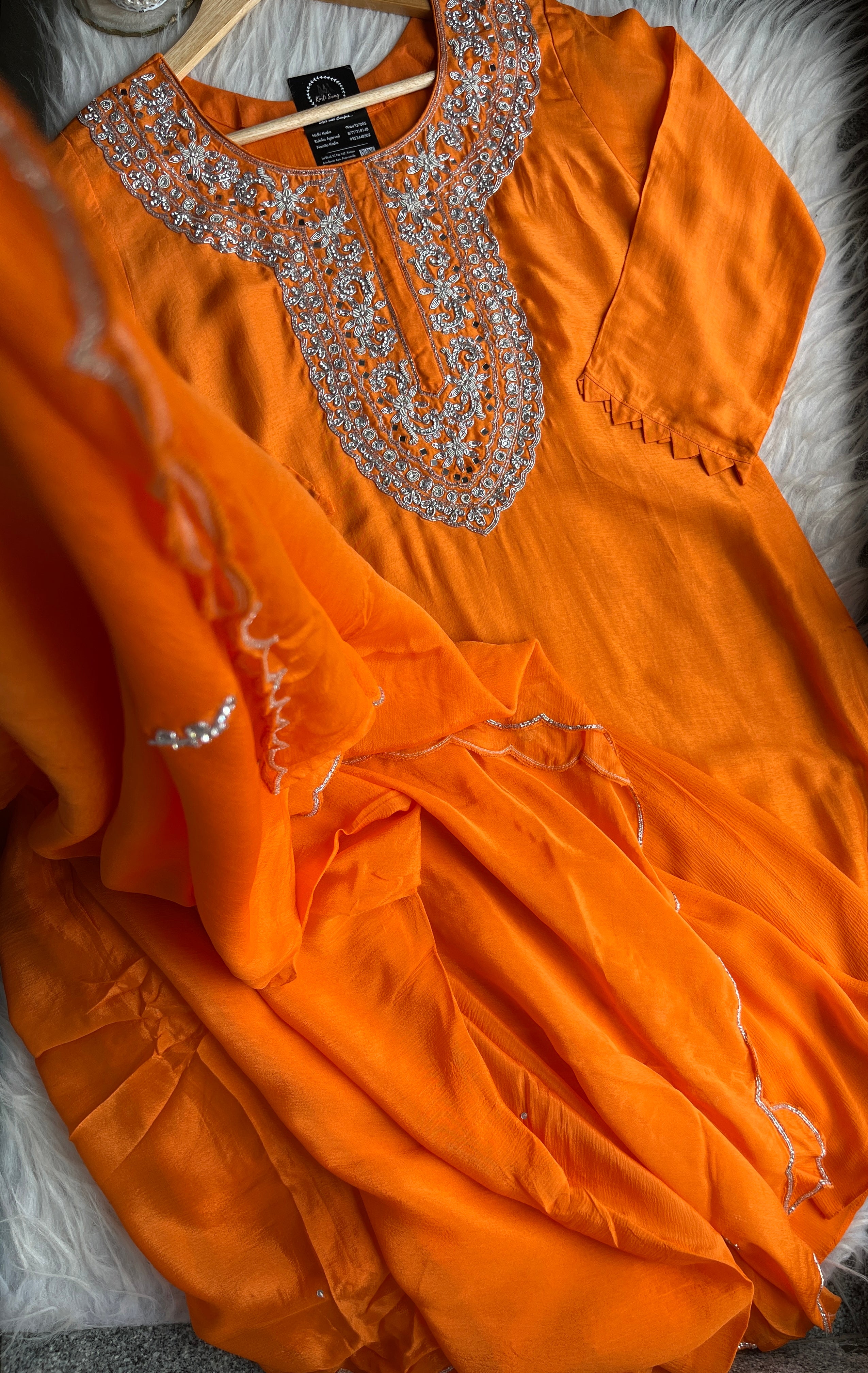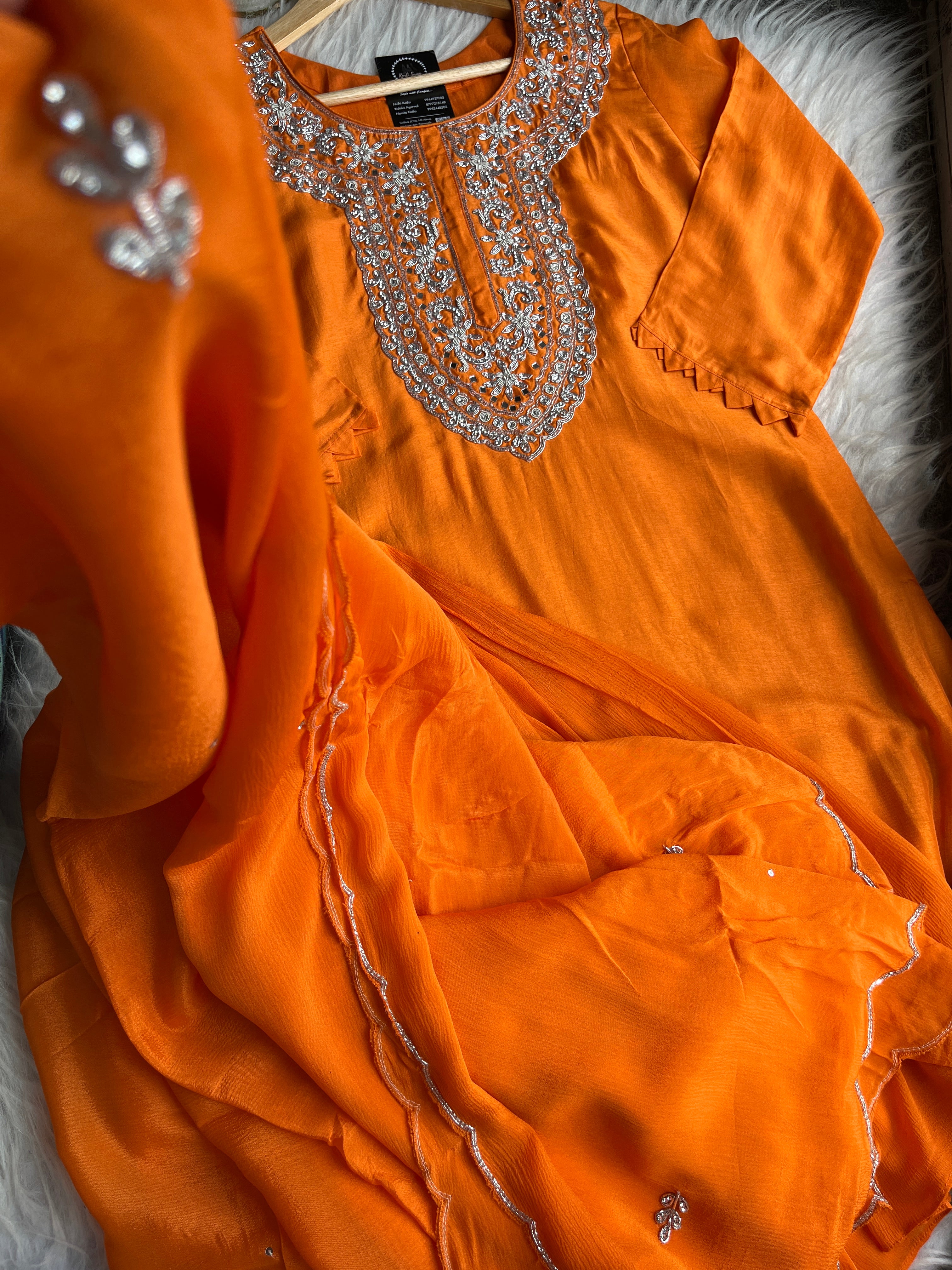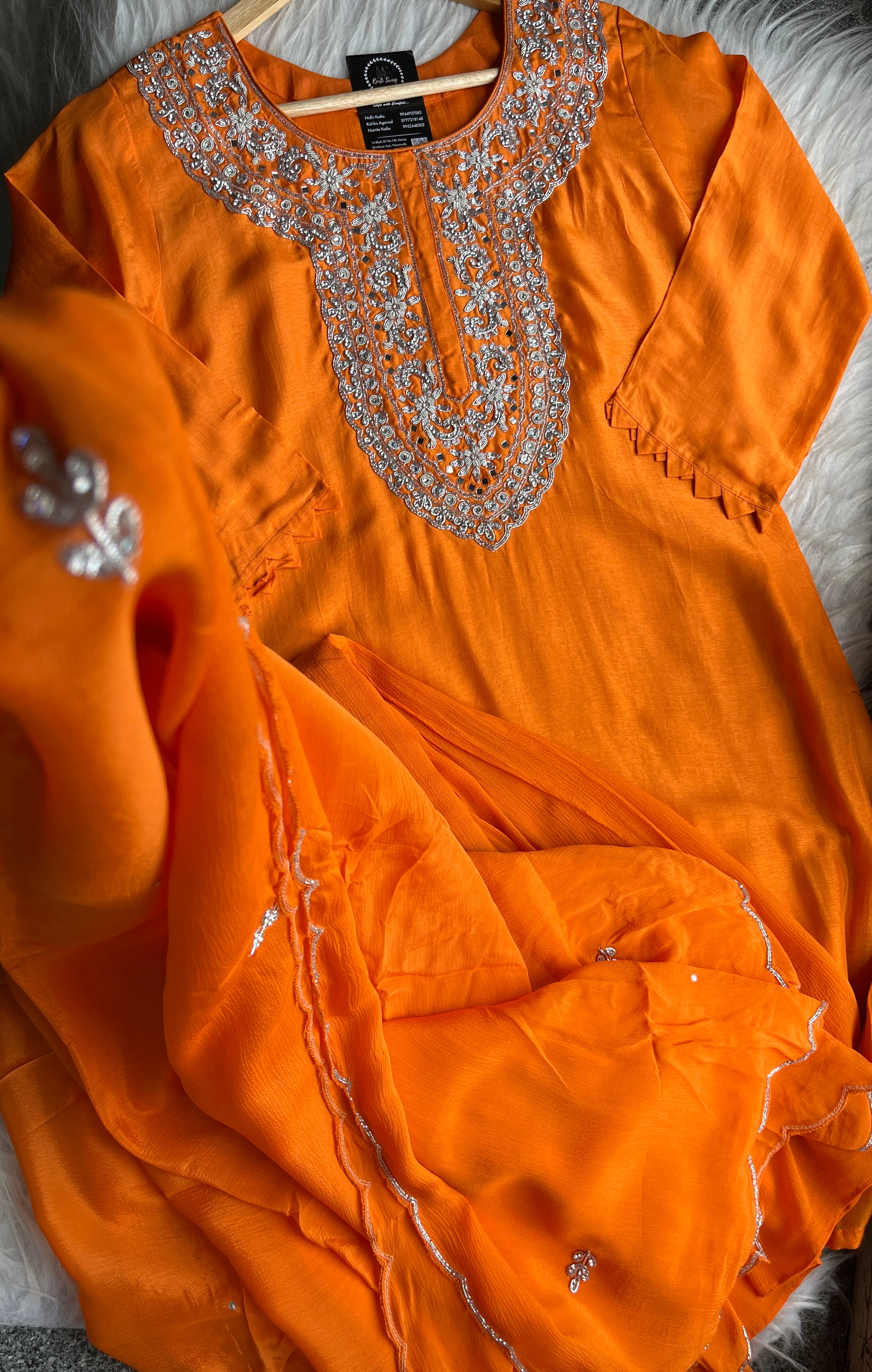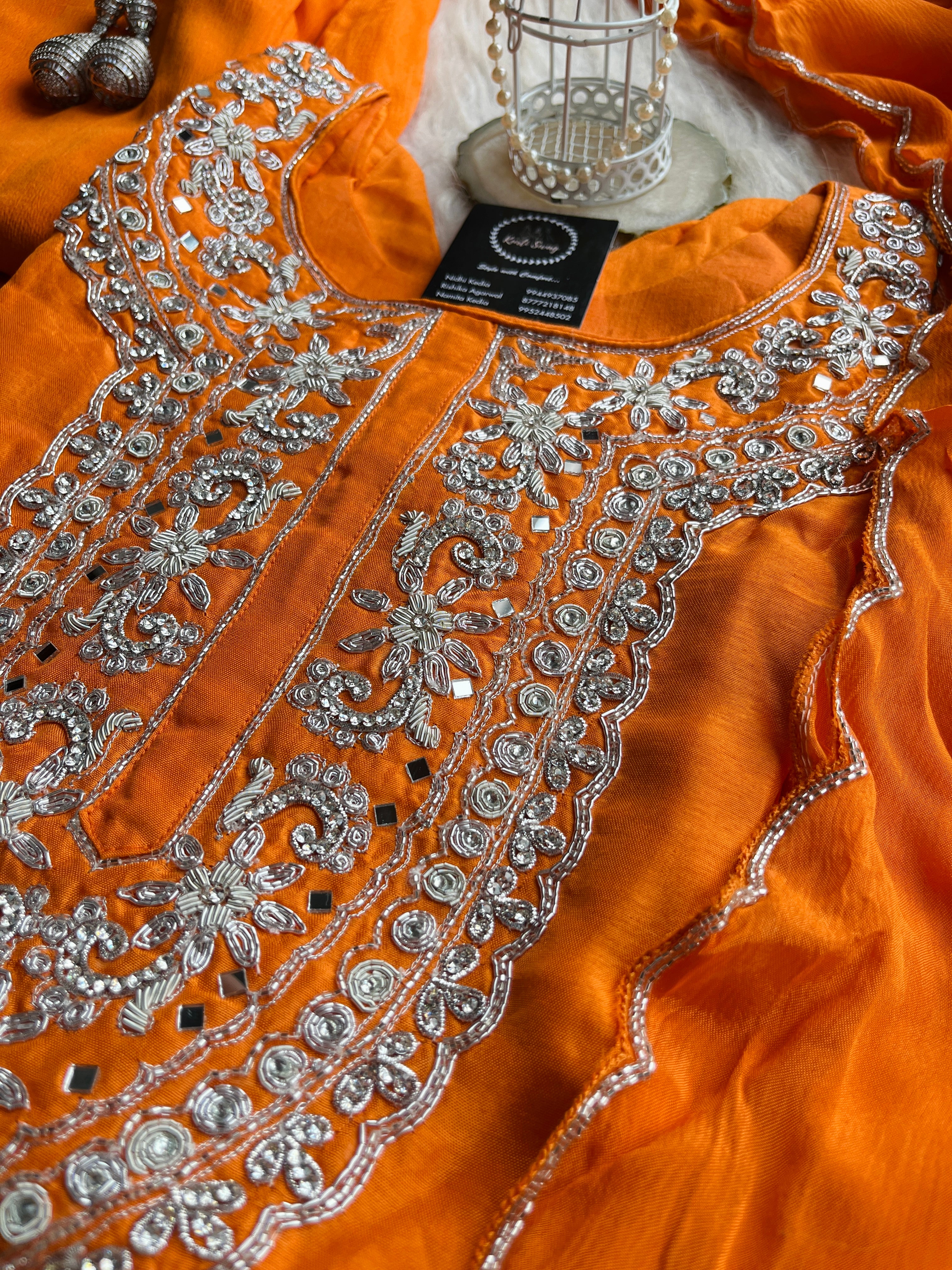 ✅ Premium Dola Silk Kurta with Lining and Zardosi hand work on the Neckline Of The Kurta