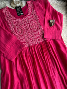 ✅ Premium Mul Chanderi Kurti With Thread Work On The Yoke Of The Kurti