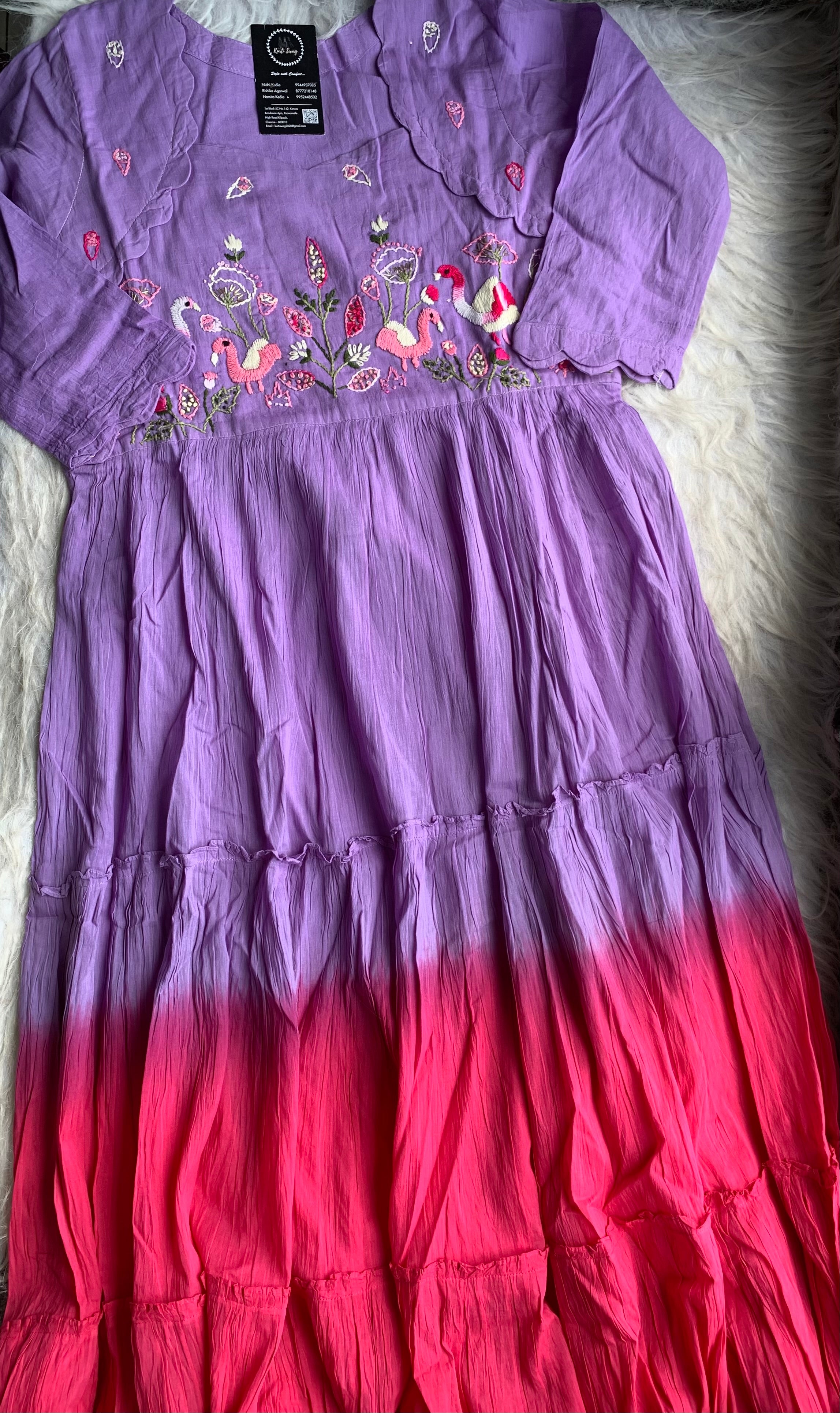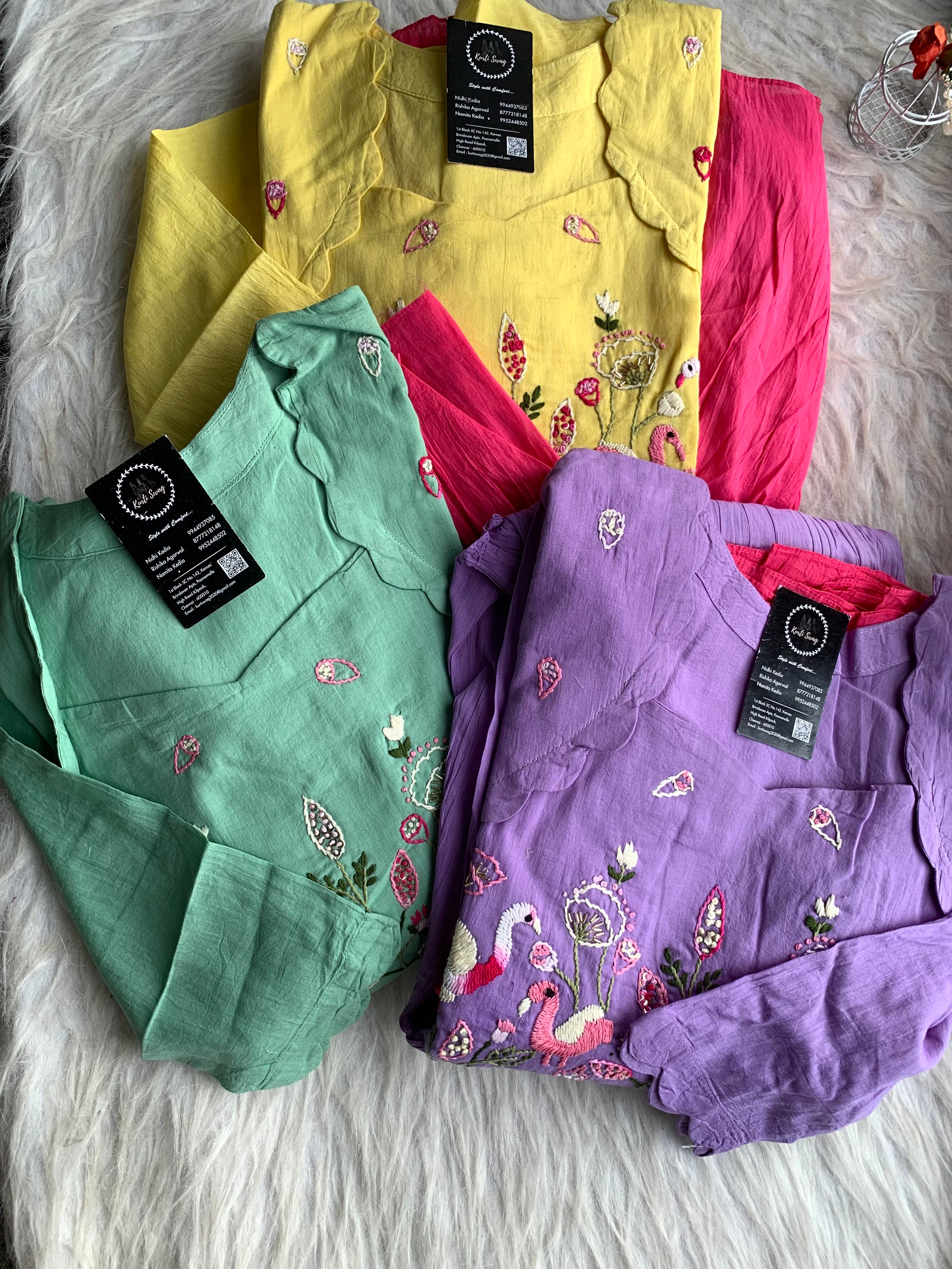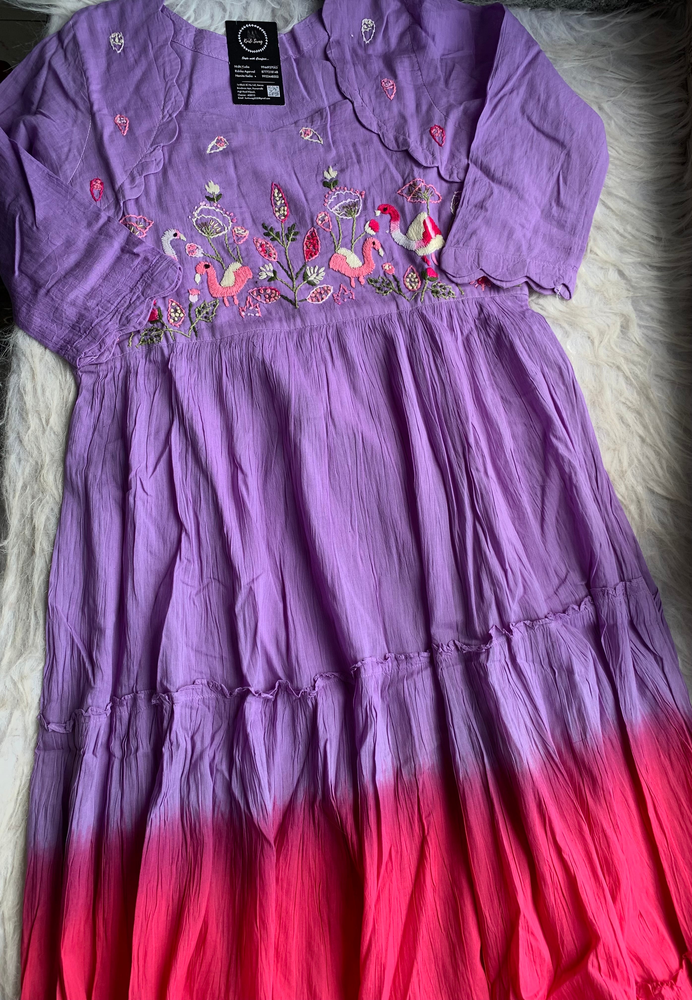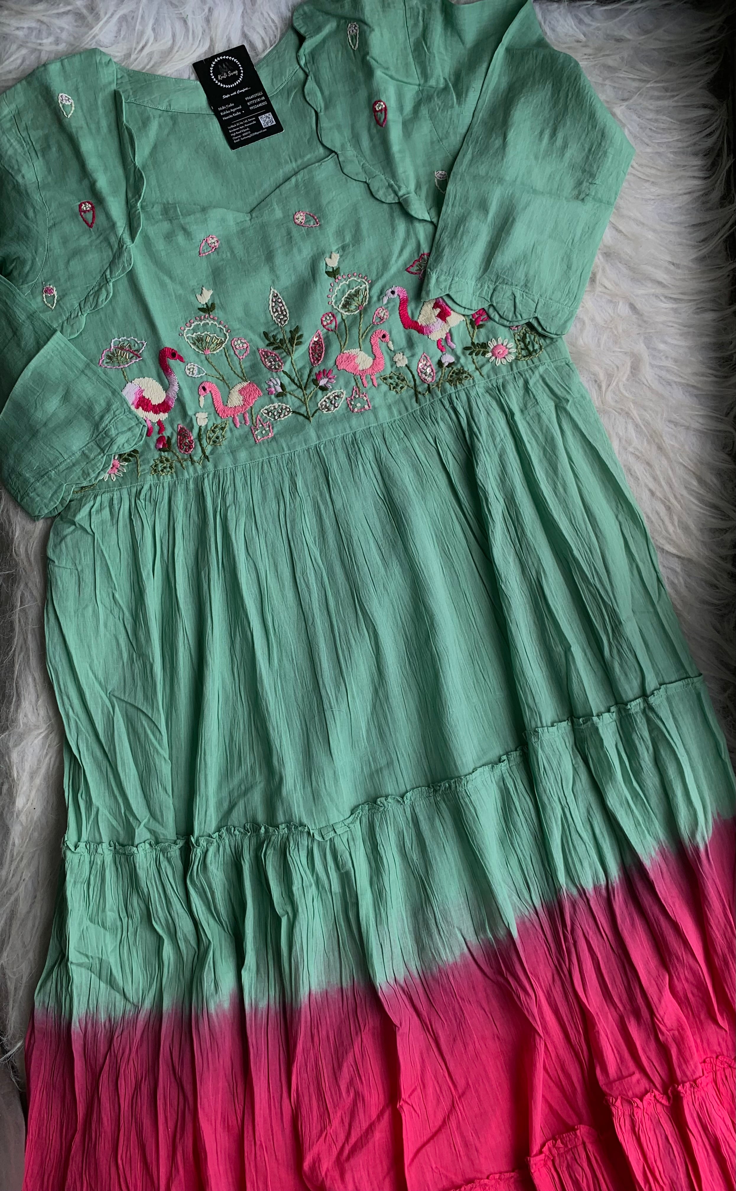 ✅ Mul Cotton Ombre Shaded Kurti With Thread Hand Embroidery On The Yoke Of The Kurti