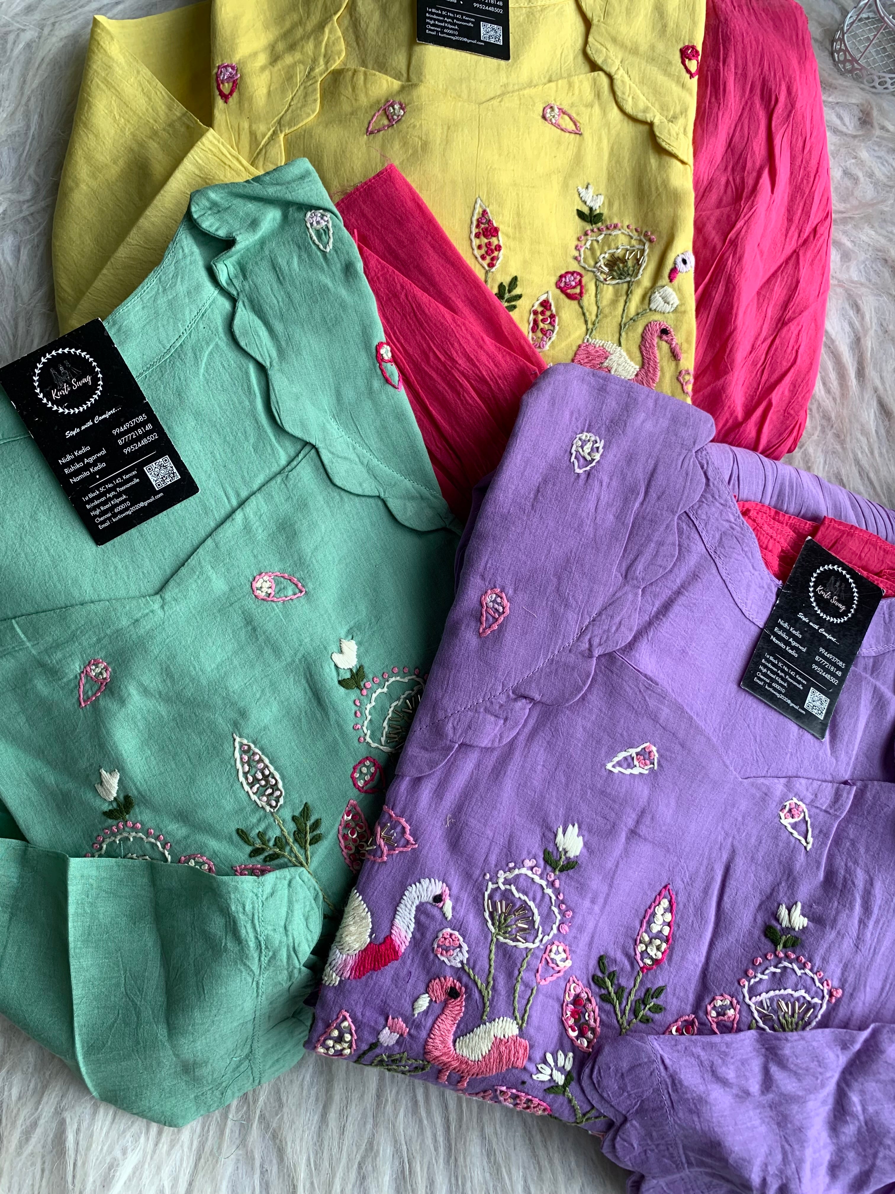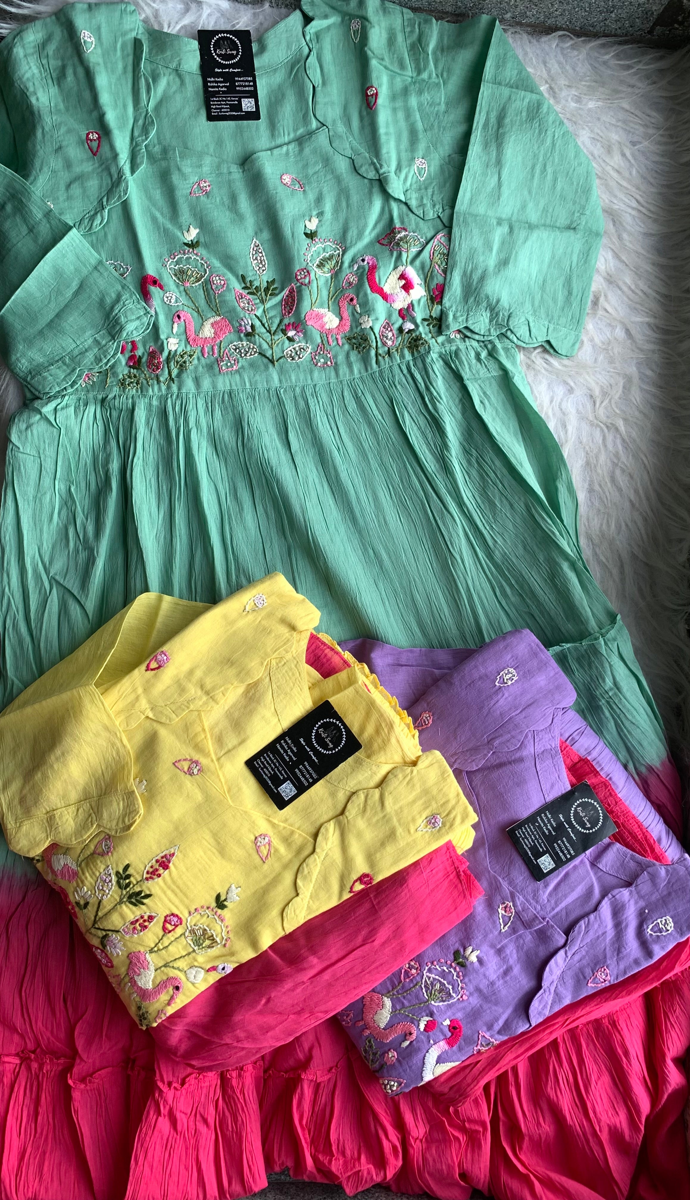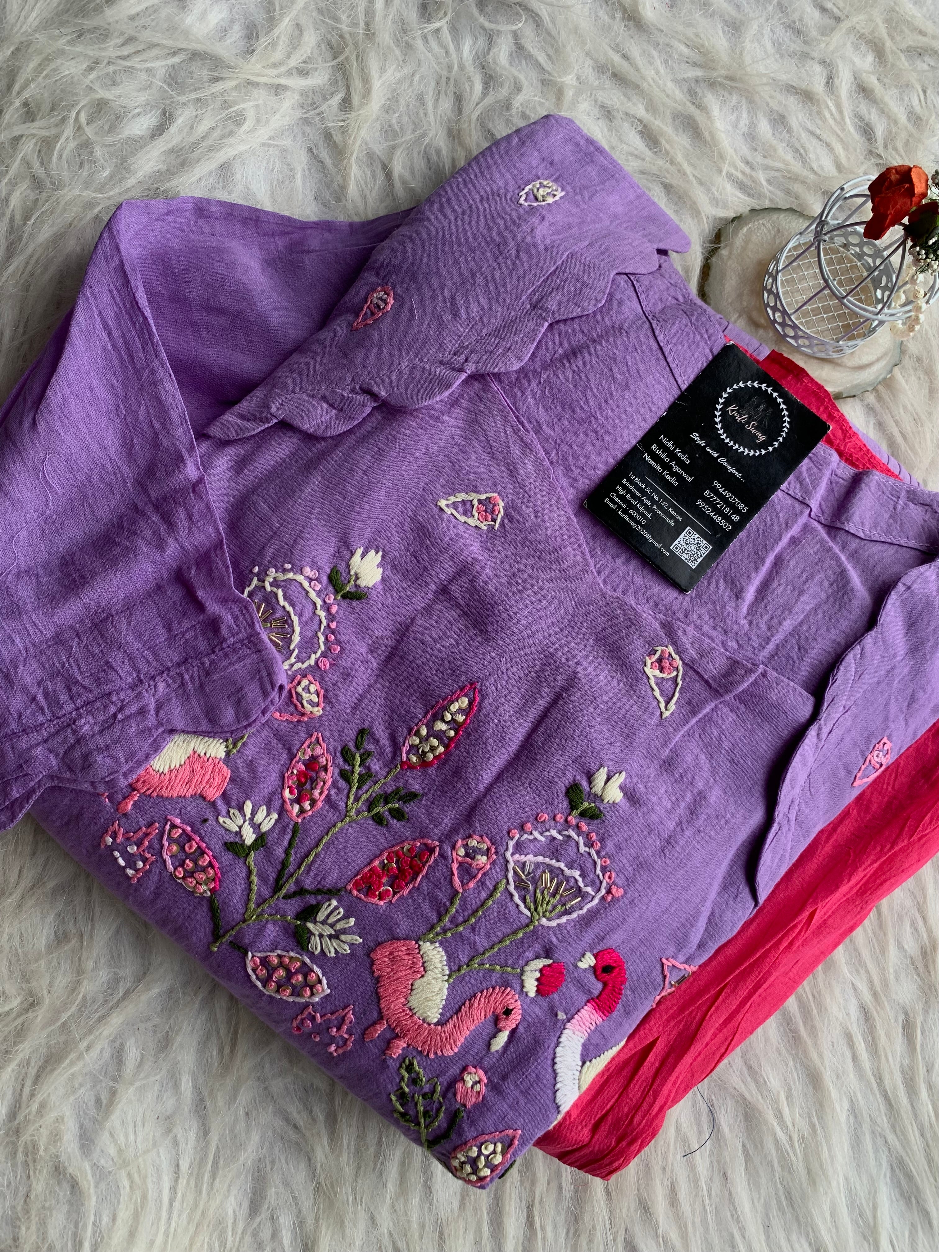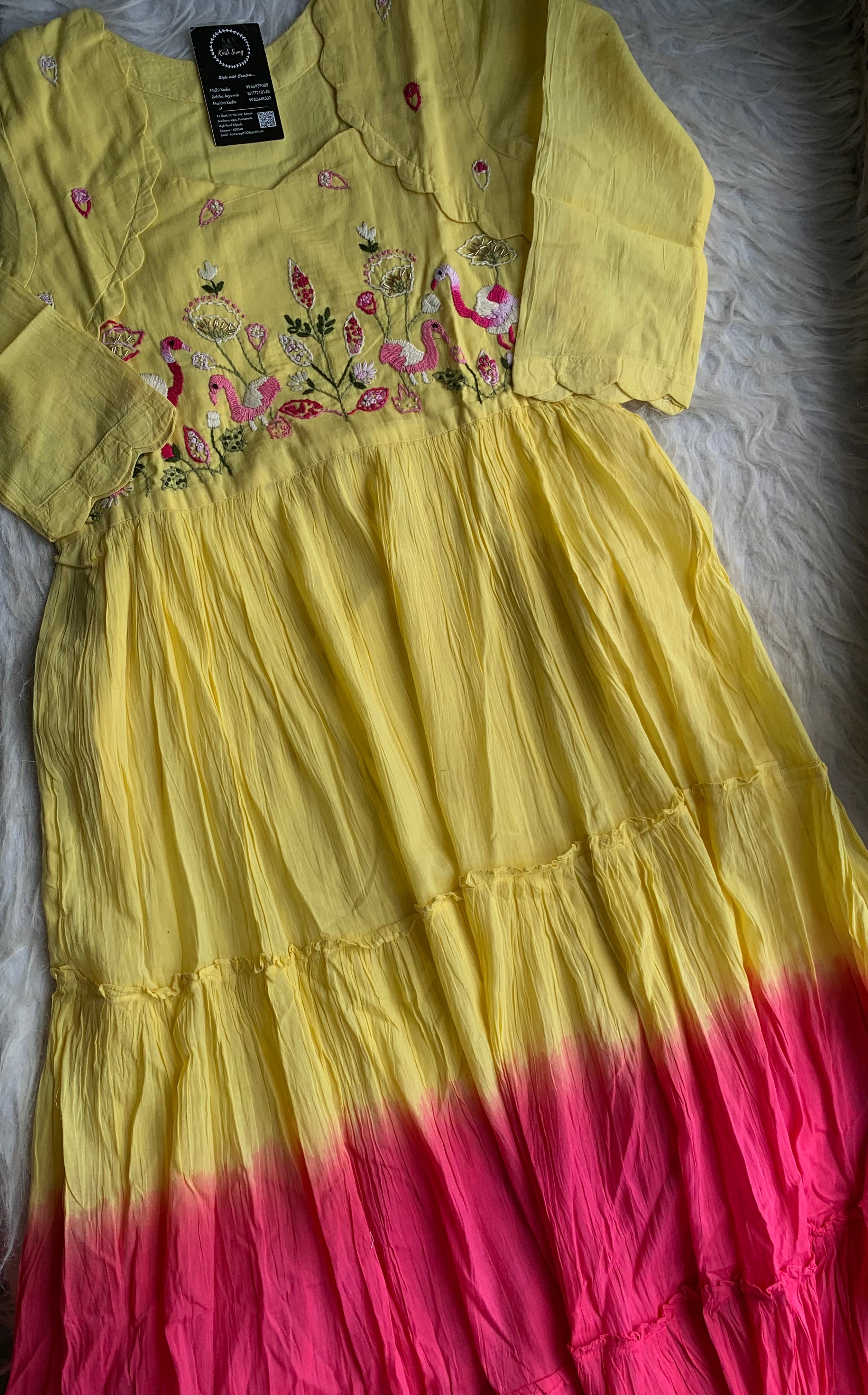 ✅ Mul Cotton Ombre Shaded Kurti With Thread Hand Embroidery On The Yoke Of The Kurti