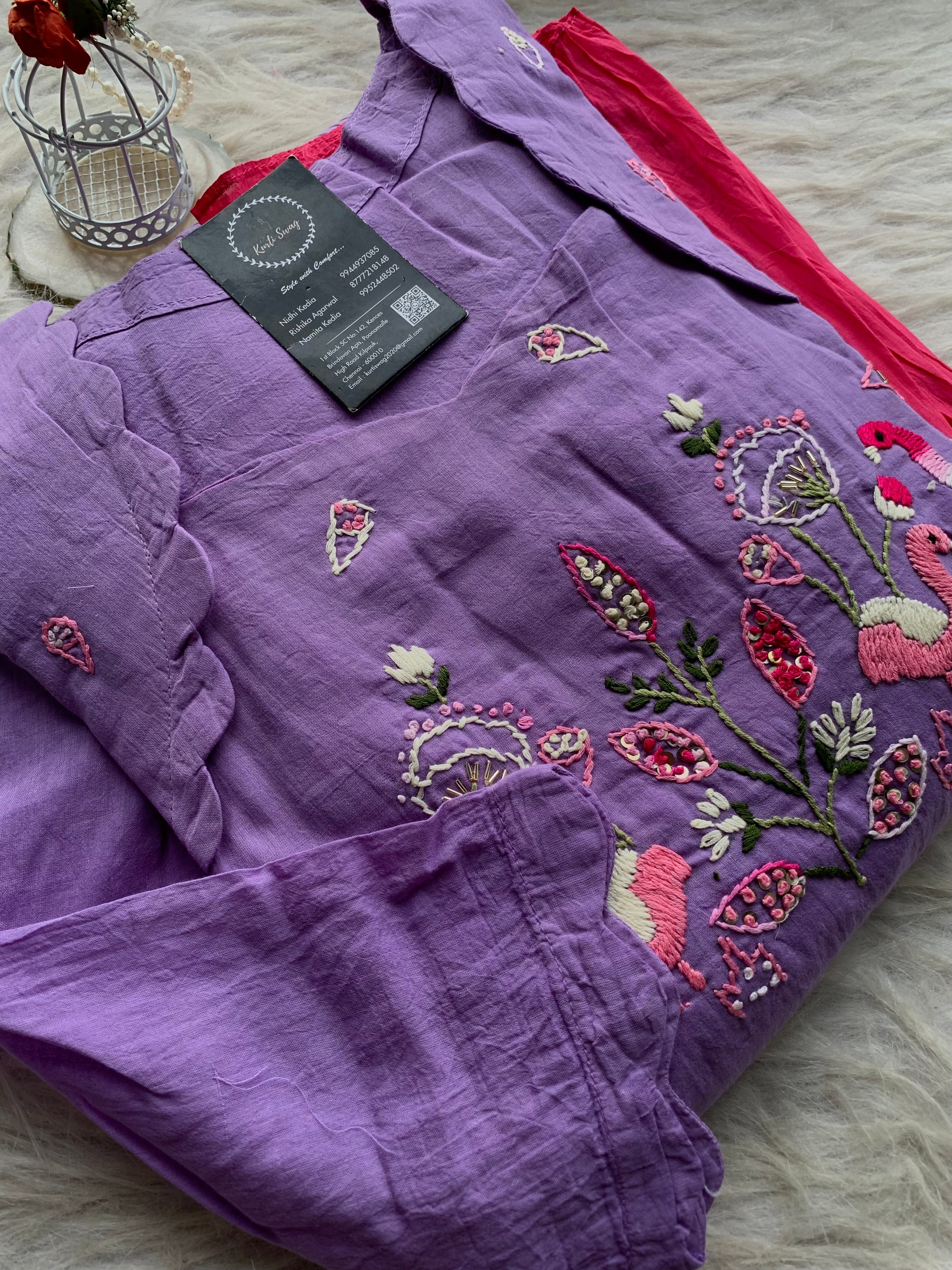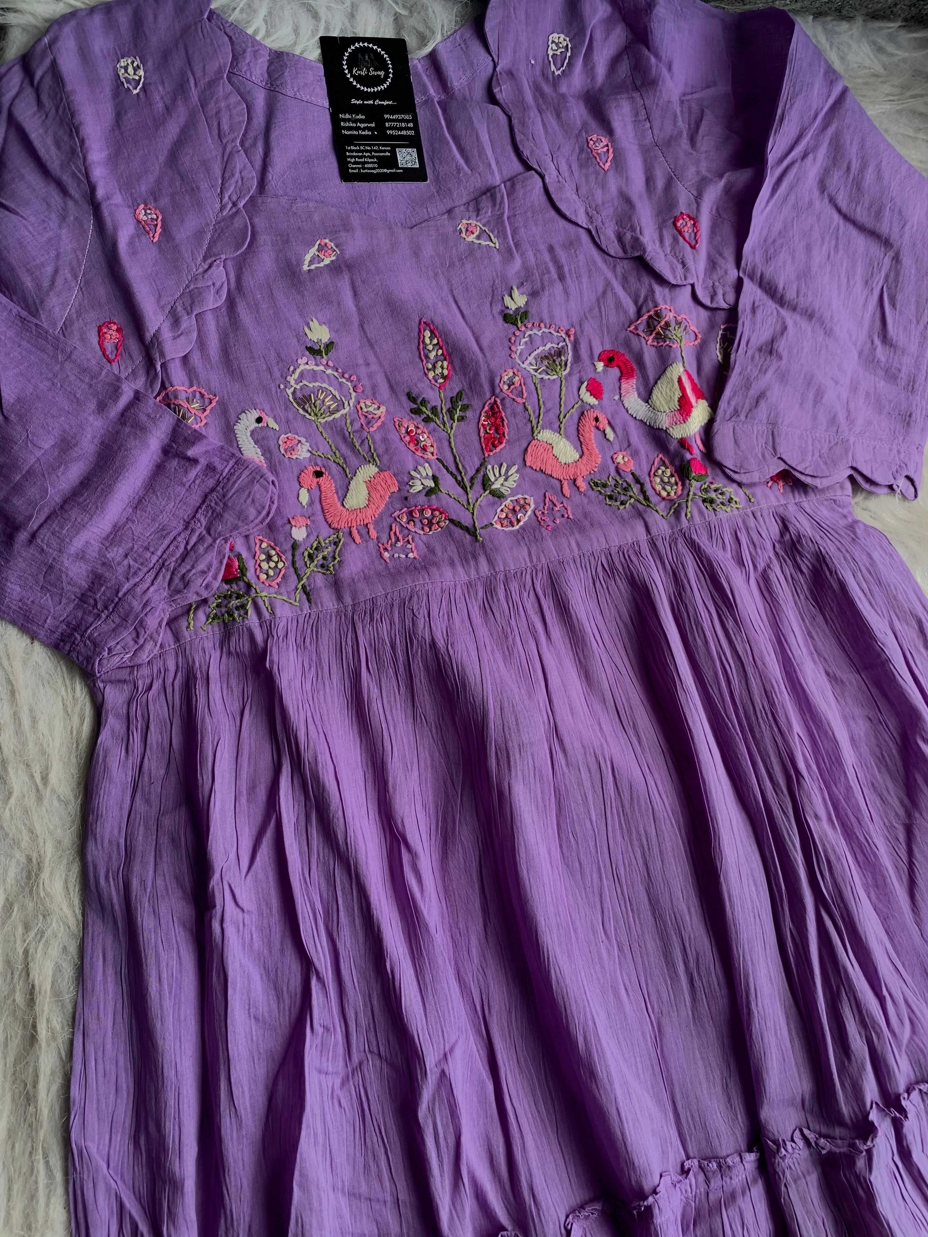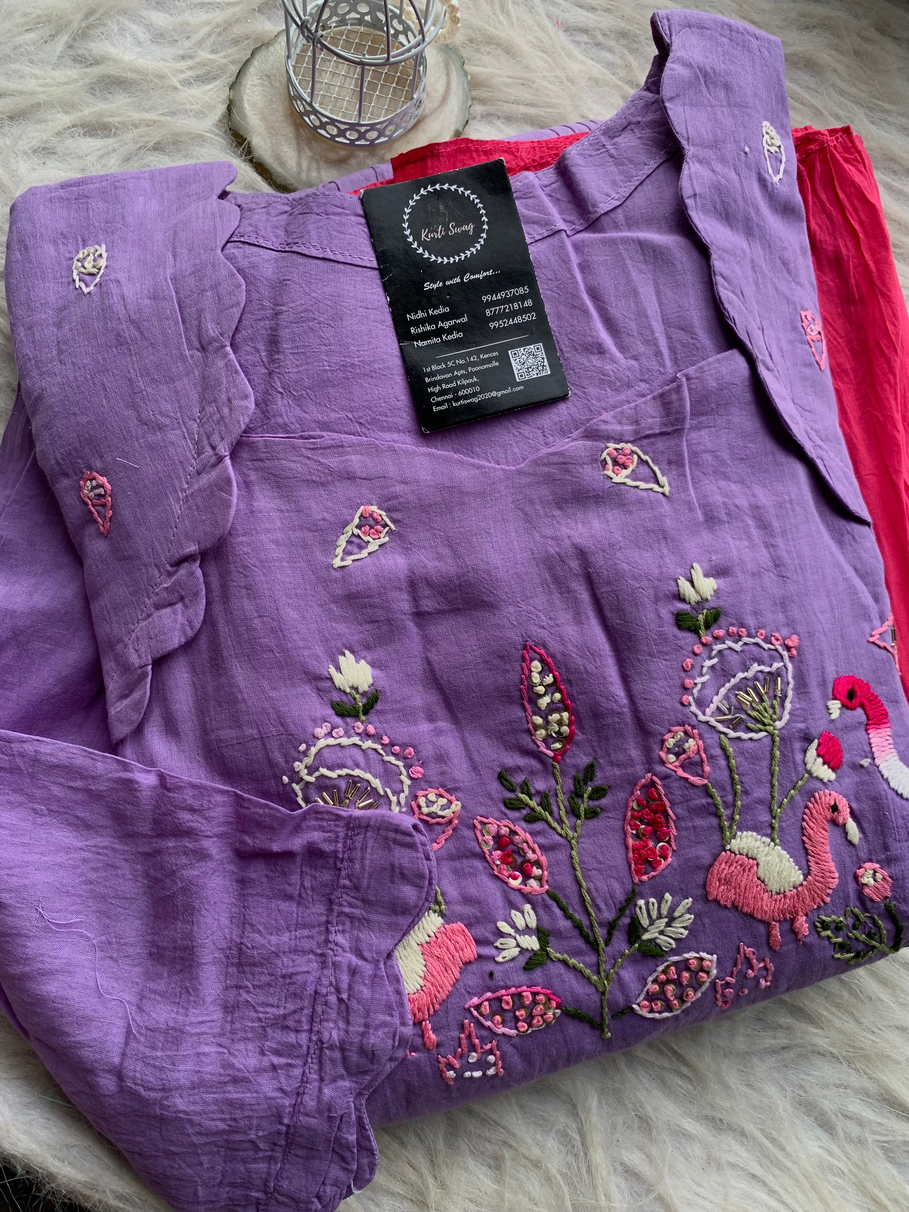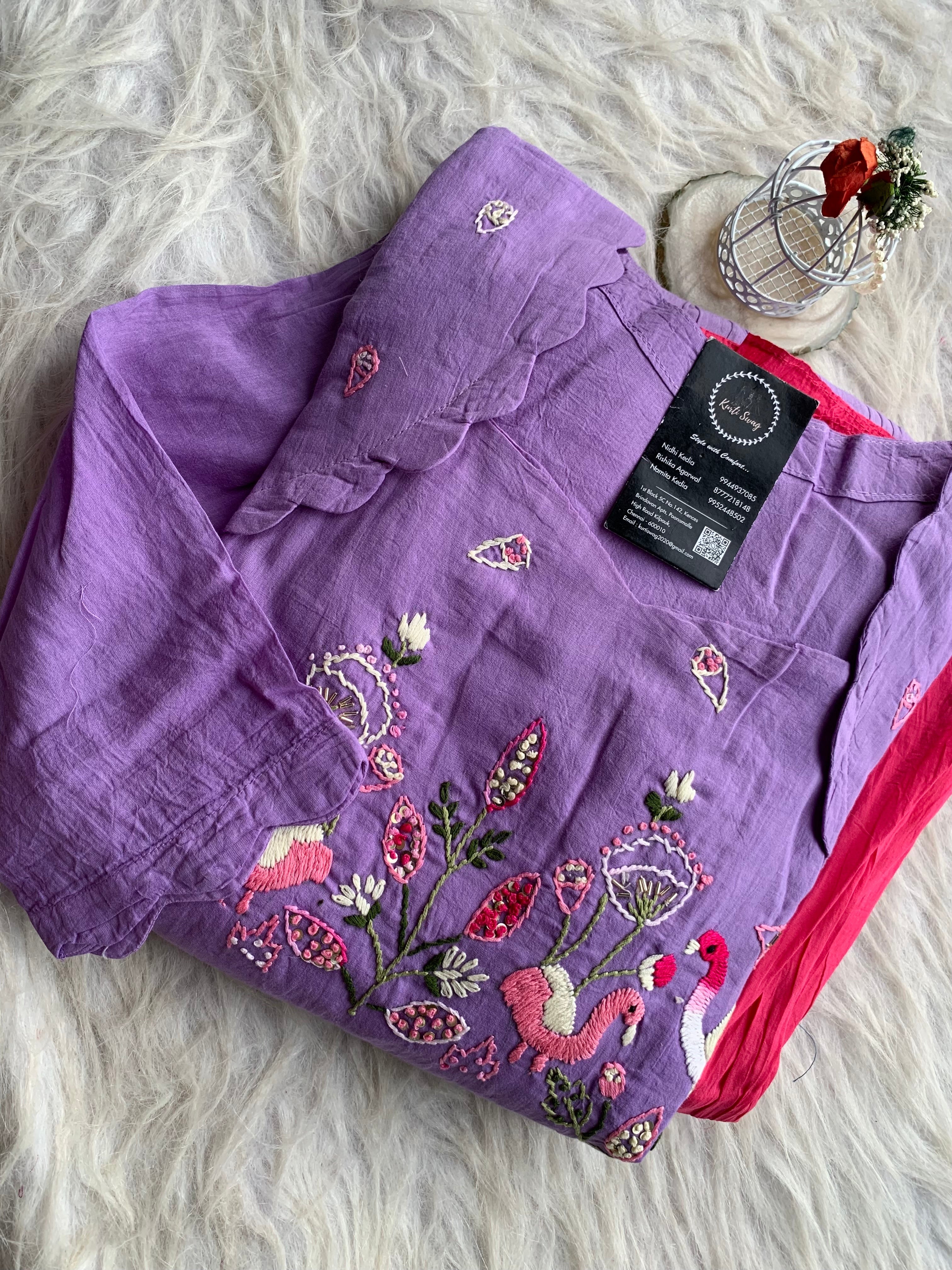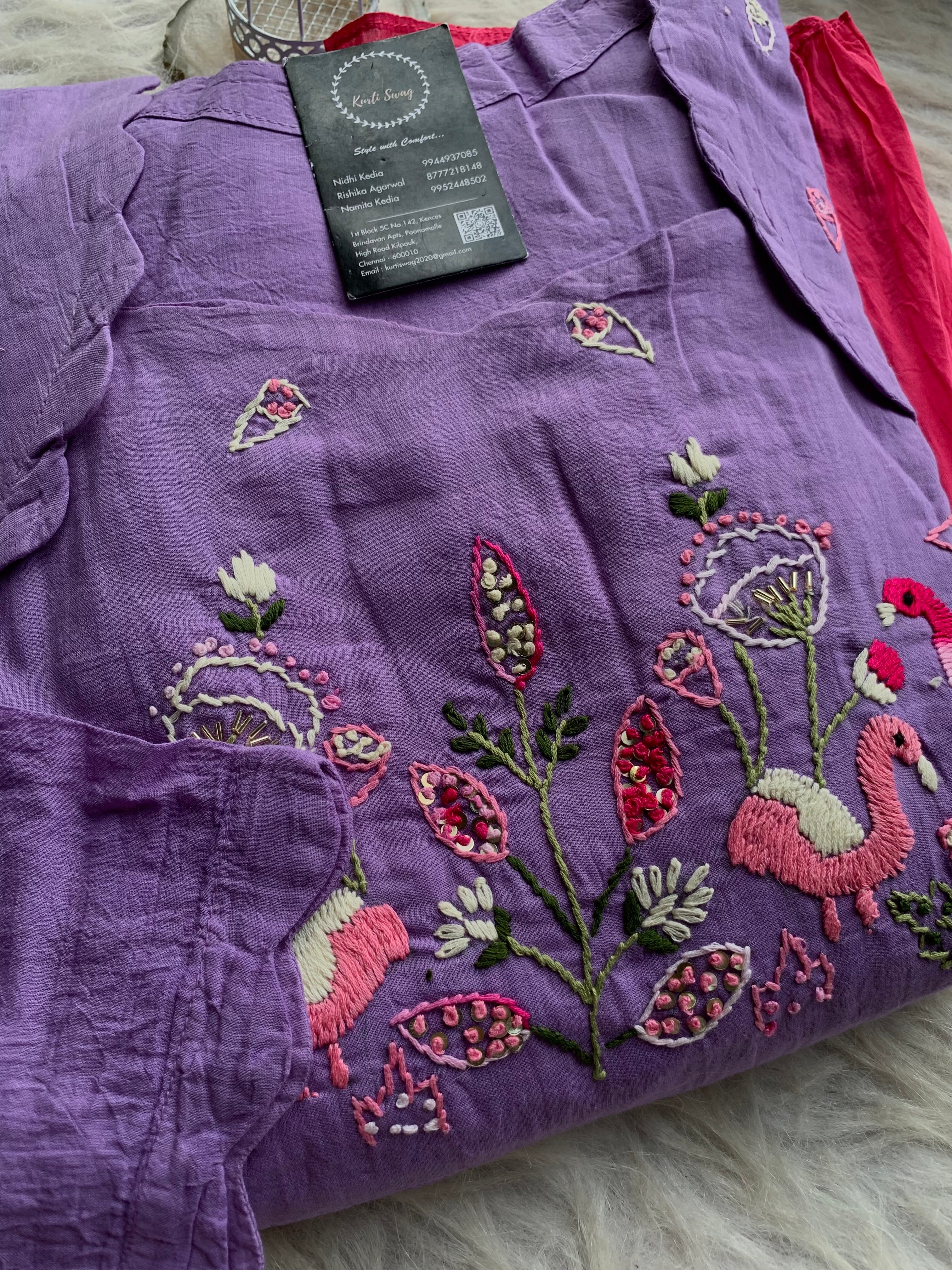 ✅ Mul Cotton Ombre Shaded Kurti With Thread Hand Embroidery On The Yoke Of The Kurti