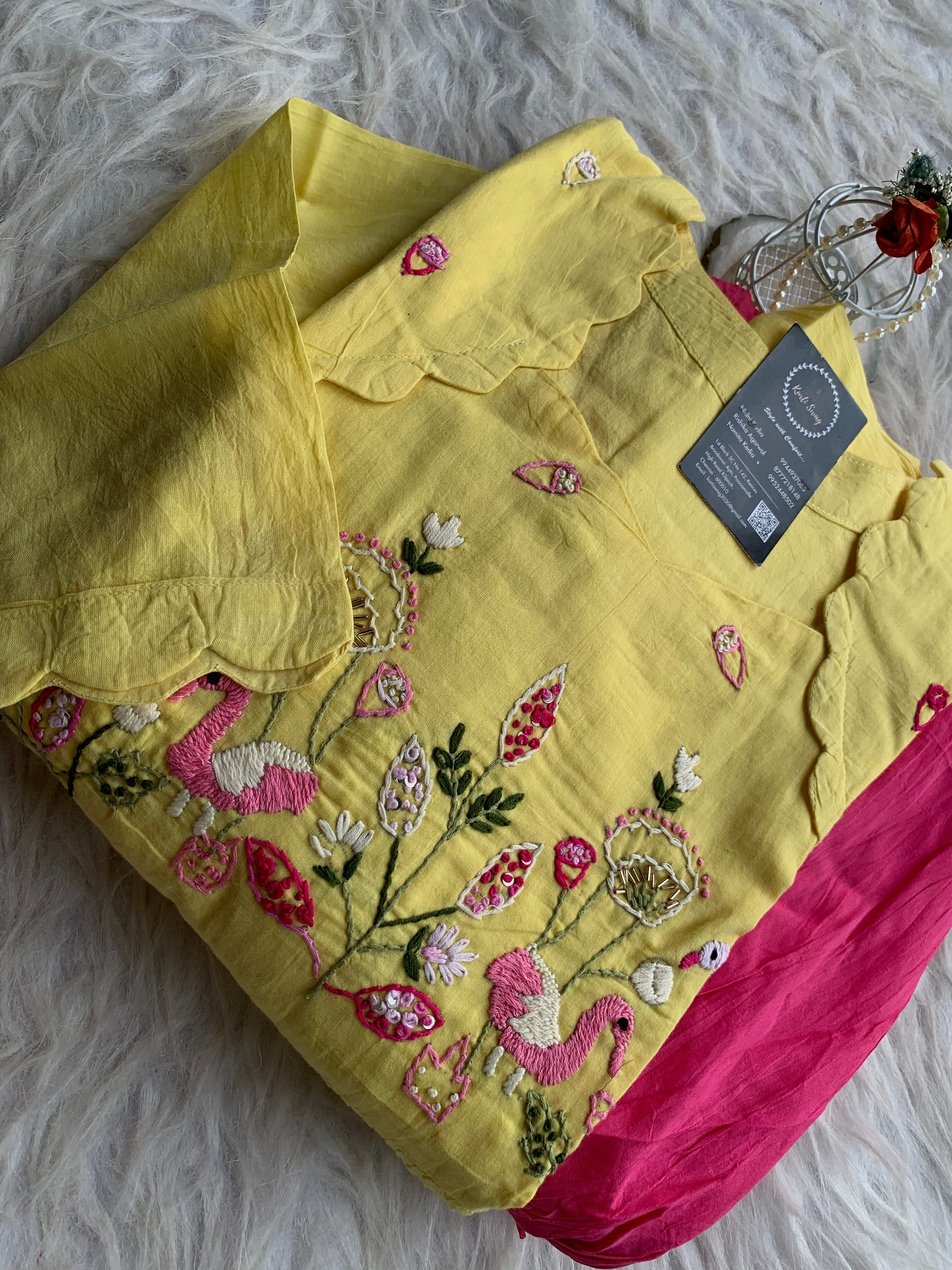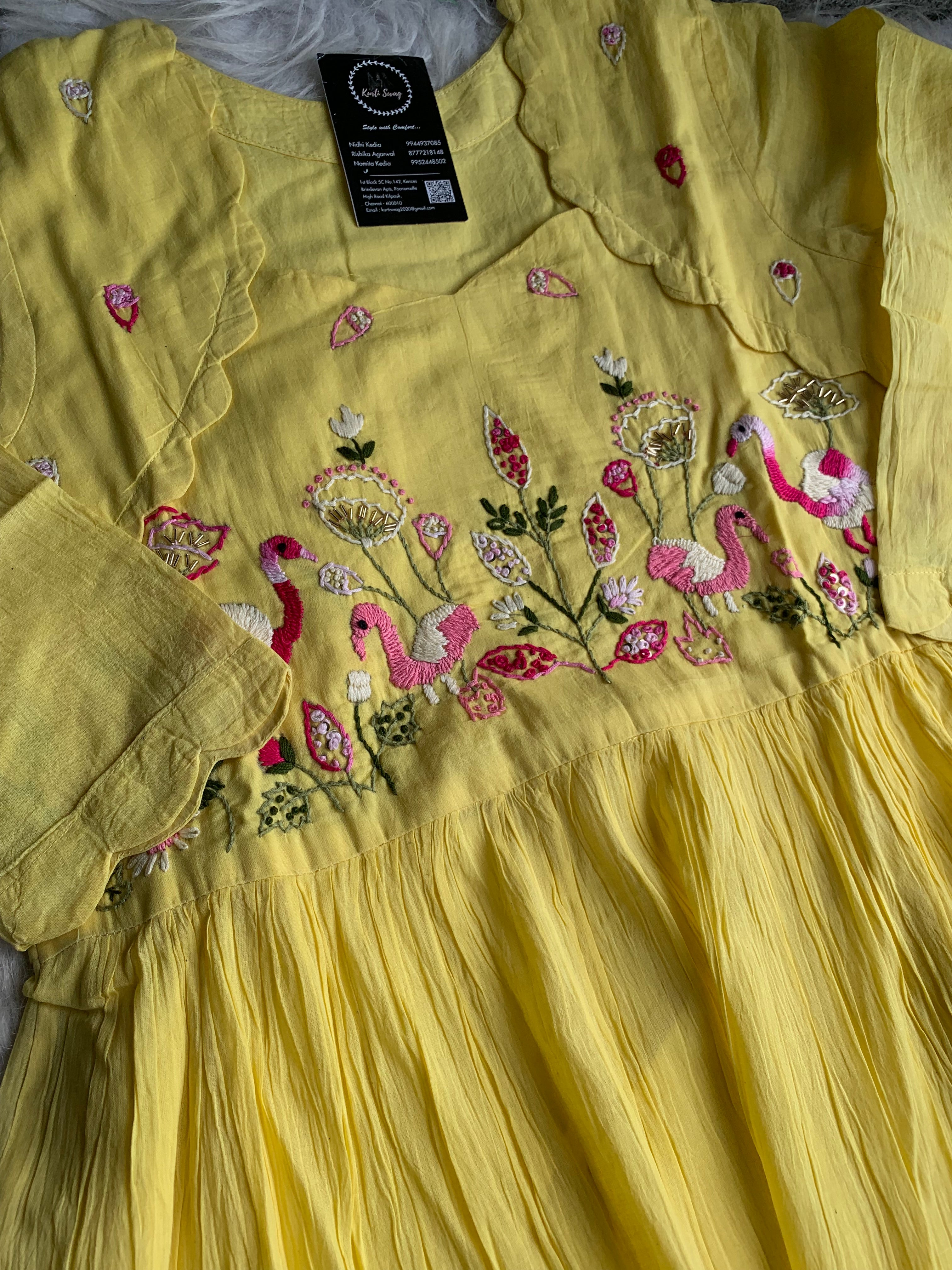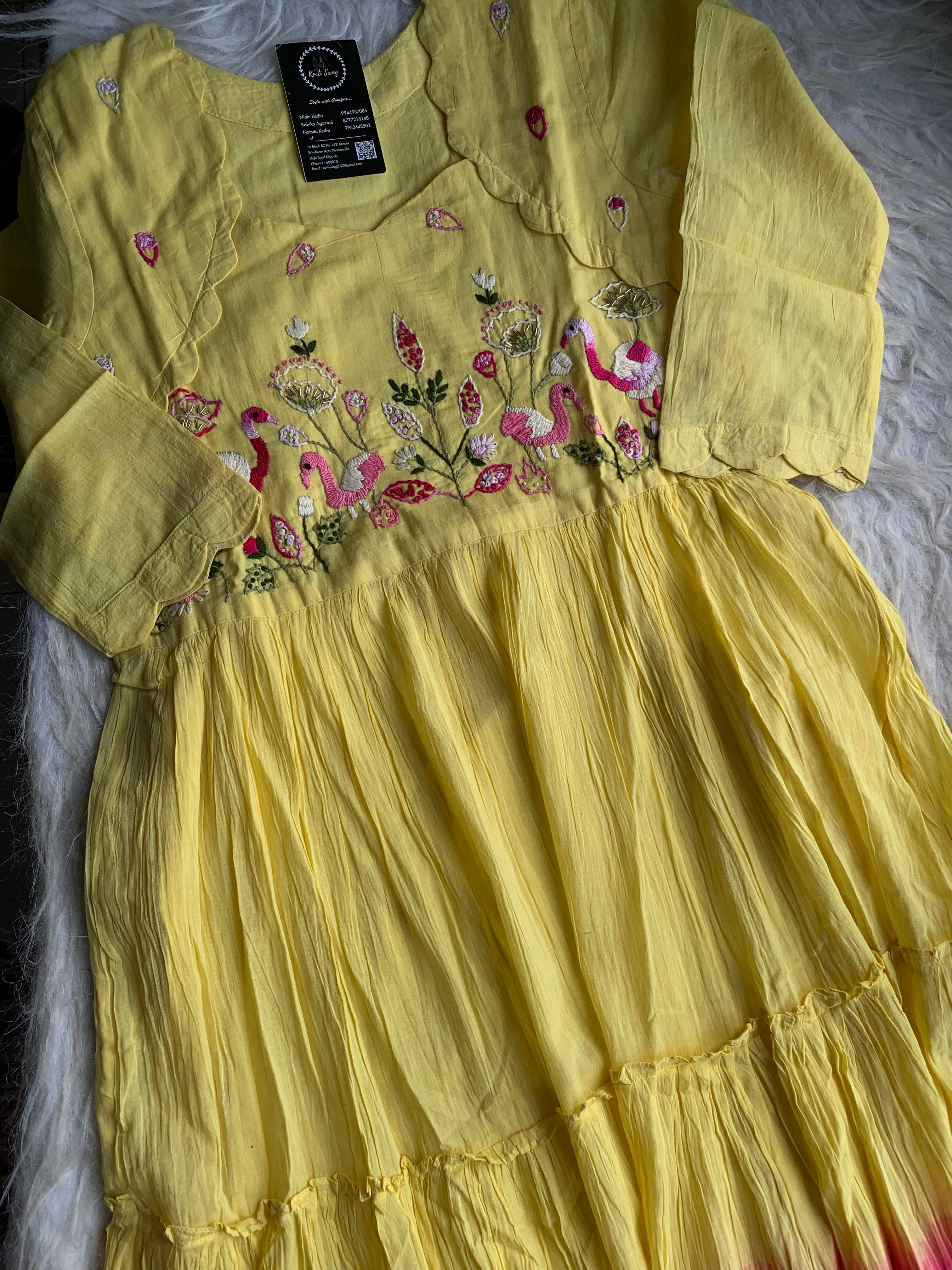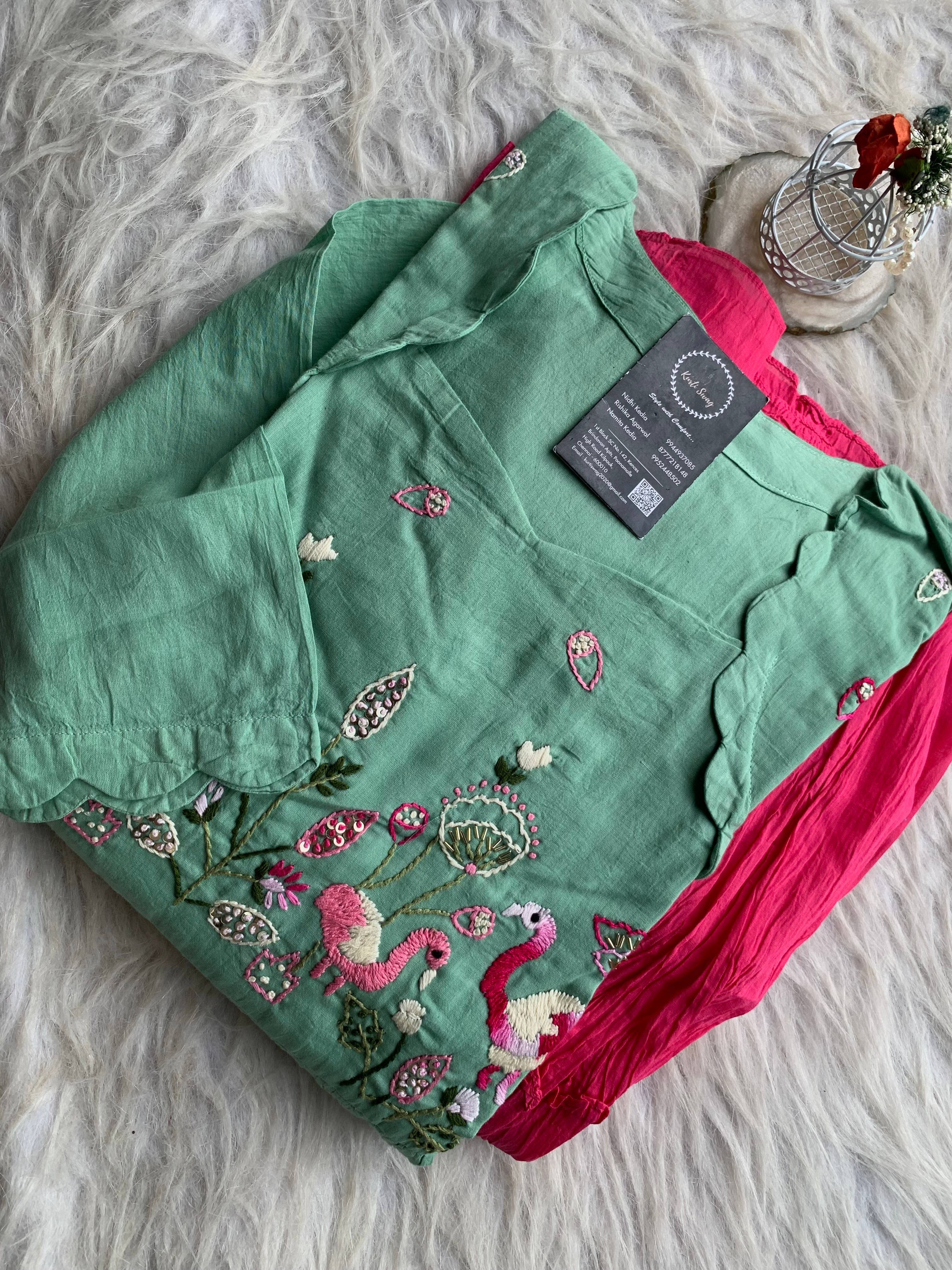 ✅ Mul Cotton Ombre Shaded Kurti With Thread Hand Embroidery On The Yoke Of The Kurti