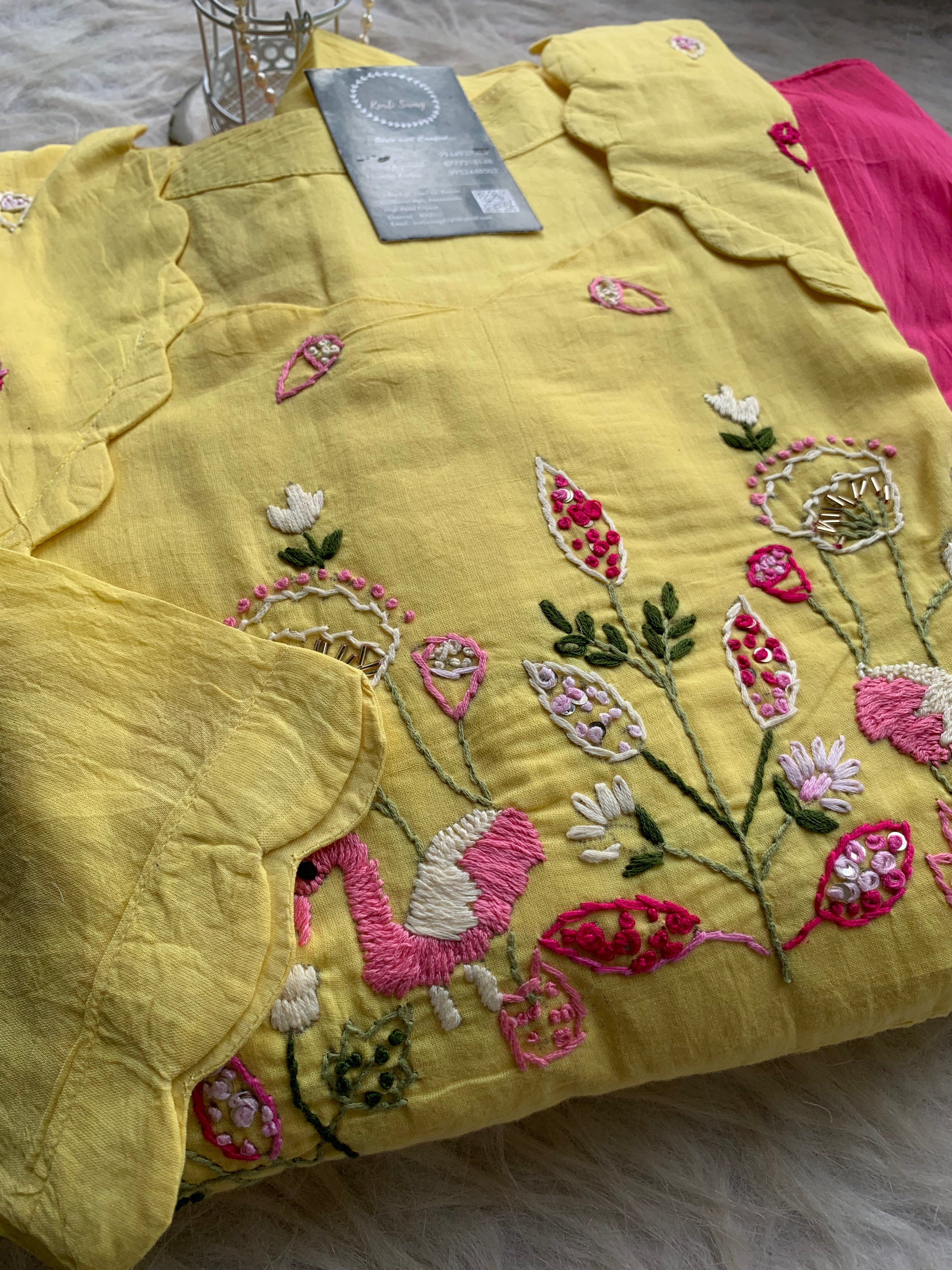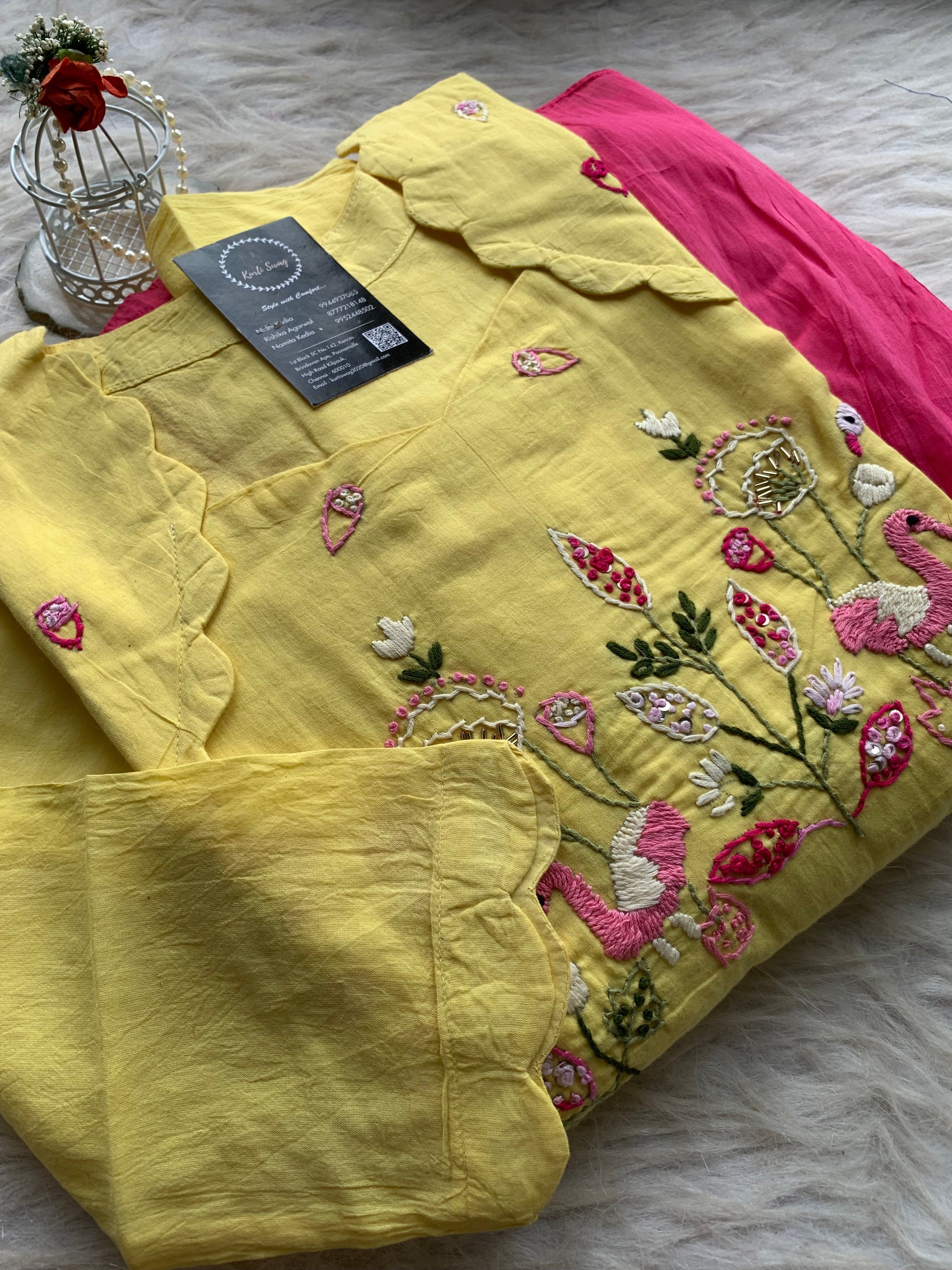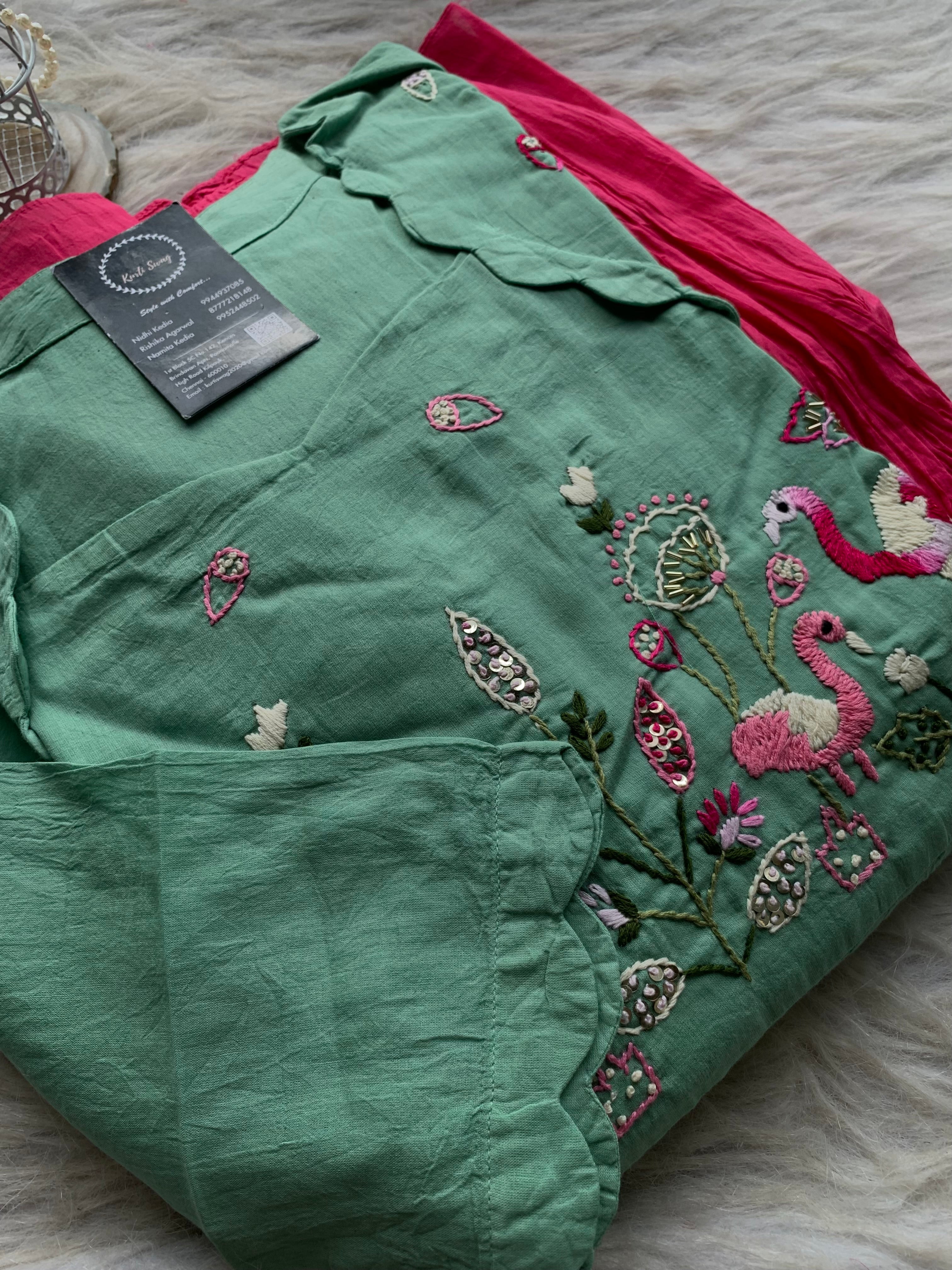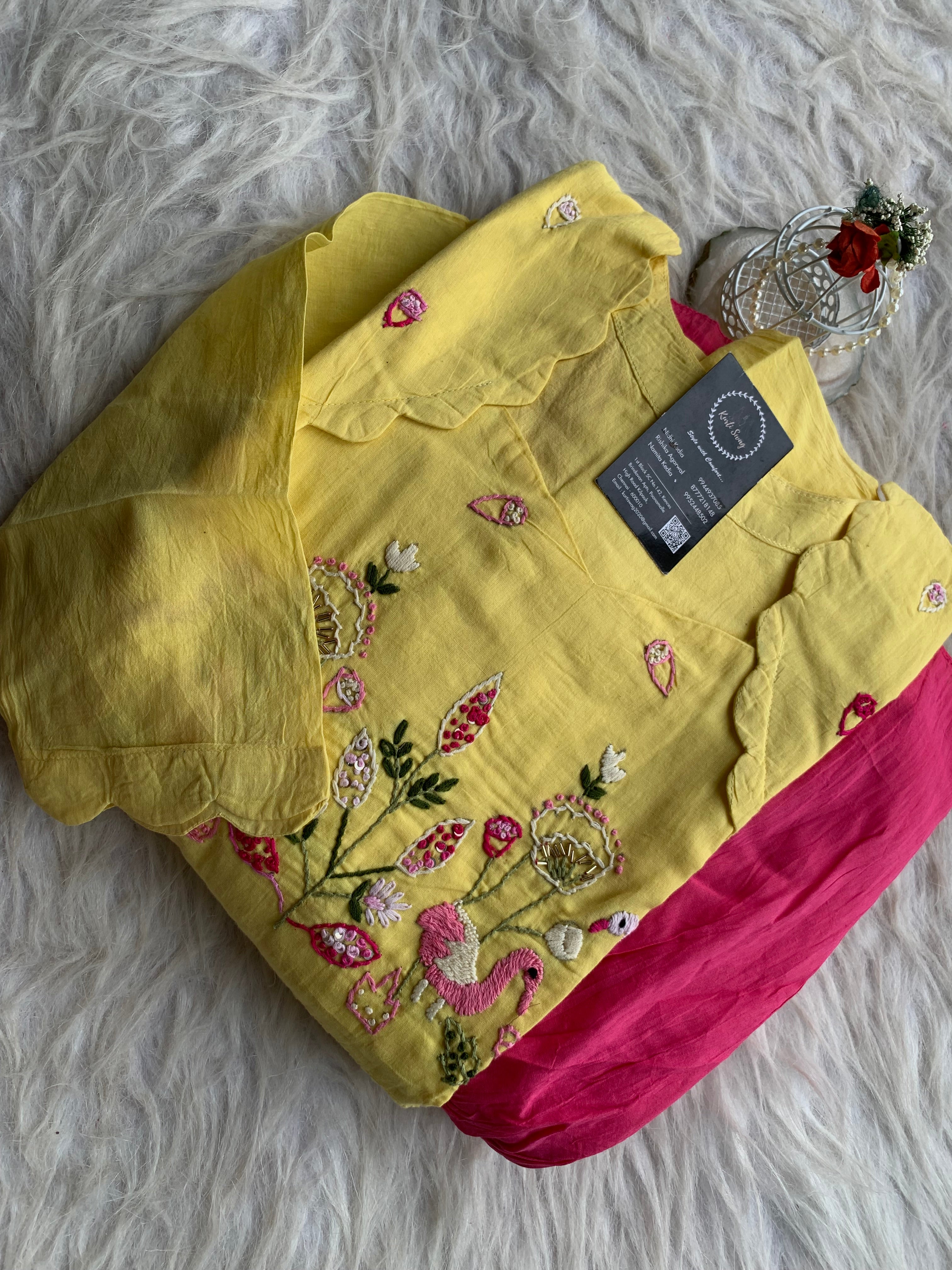 ✅ Mul Cotton Ombre Shaded Kurti With Thread Hand Embroidery On The Yoke Of The Kurti