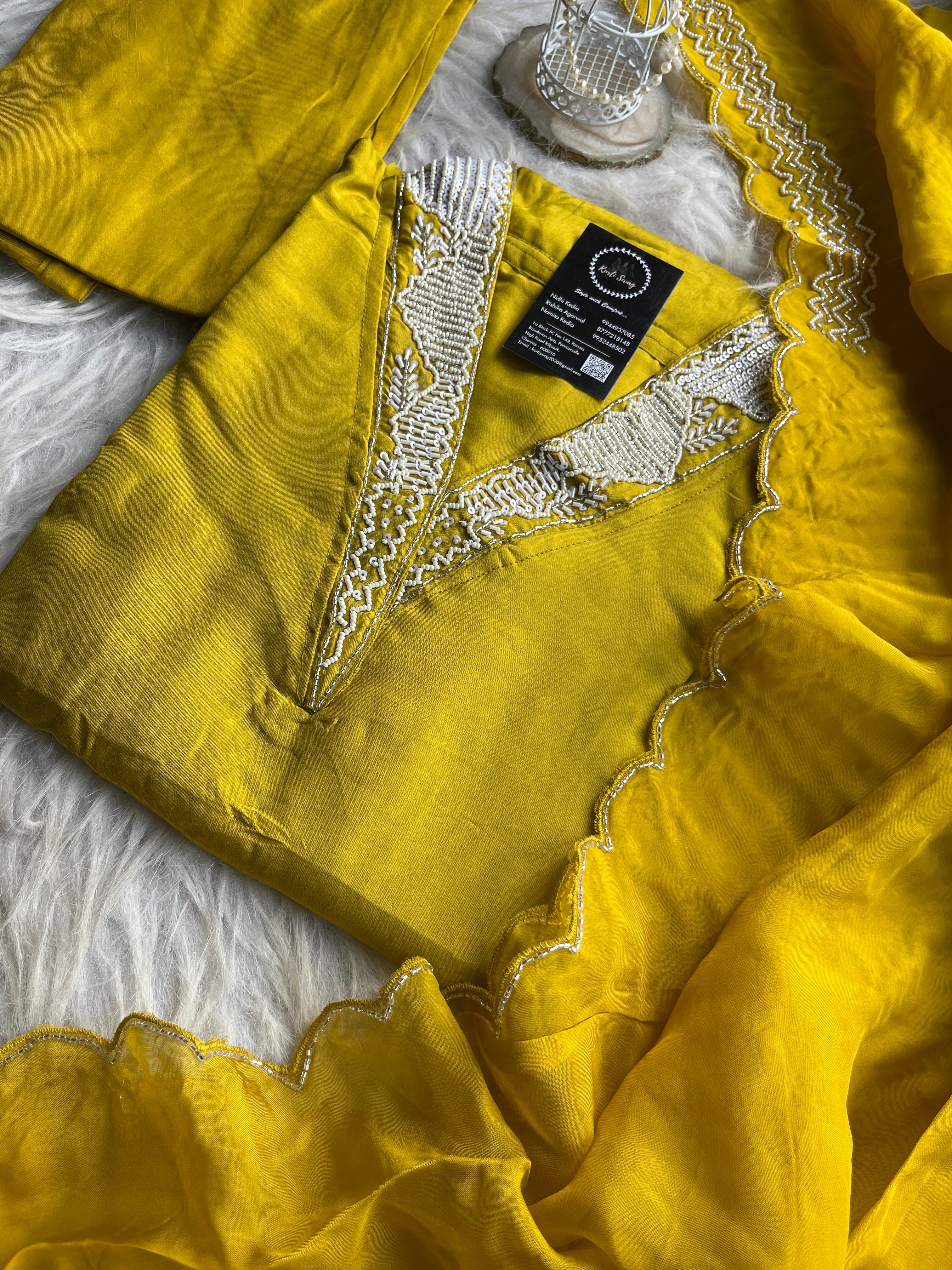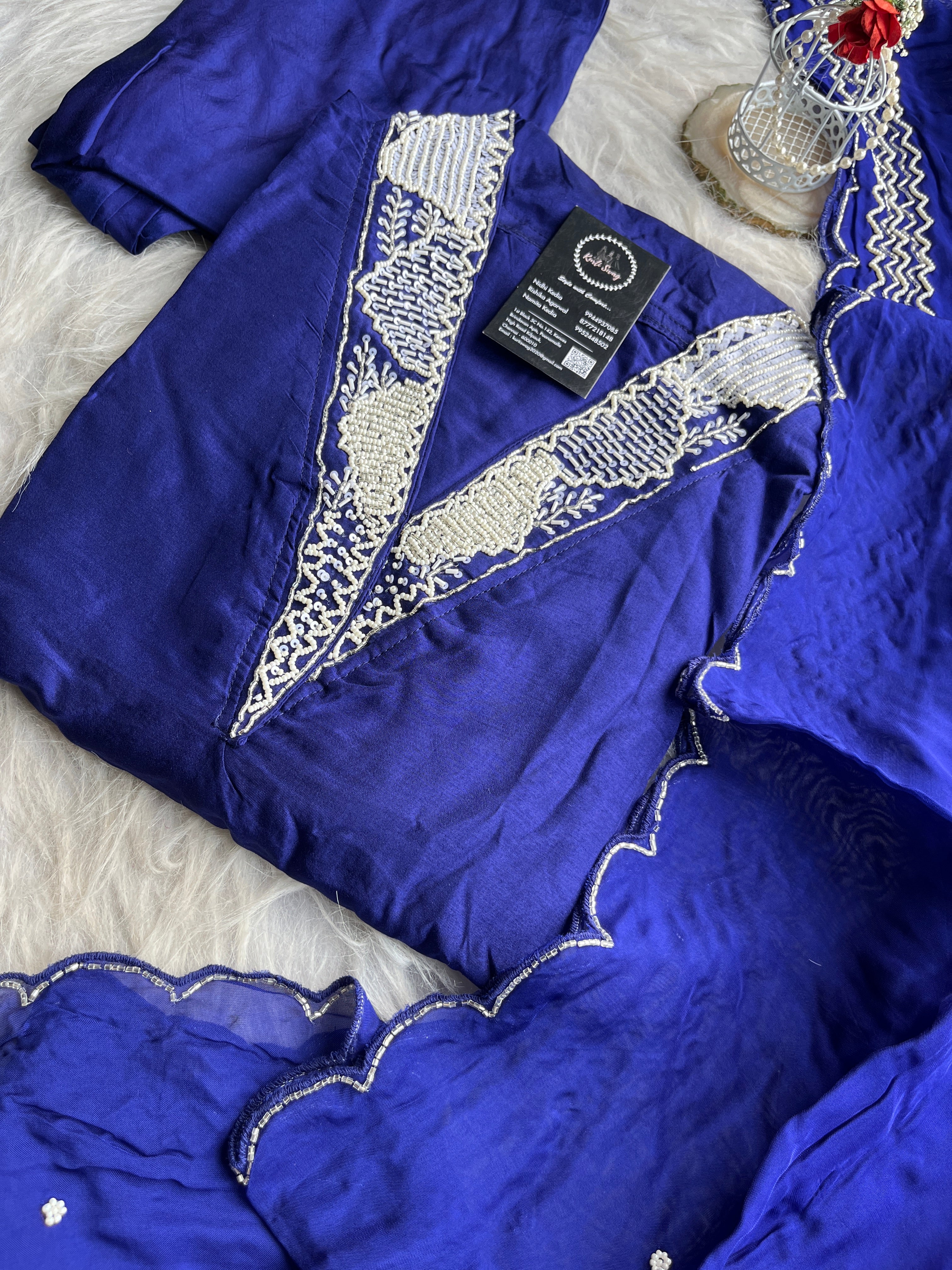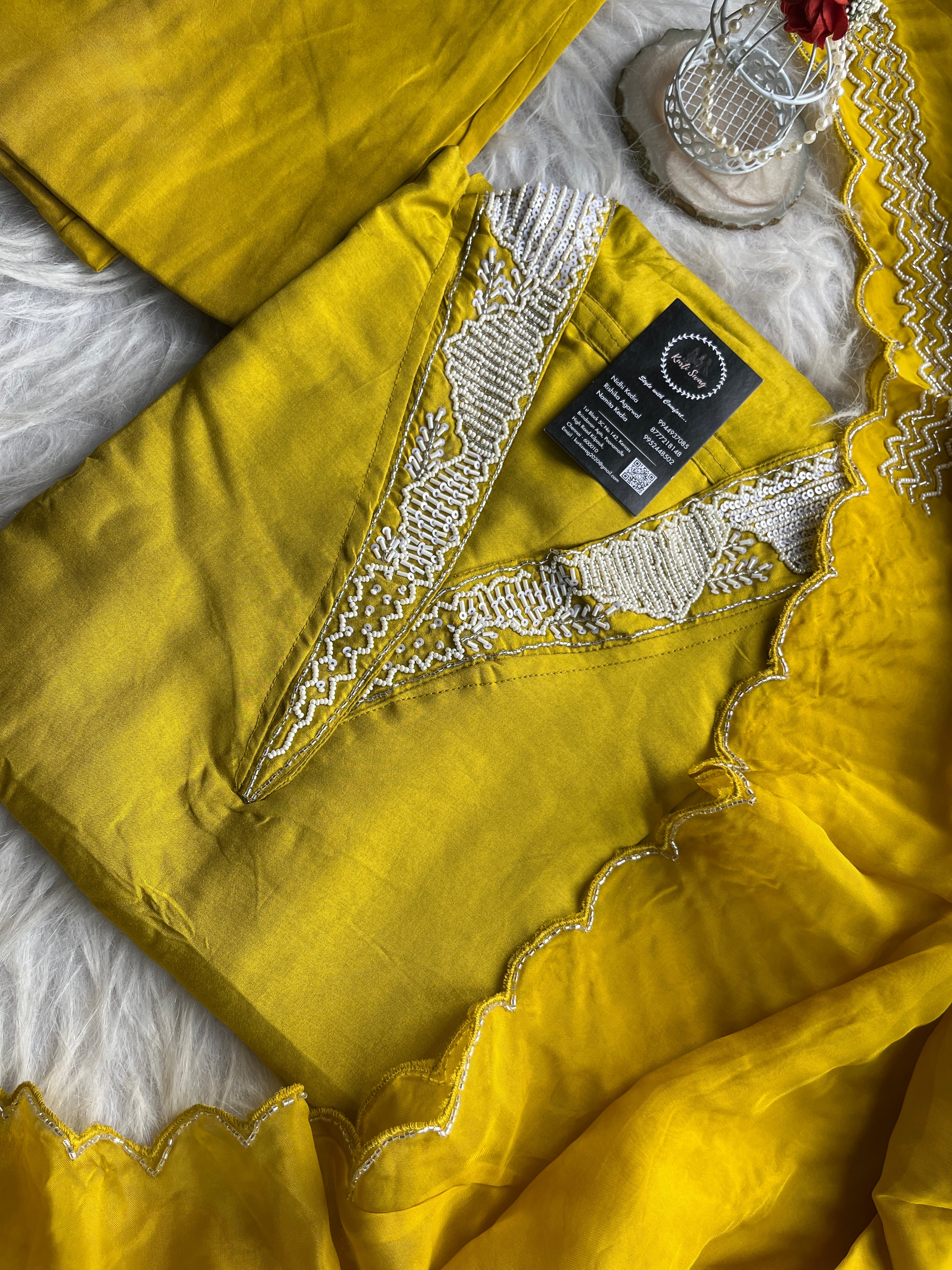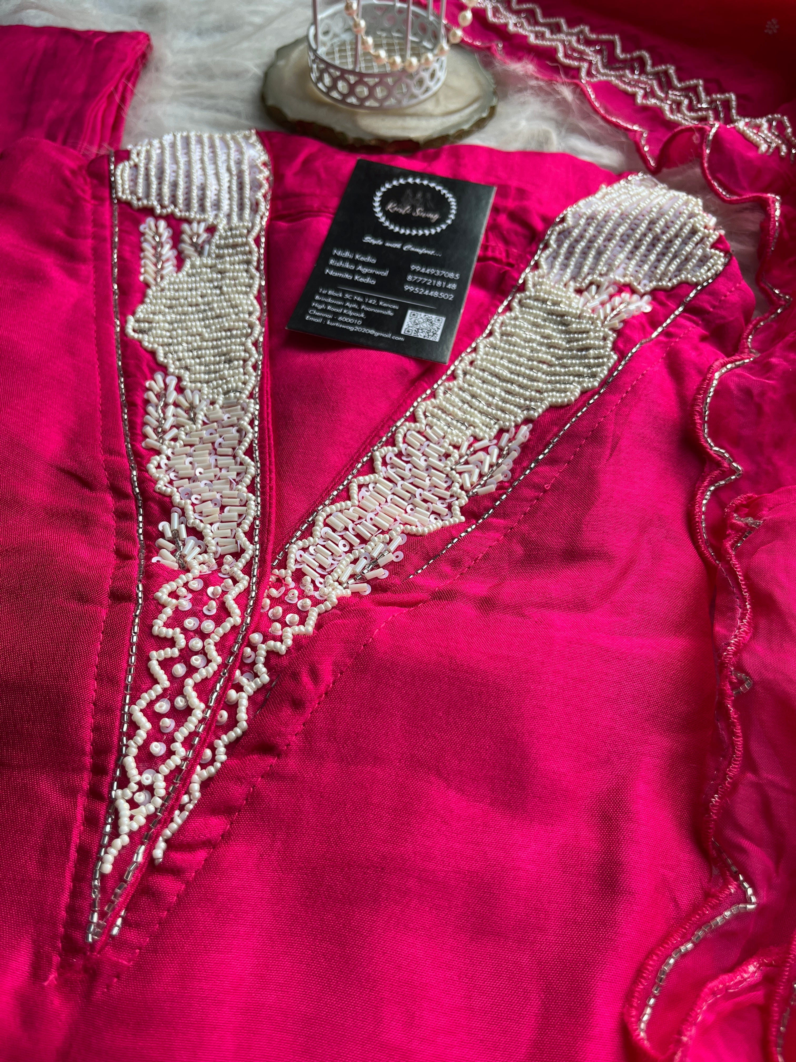 “PEARLS” Dola Silk Pearl Embellished Suit Set With Organza Dupatta ✨💕