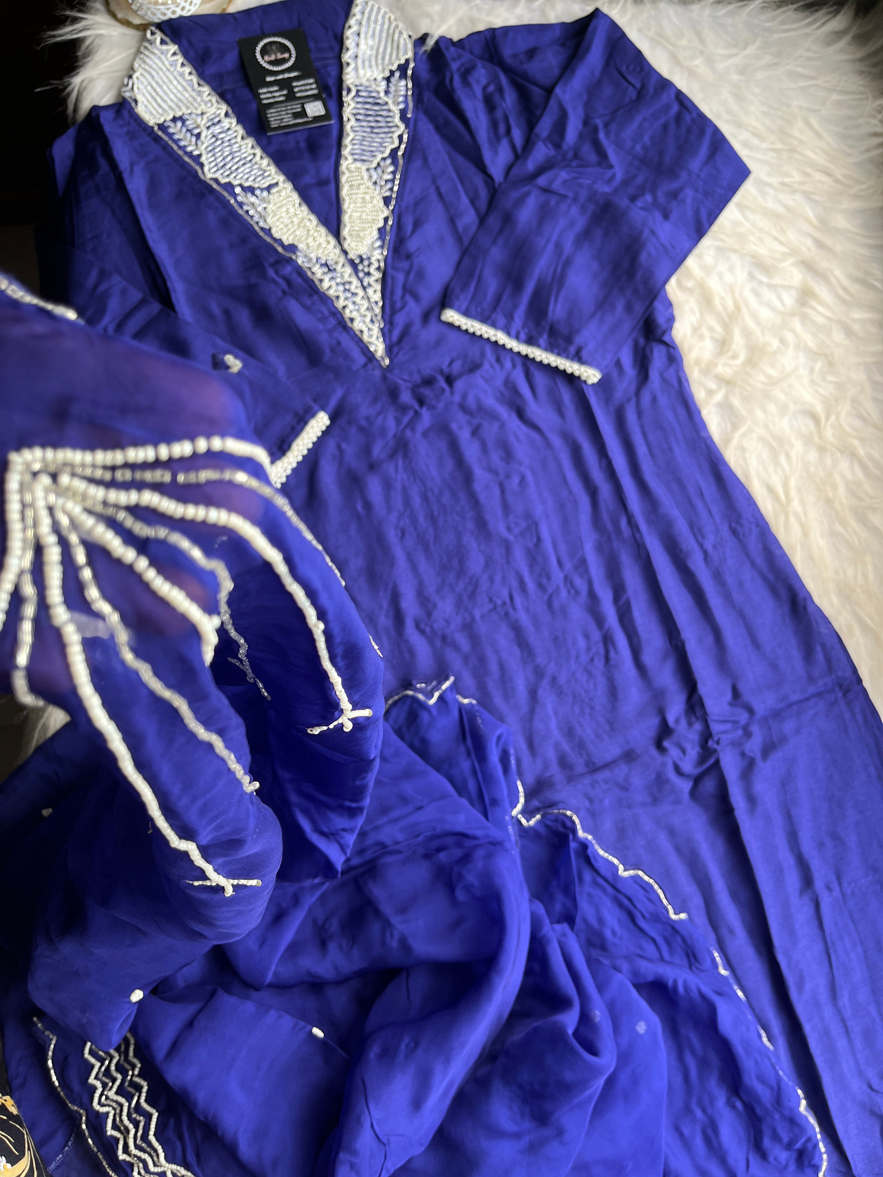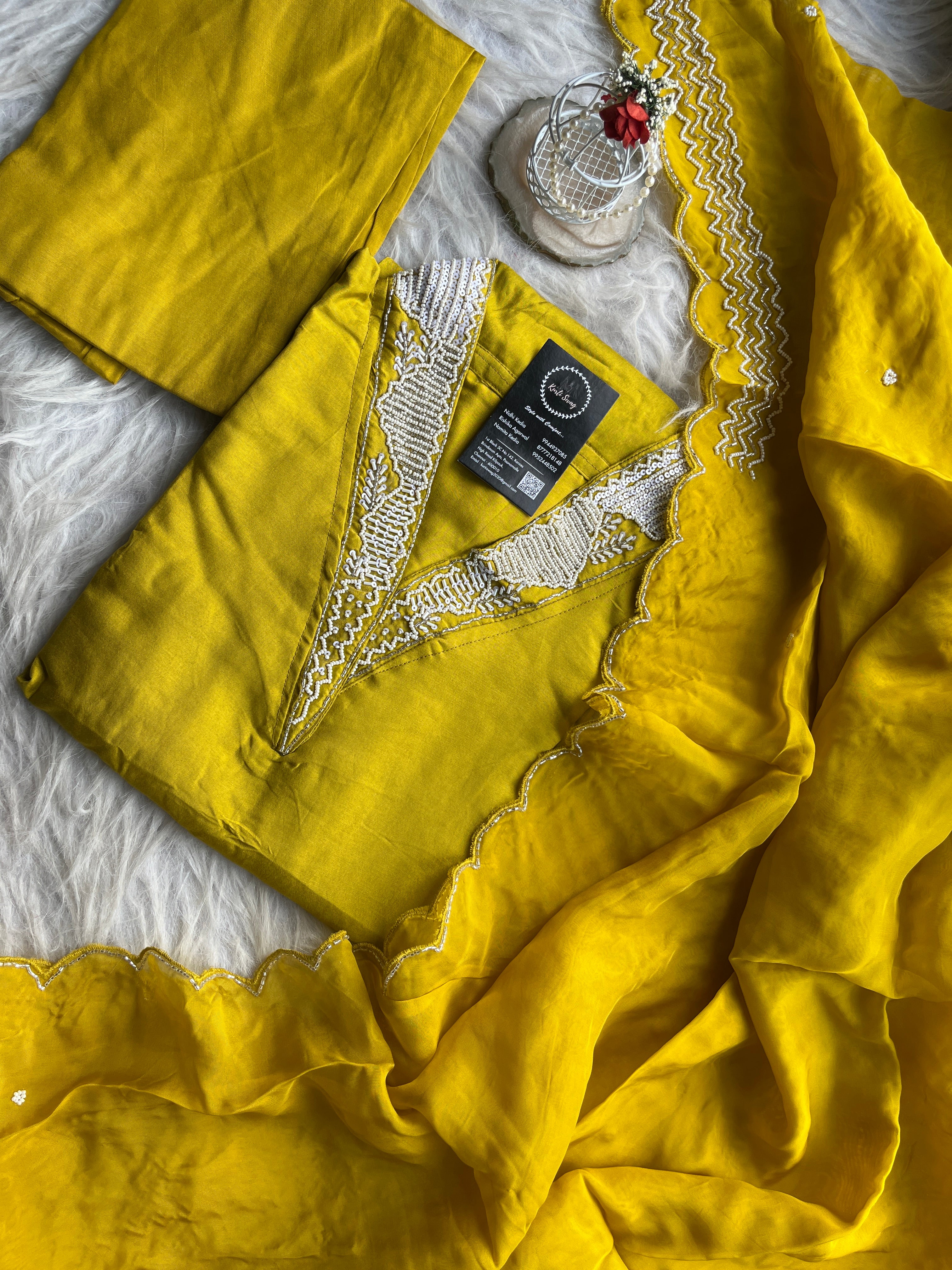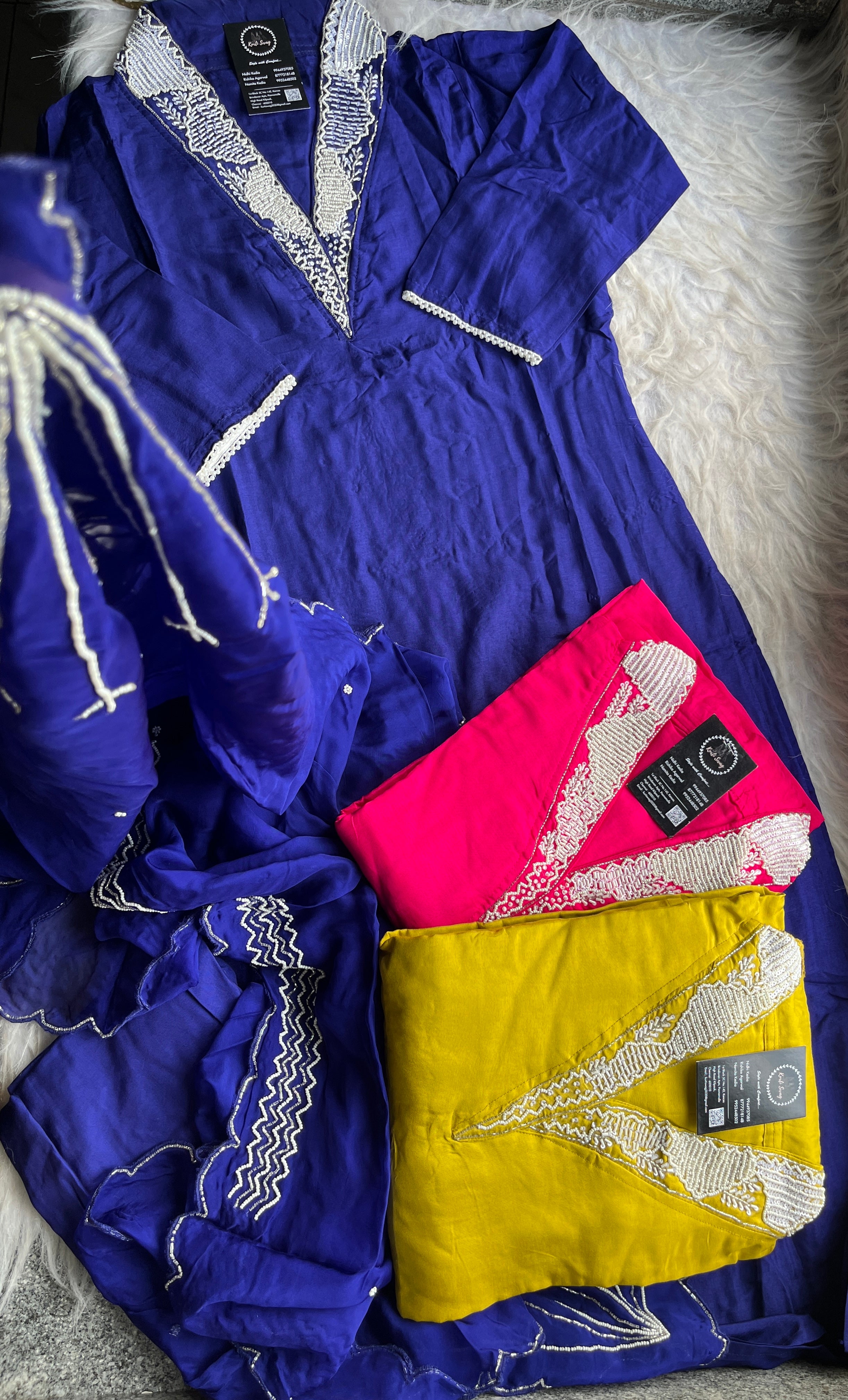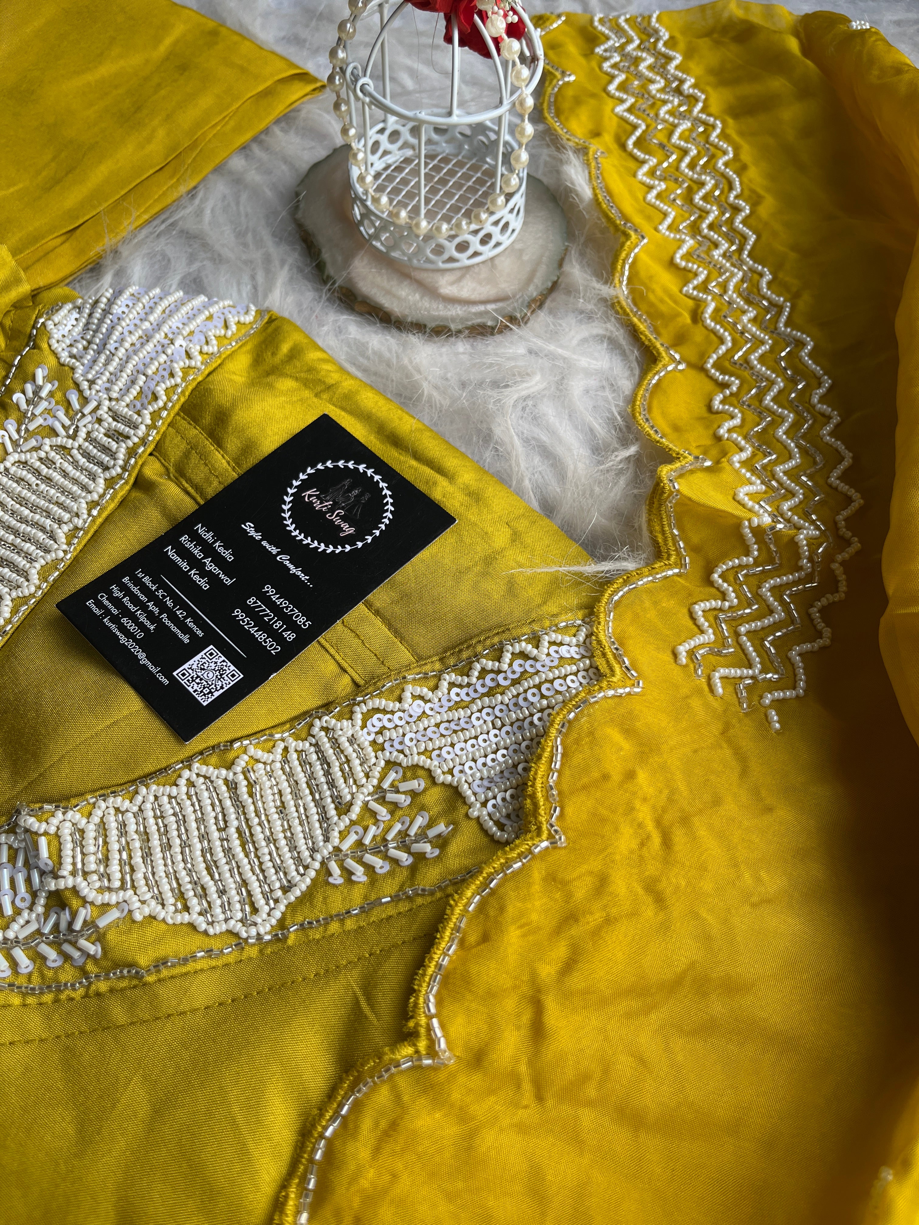 “PEARLS” Dola Silk Pearl Embellished Suit Set With Organza Dupatta ✨💕