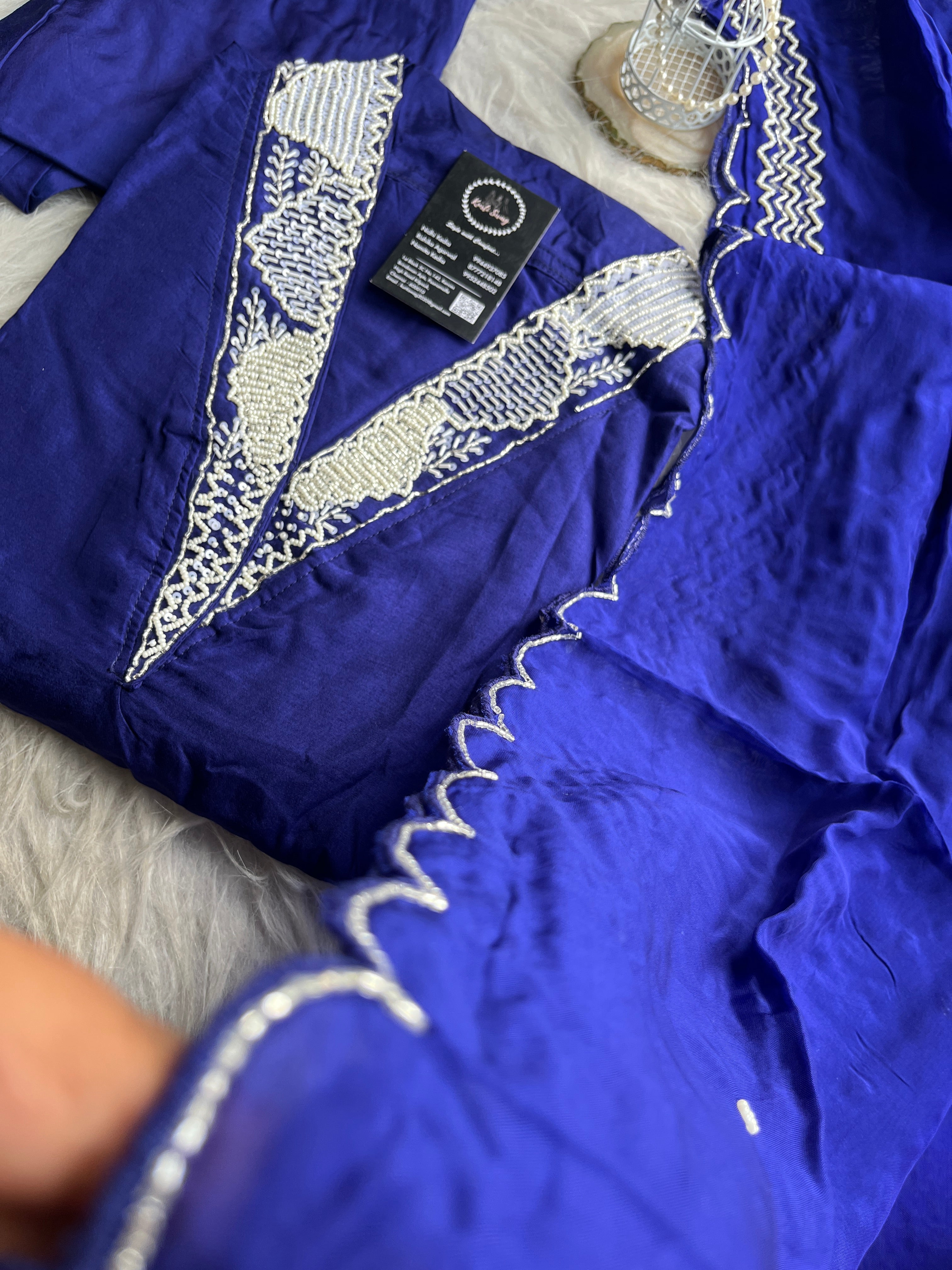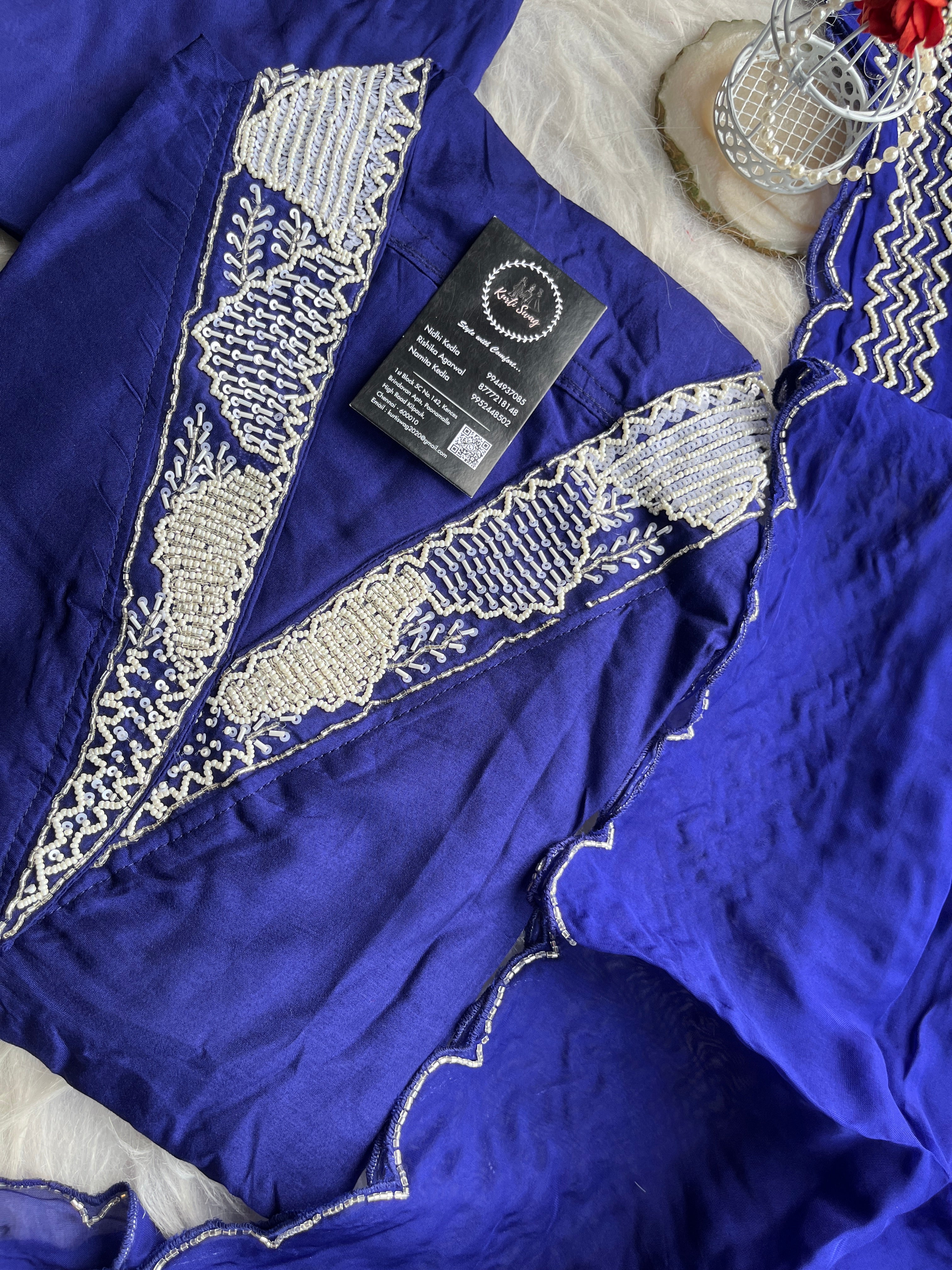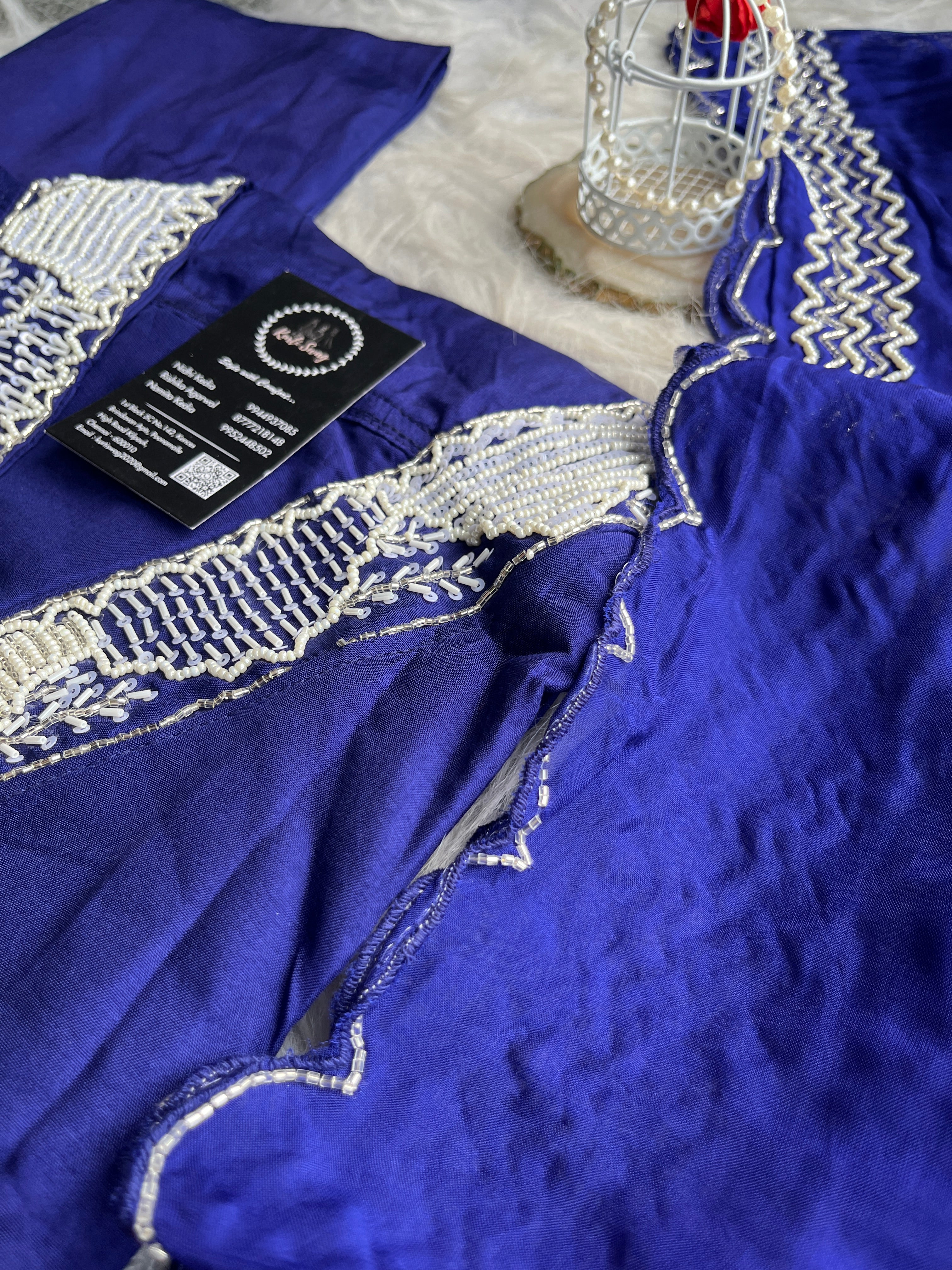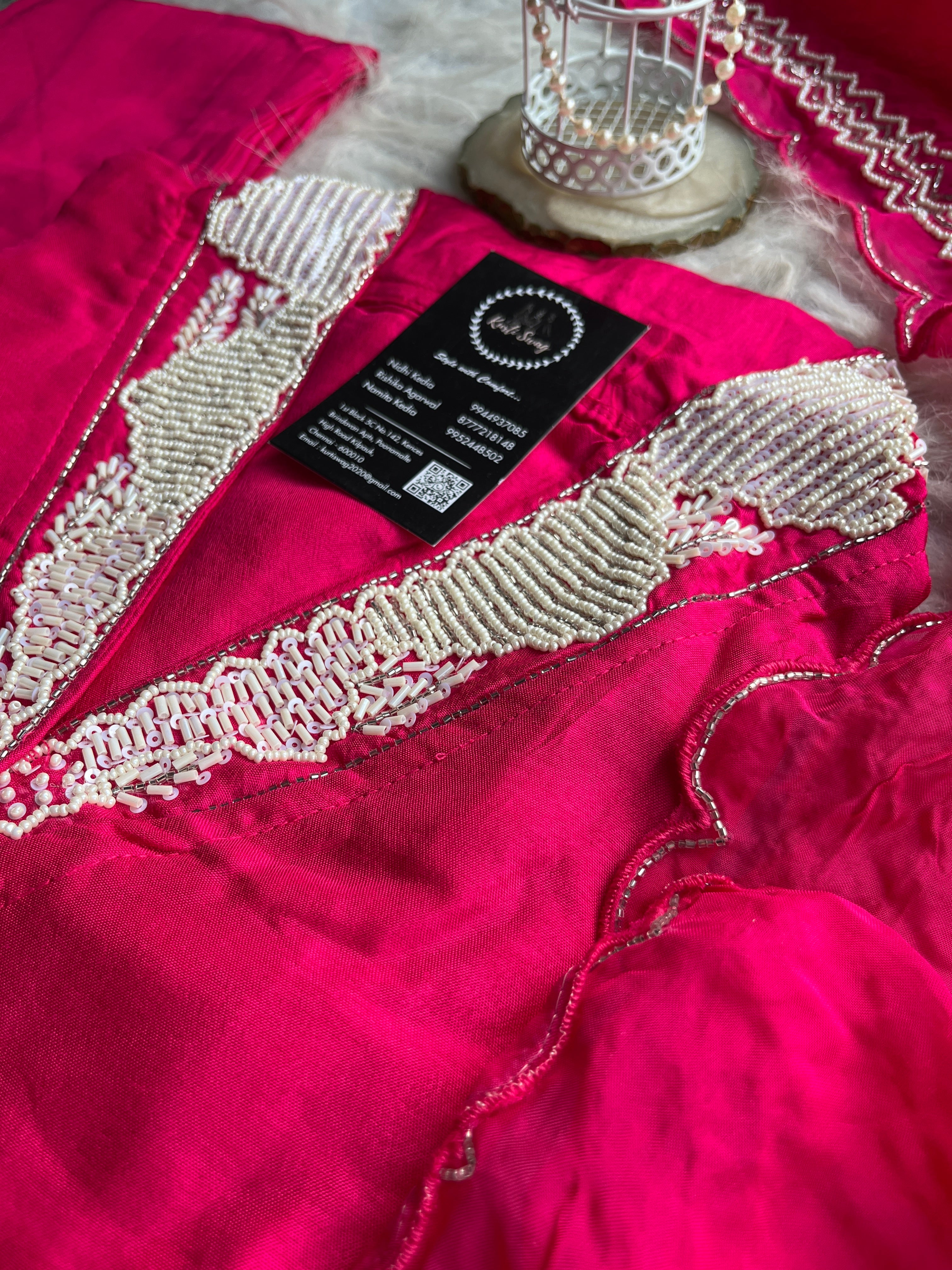 ✅ Dola Silk Kurti With Premium Pearl Hand Work On The Neckline.