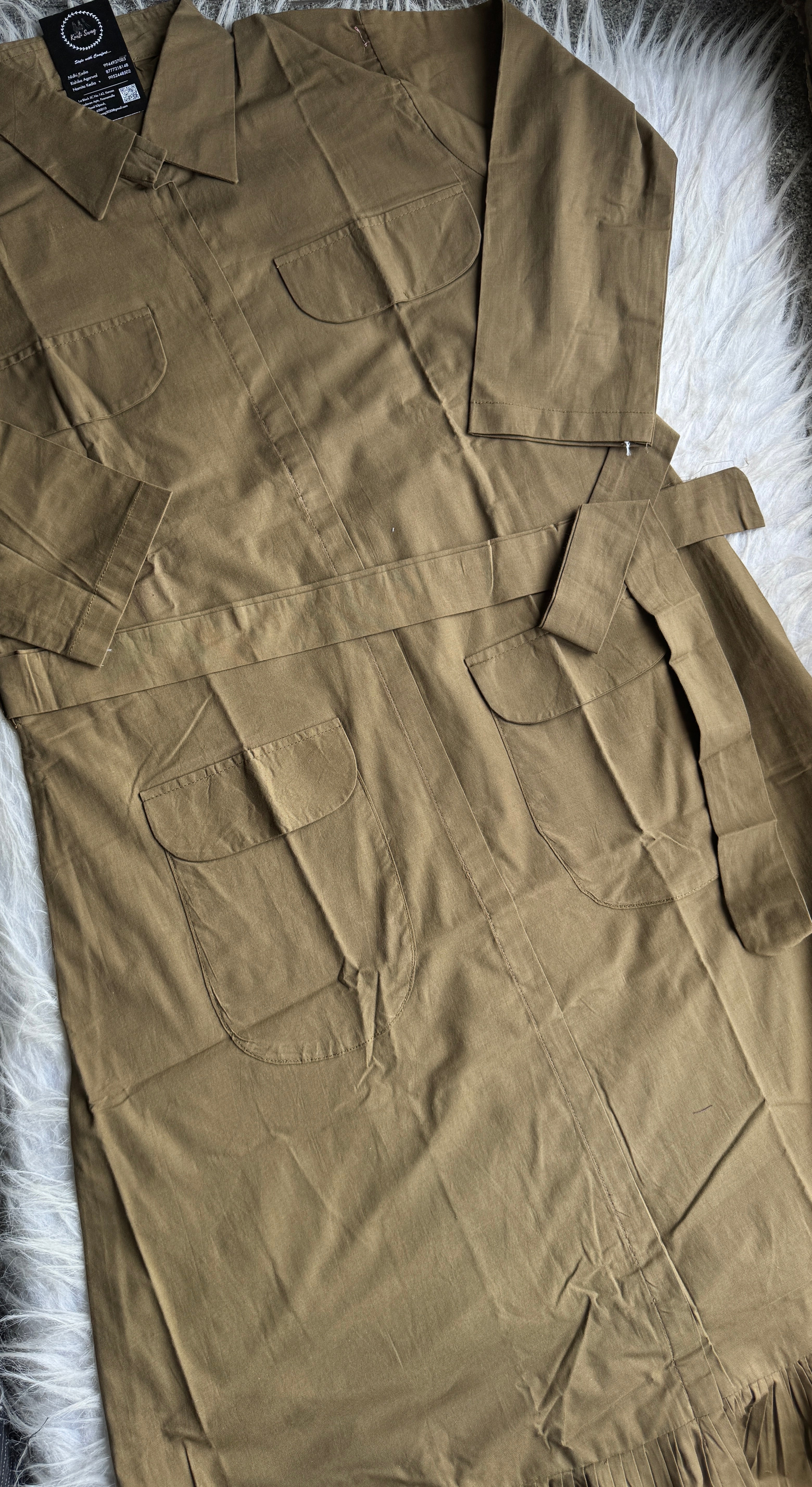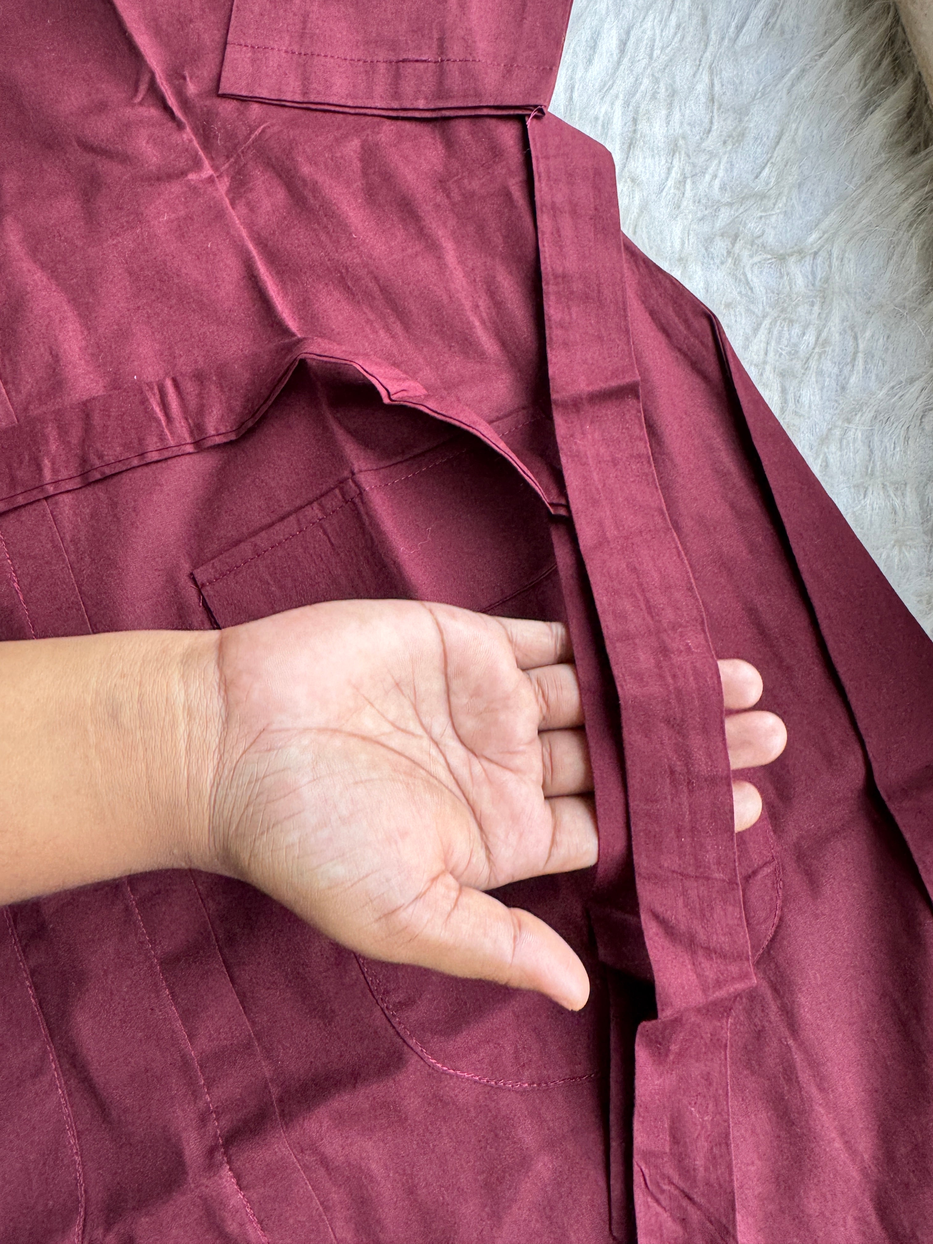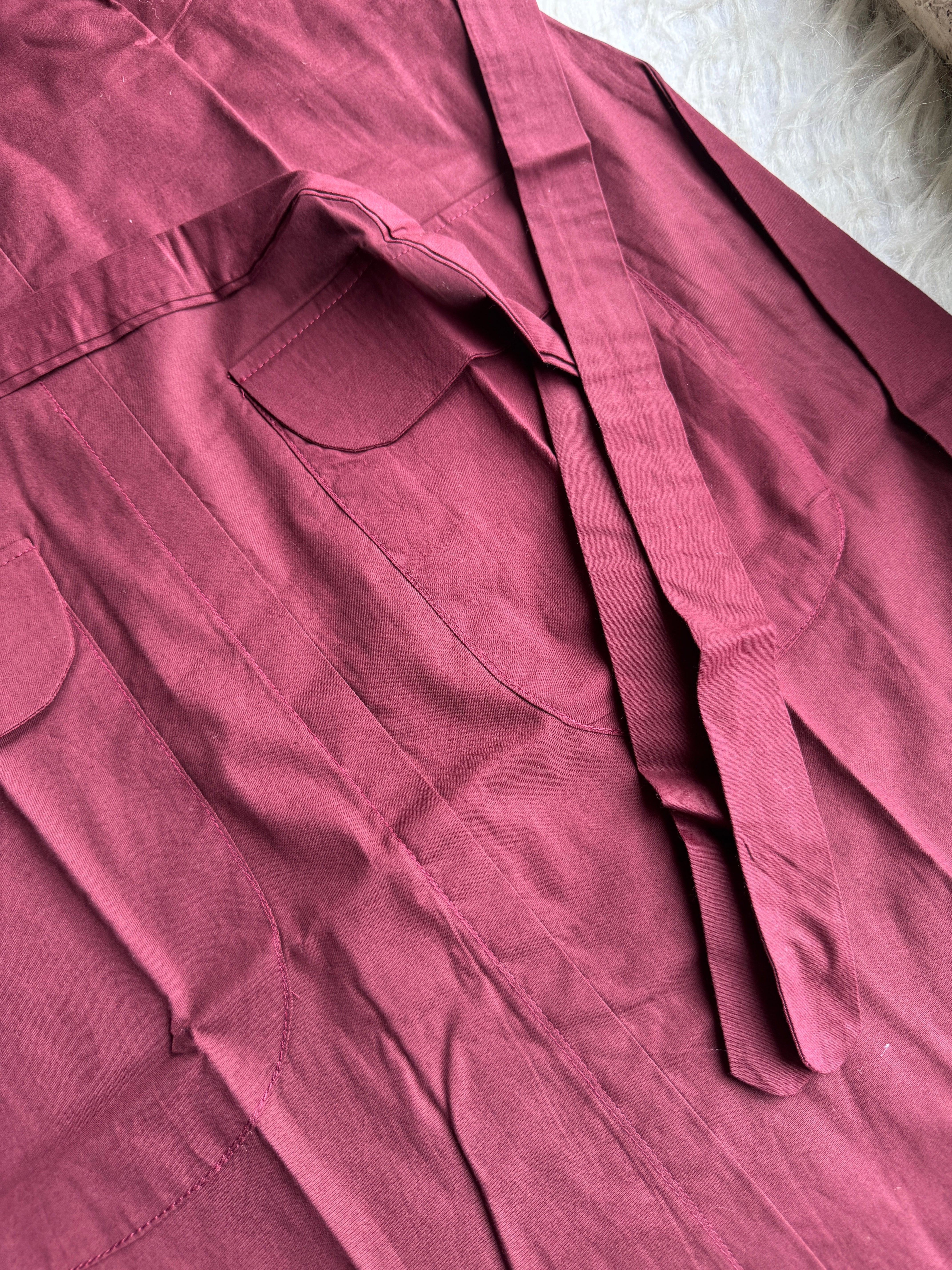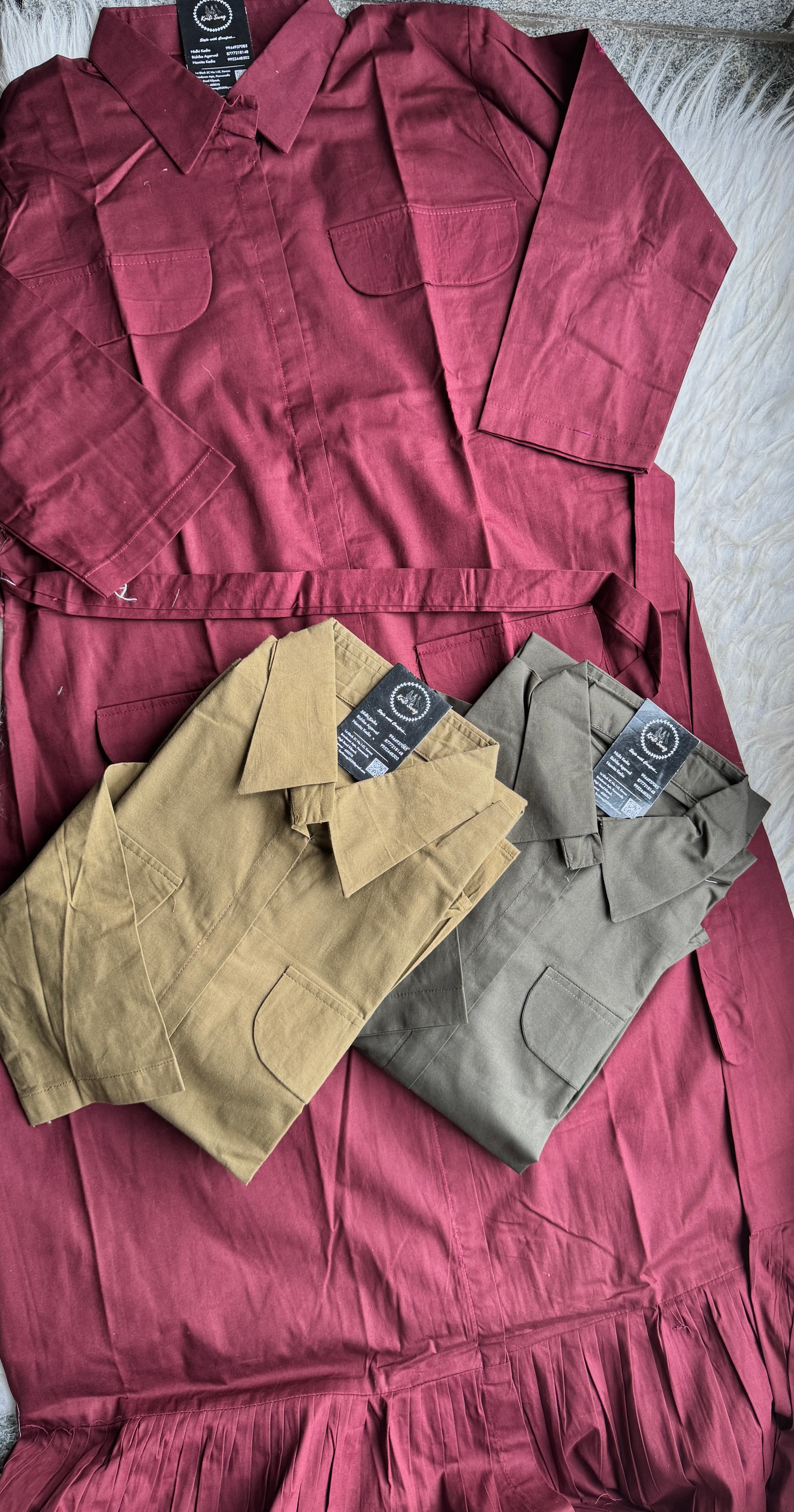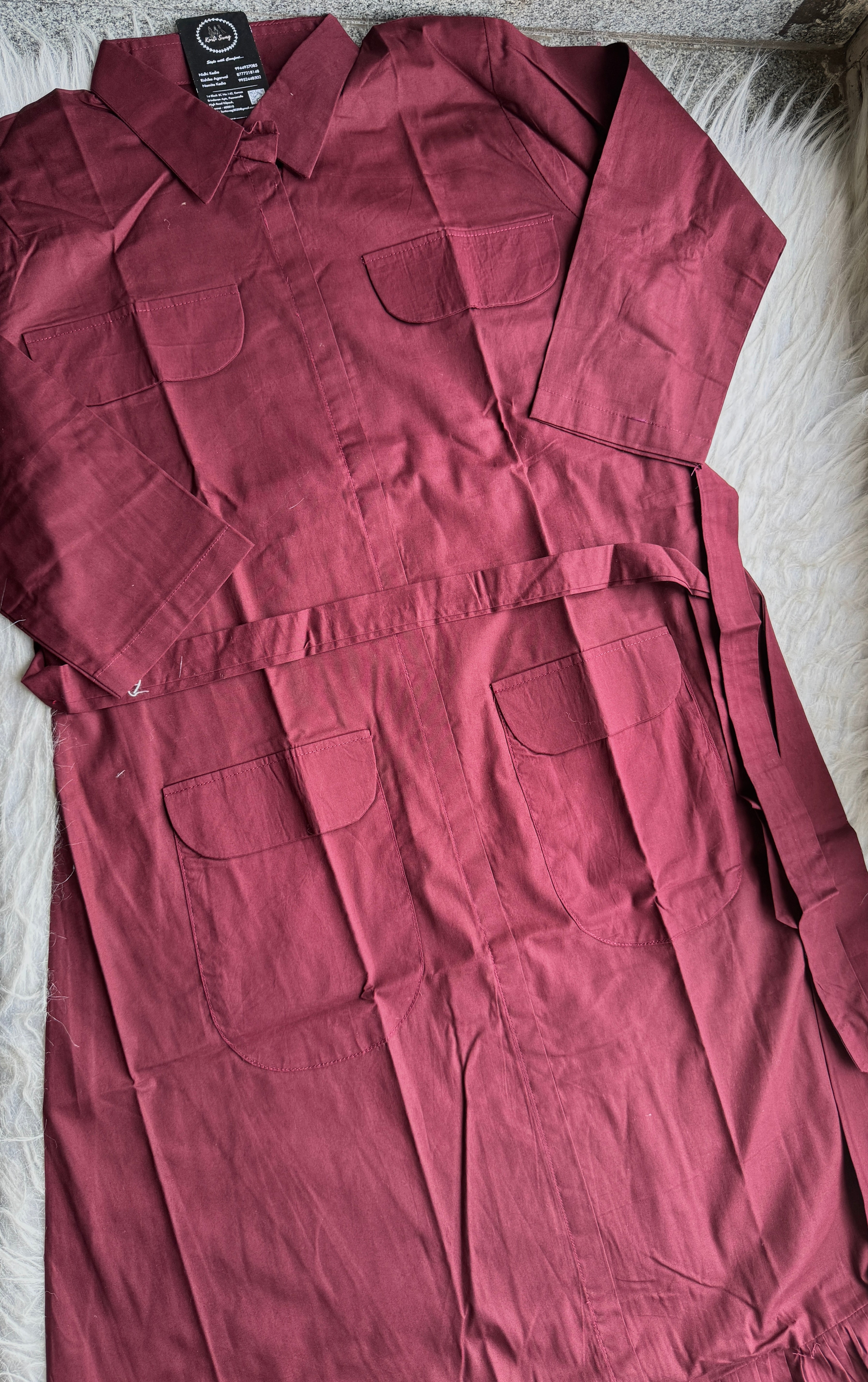 ✅ Pure Cotton Collar Neck A Line Kurta With Front Pocket & A Belt
