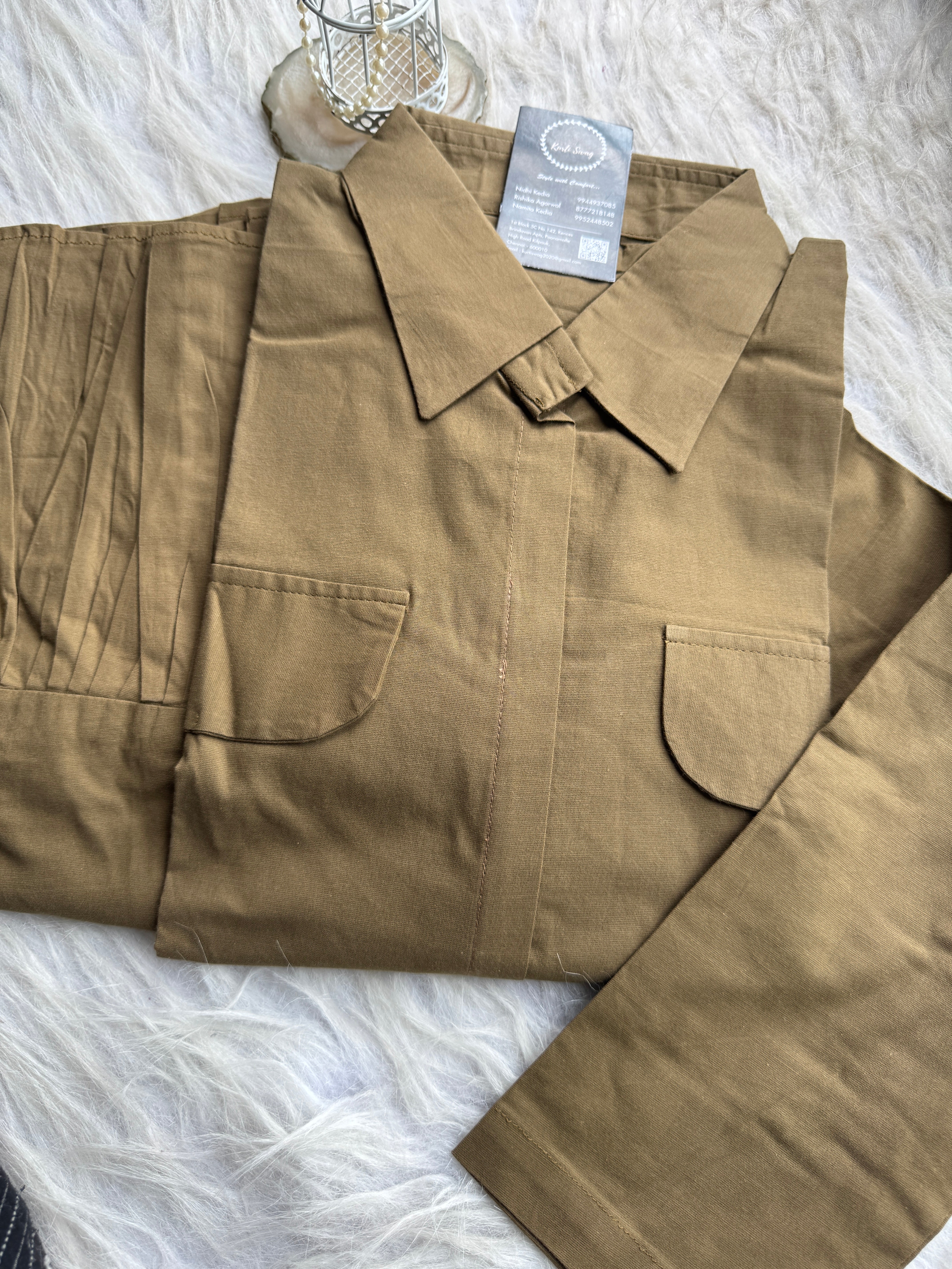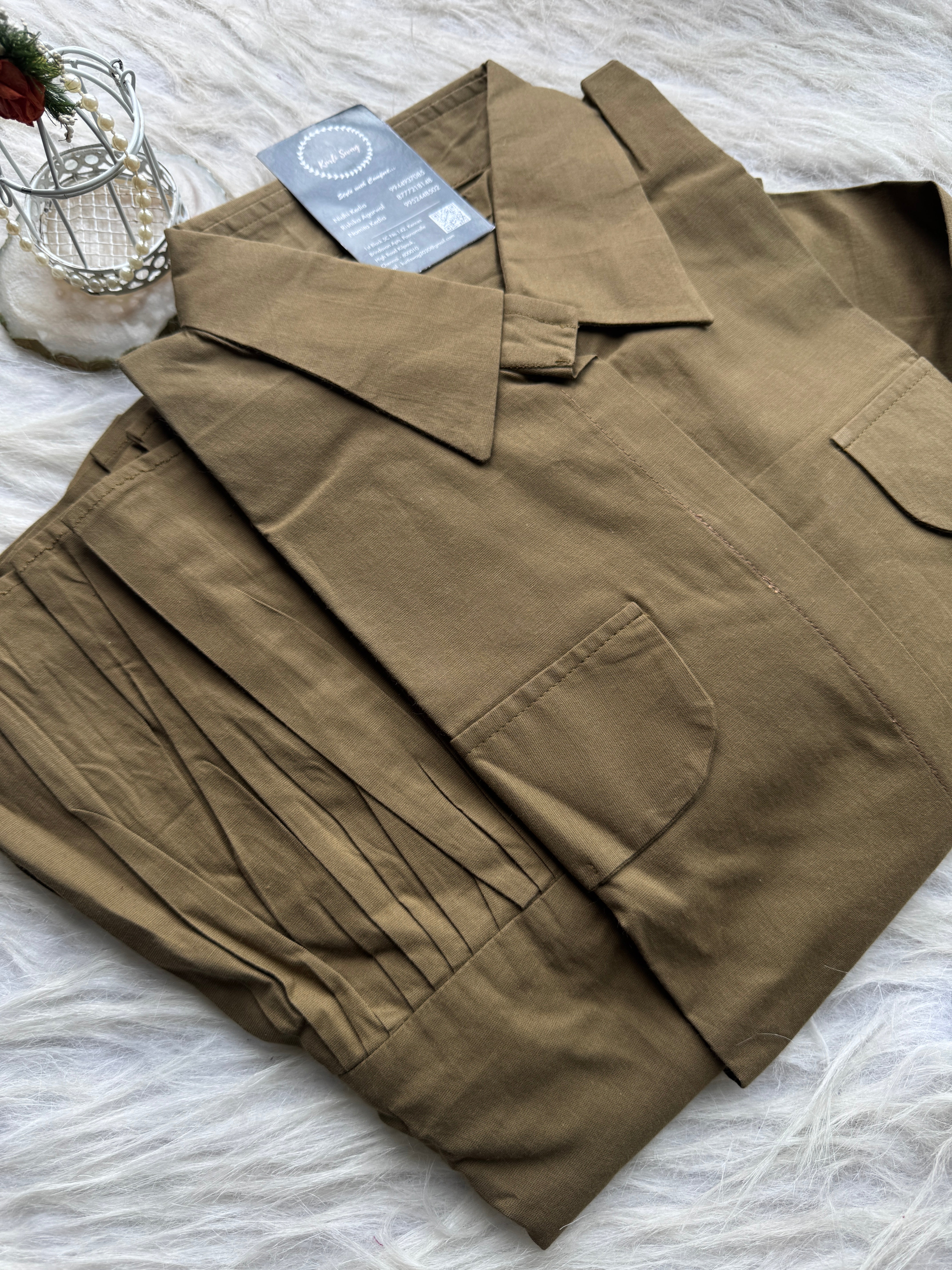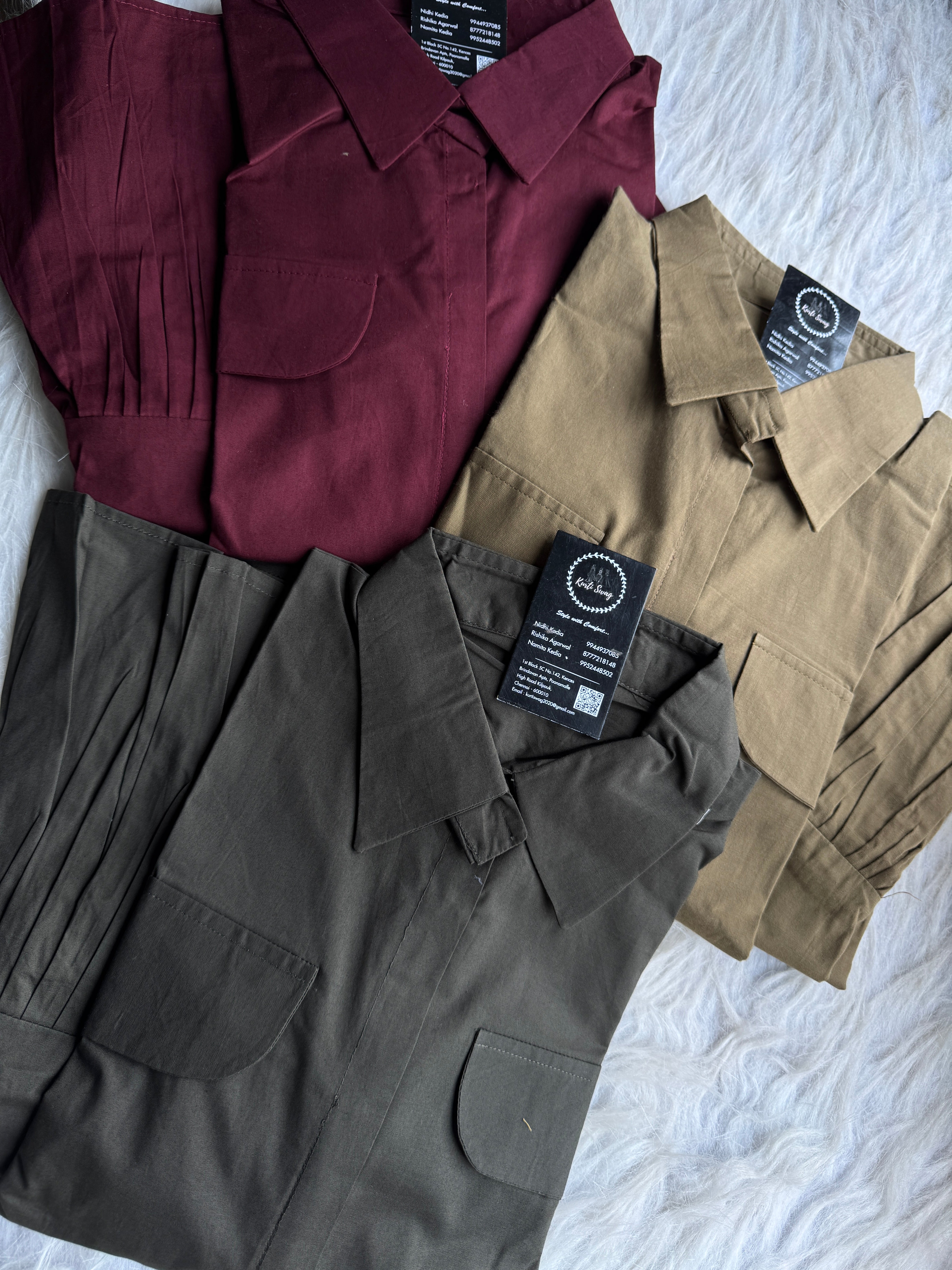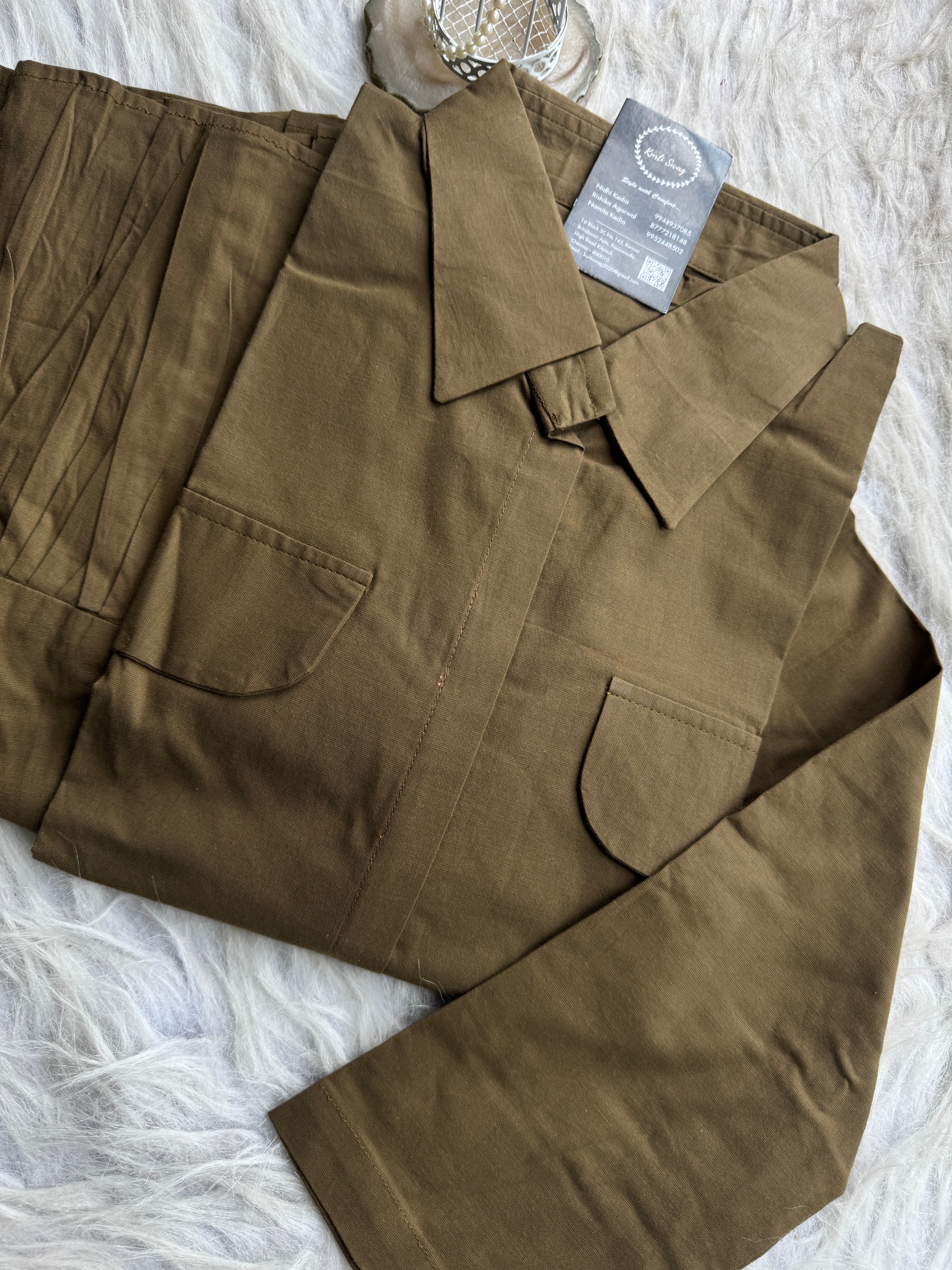 ✅ Pure Cotton Collar Neck A Line Kurta With Front Pocket & A Belt