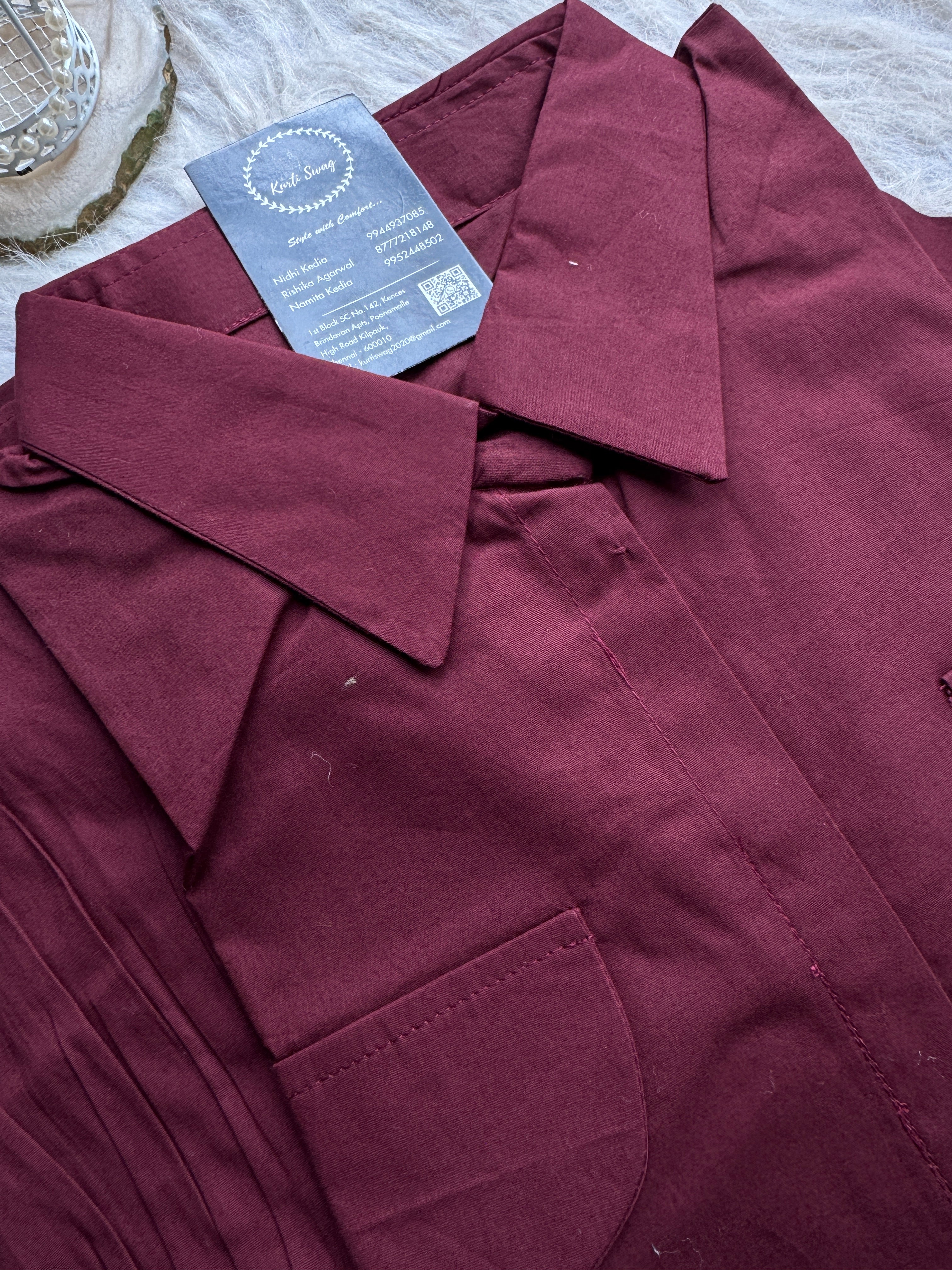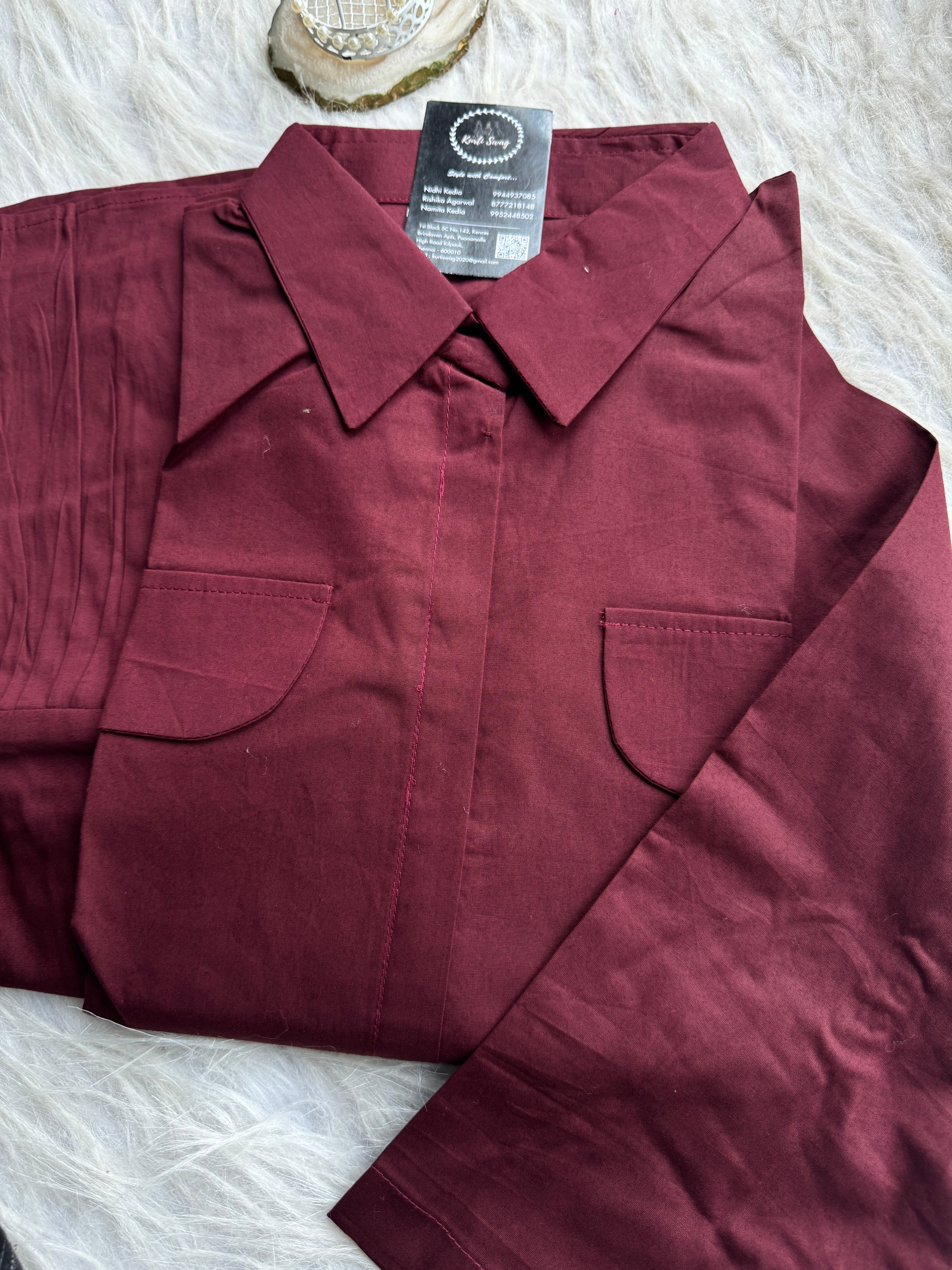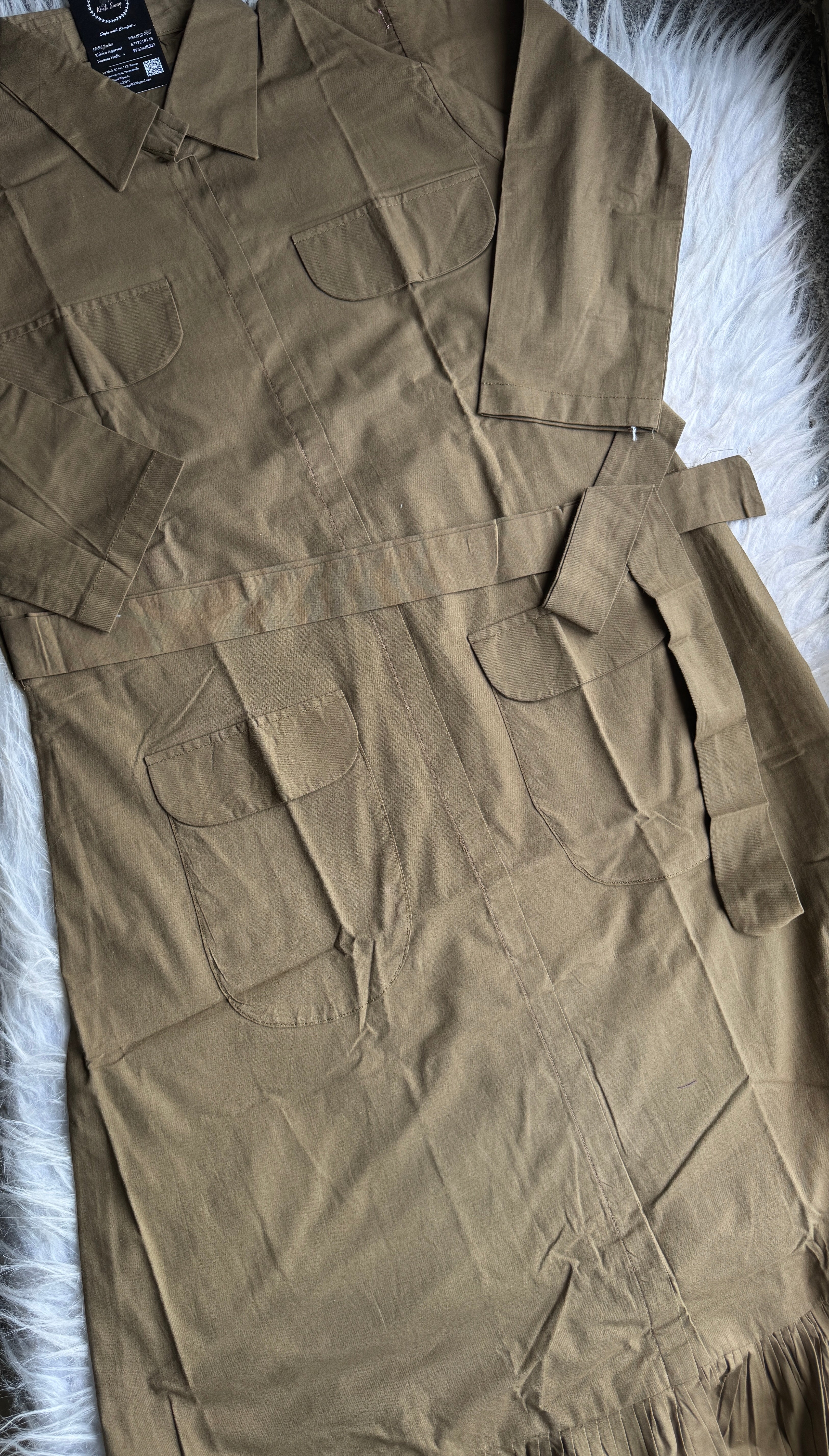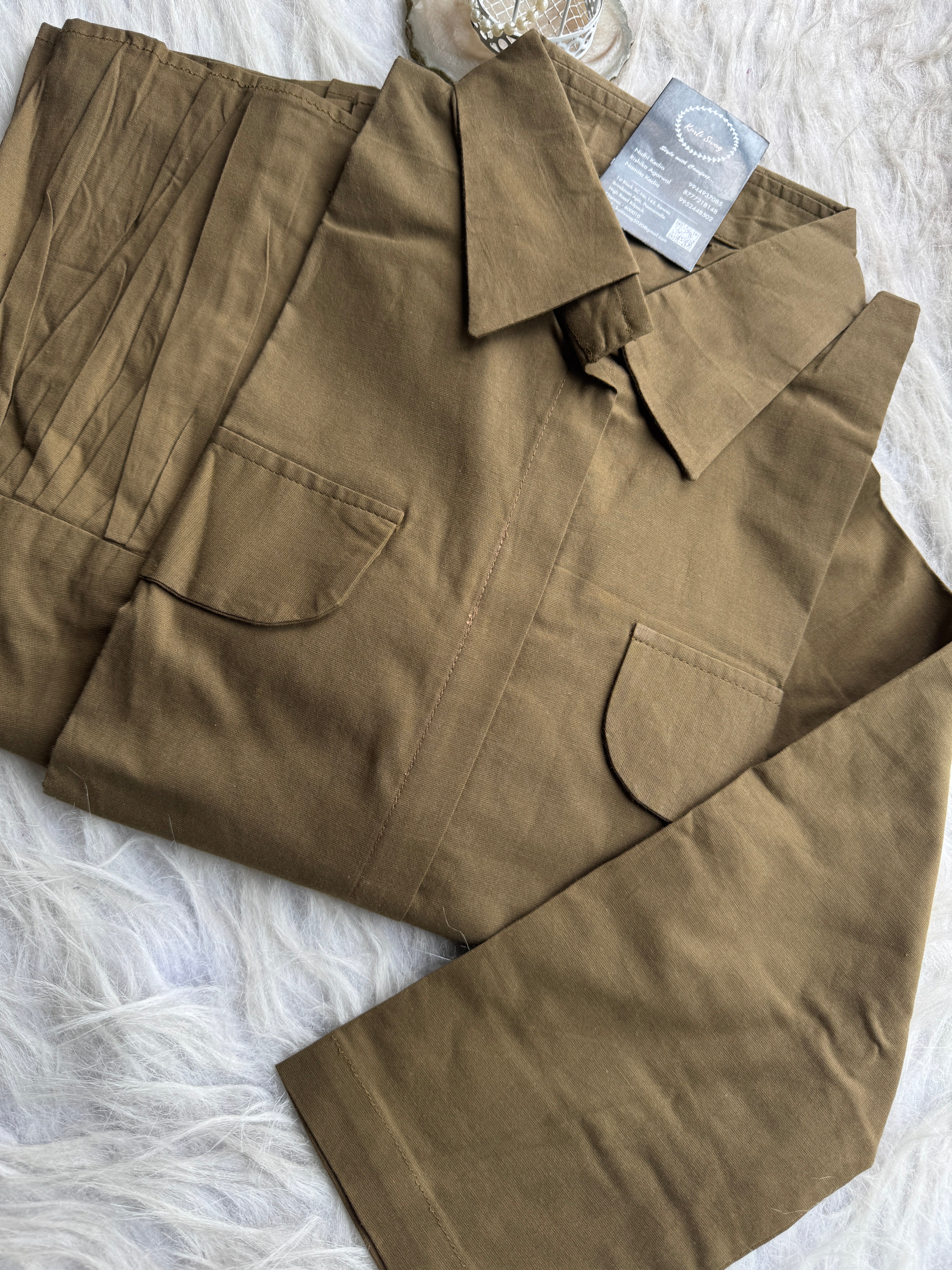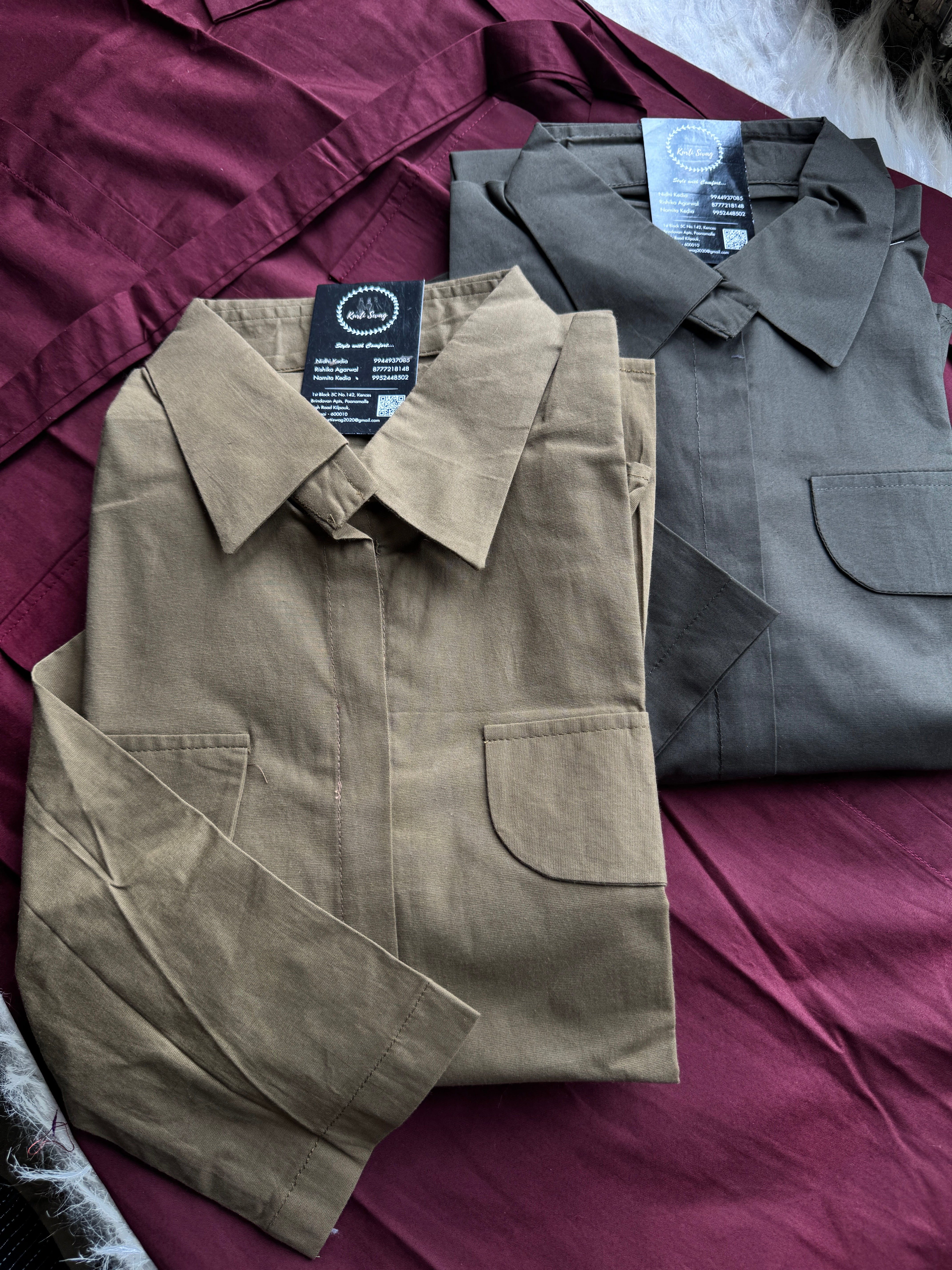 ✅ Pure Cotton Collar Neck A Line Kurta With Front Pocket & A Belt