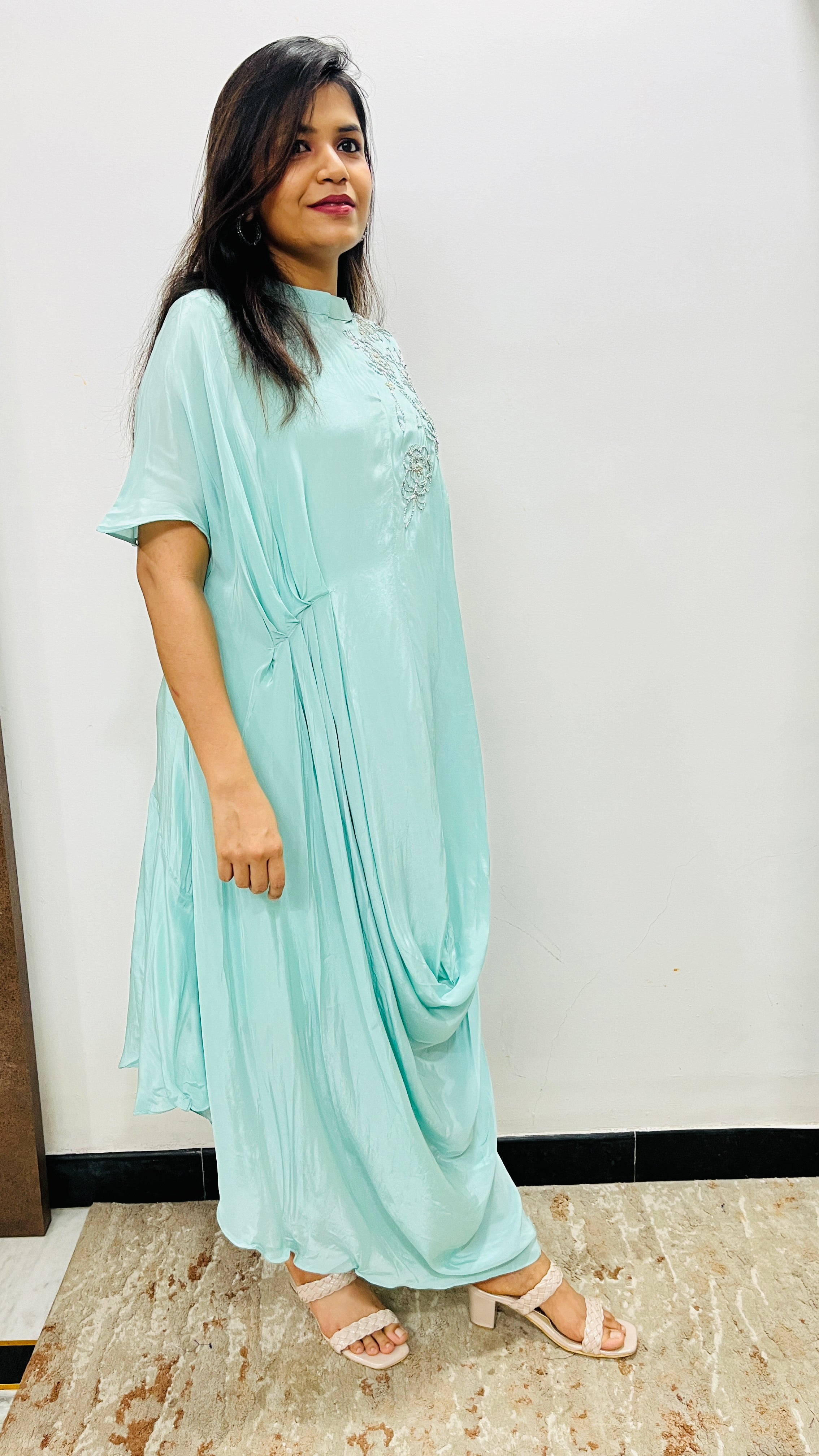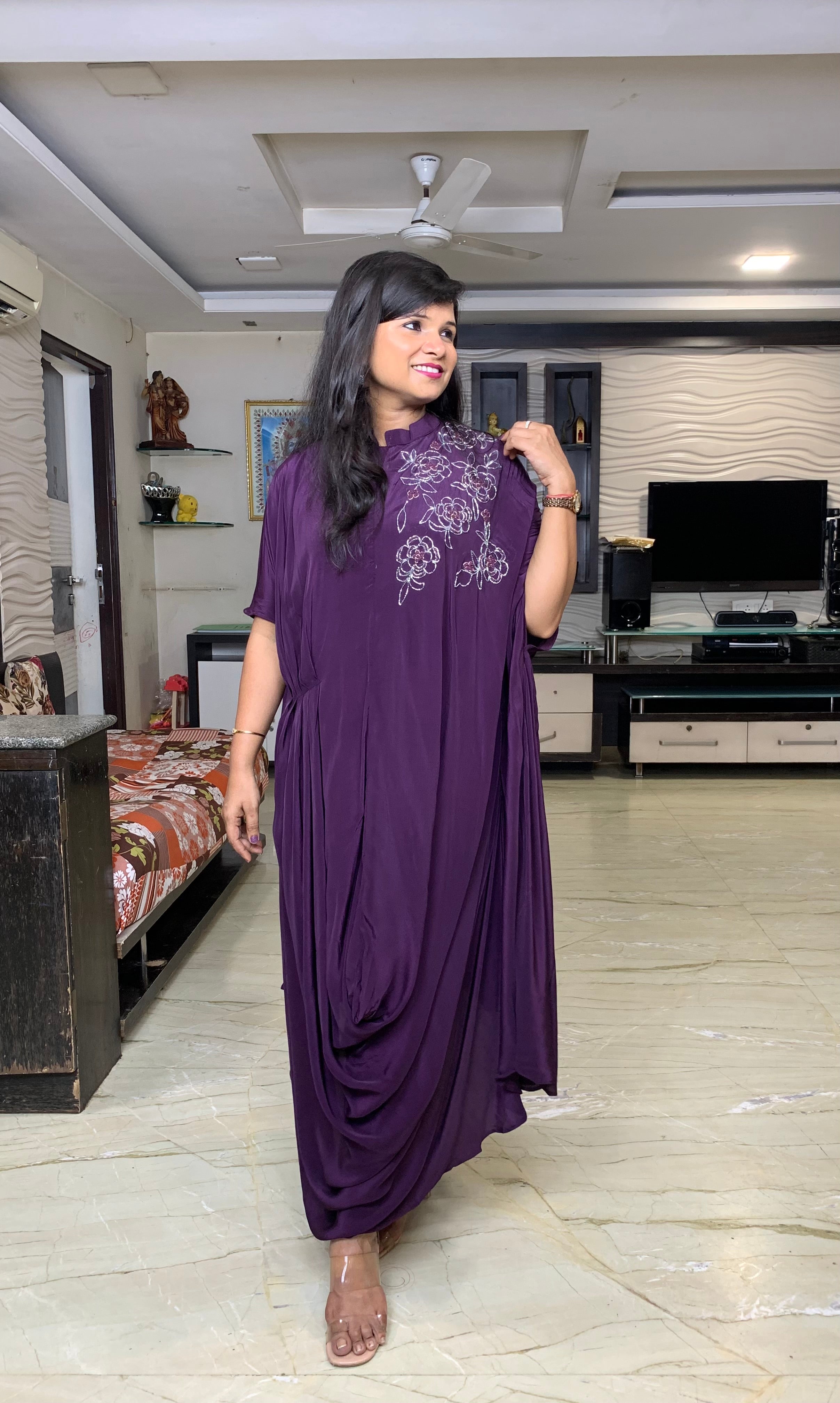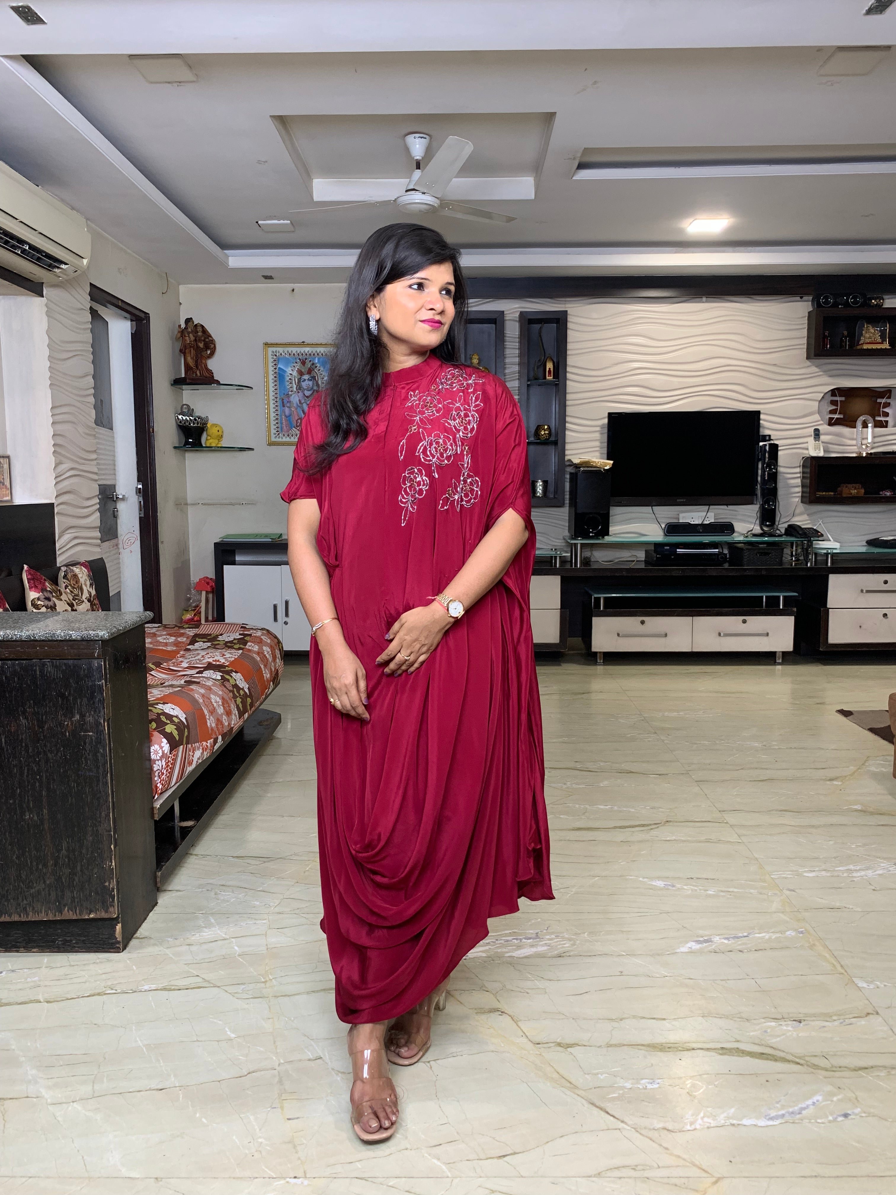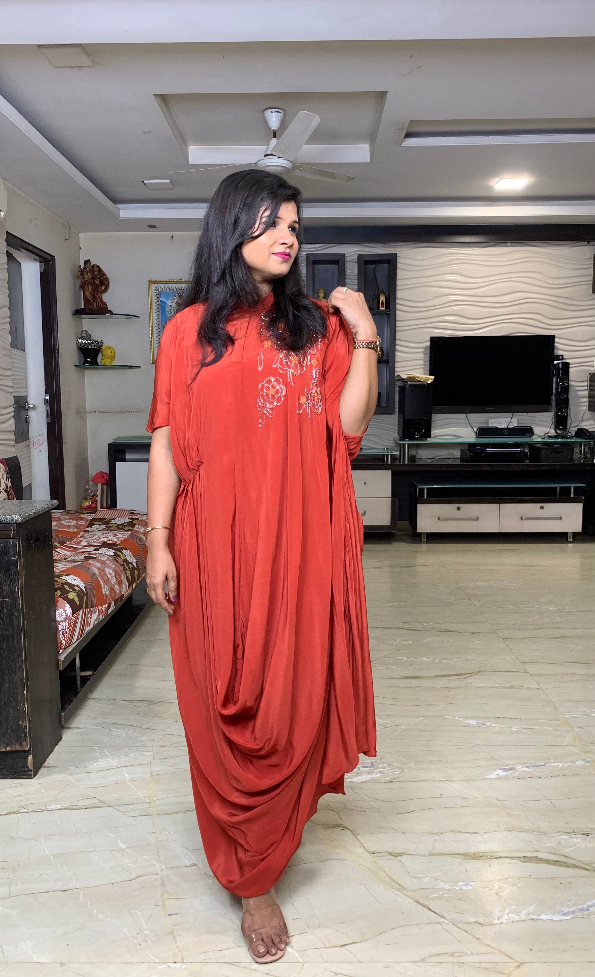 ✅Pure chinnon Indo western dress.