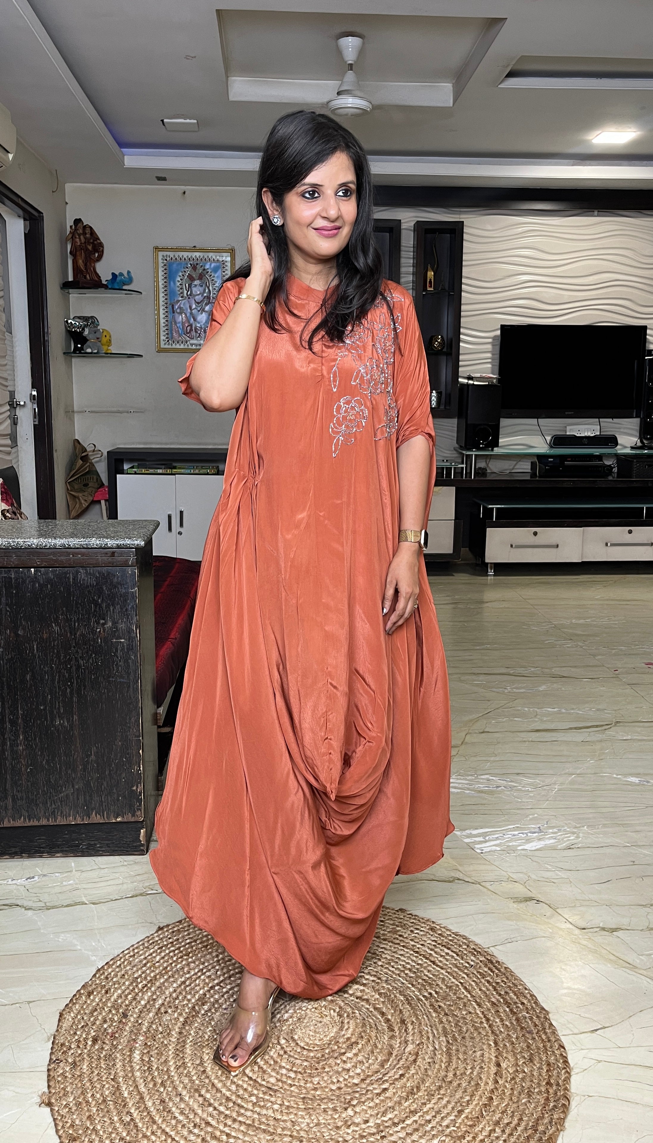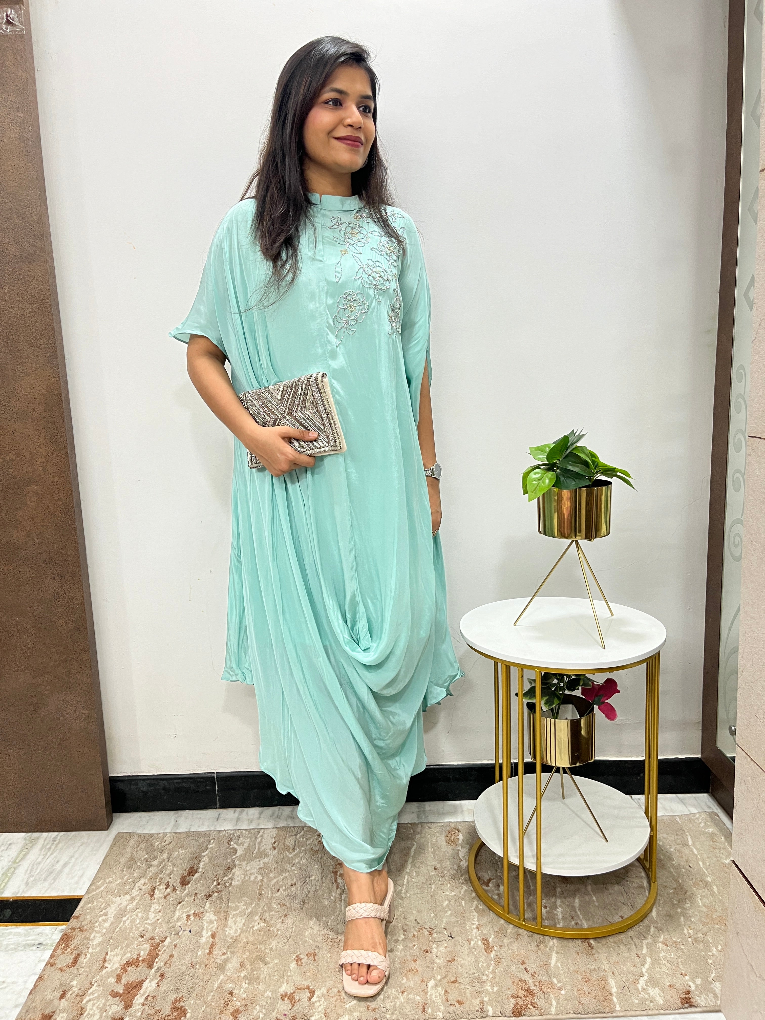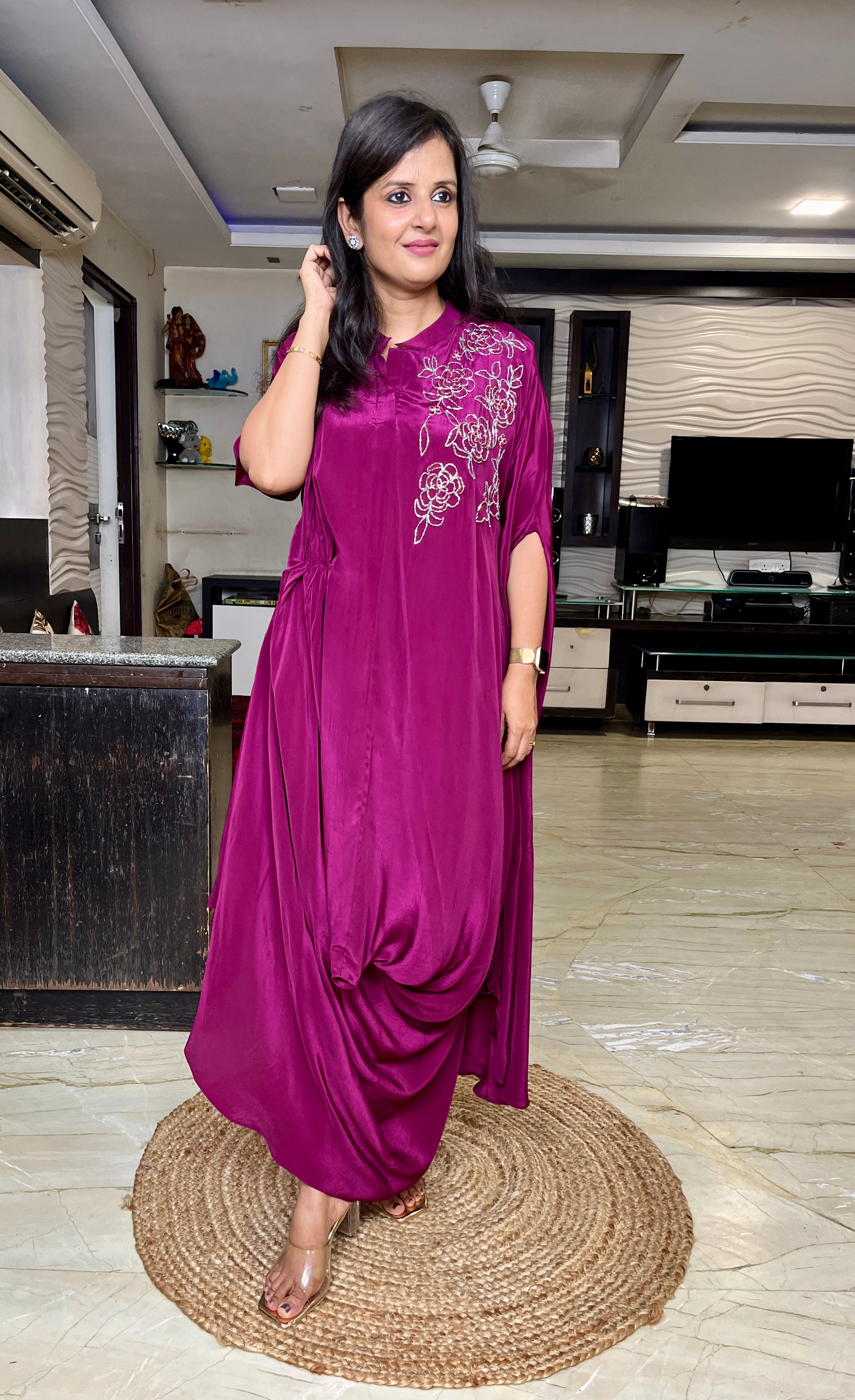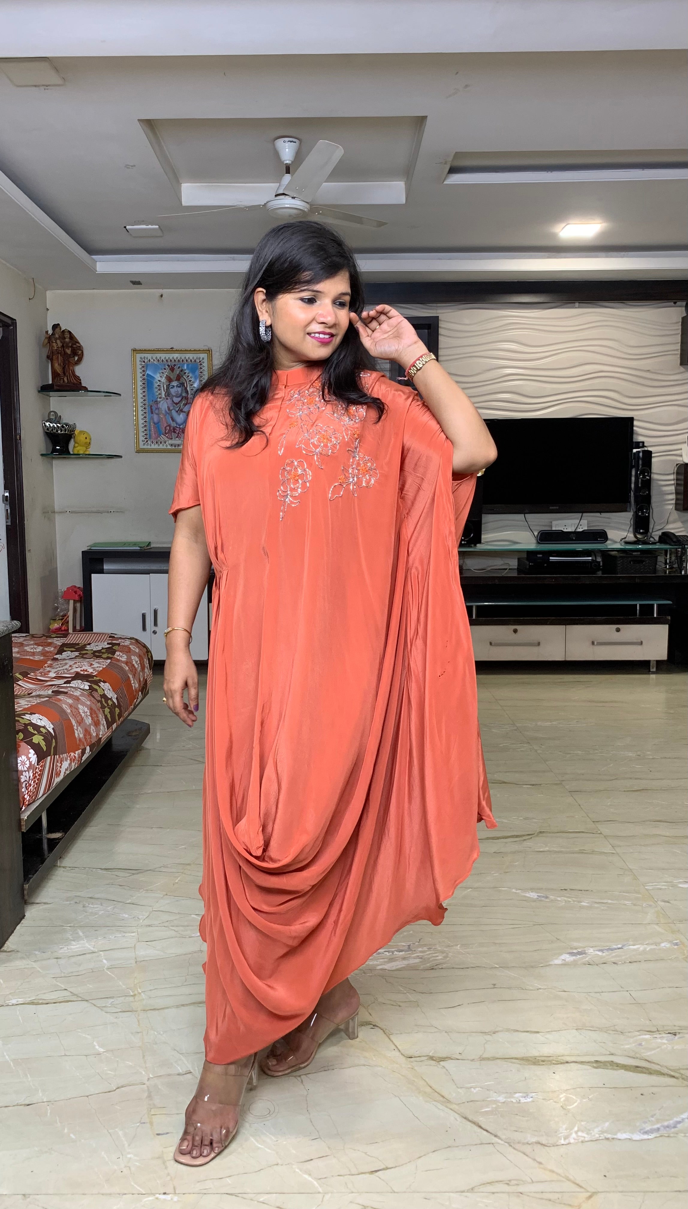 ✅Pure chinnon Indo western dress.