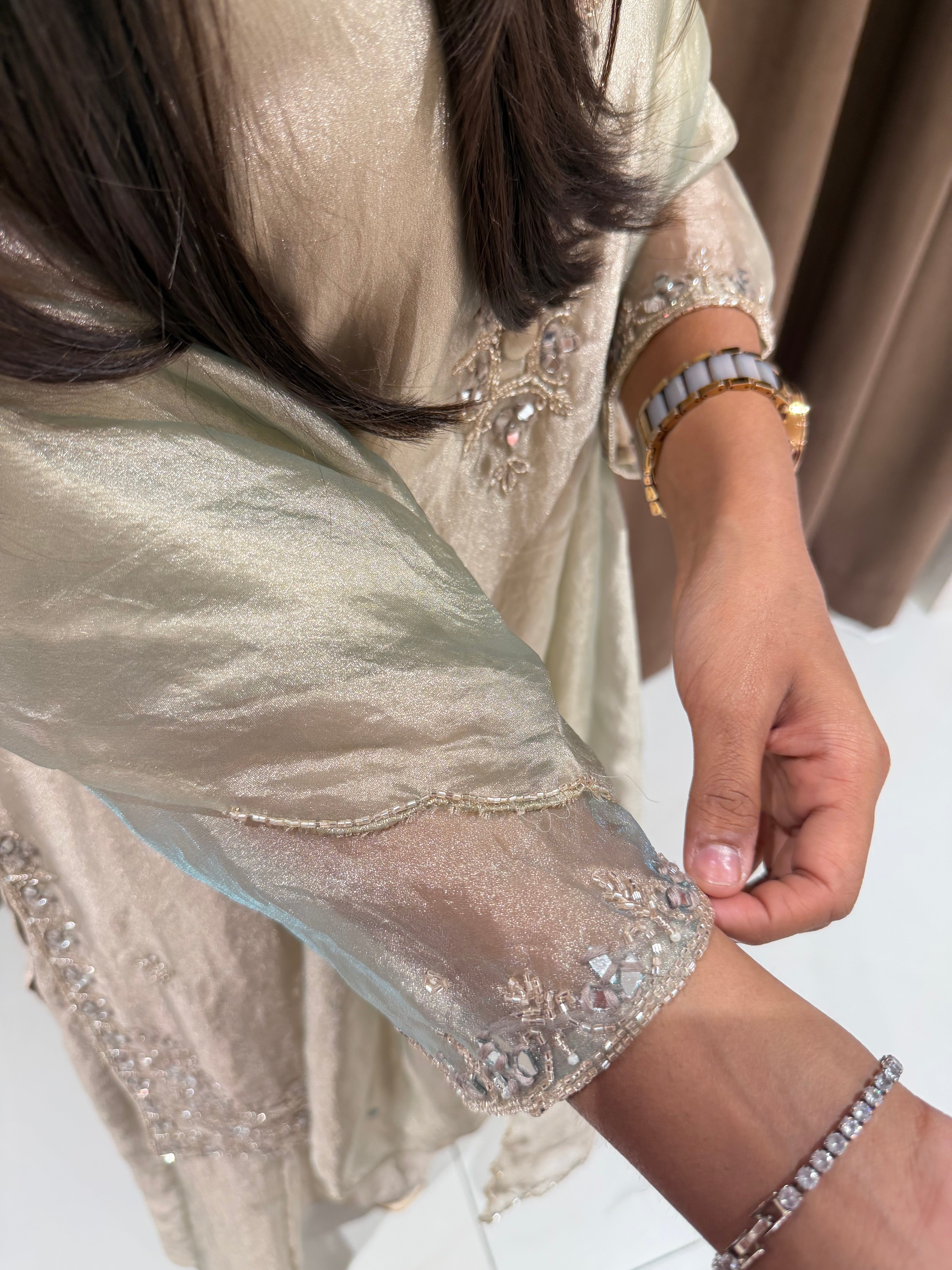✅Premium Tissue Silk Kurta with Sequin And Cutdaana Handwork On The Yoke Of The Kurta .